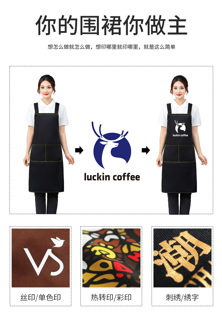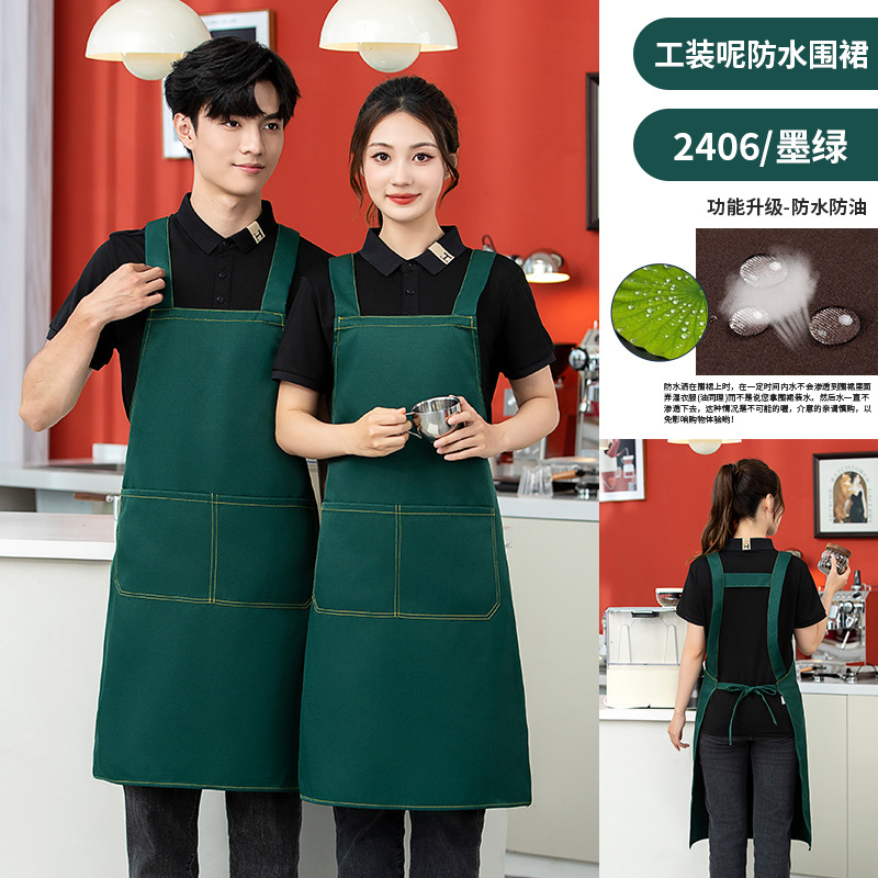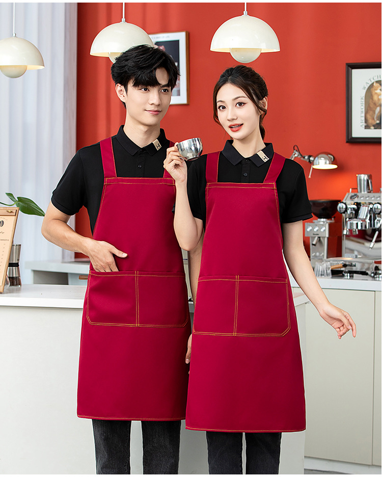 새로운 앞치마 로고 케이터링 신선한 슈퍼마켓 특별 방수 오일 방지 그물 빨간색 작업복 여성스토어 가기
