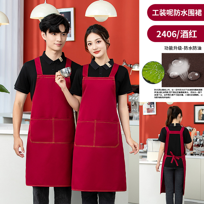 새로운 앞치마 로고 케이터링 신선한 슈퍼마켓 특별 방수 오일 방지 그물 빨간색 작업복 여성