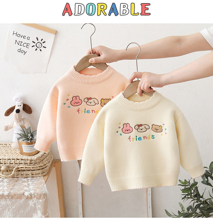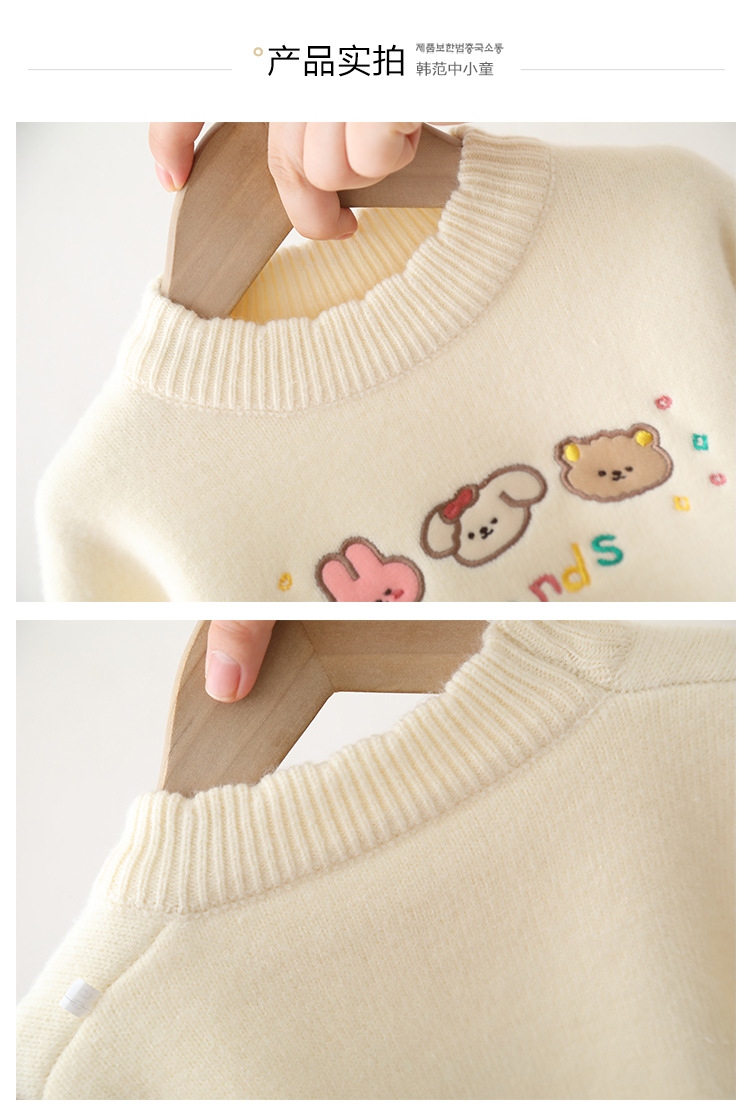2025년 신상 여아용 스웨터 풀오버 일체형 벨벳 유아 가을 겨울 의류 아동 니트 이너웨어 플러스 벨벳