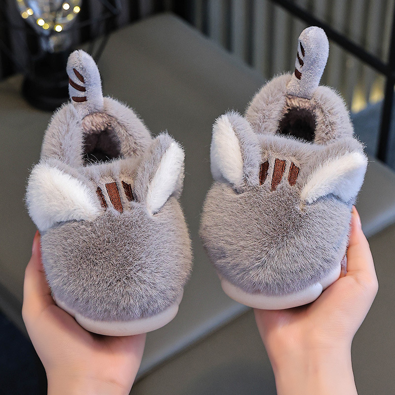 어린 이용 코튼 신발 두꺼운 양털이있는 새 만화 귀여운 울 슬리퍼 어린이 방 두꺼운 바닥 미끄럼 방지 울 슬리퍼스토어 가기