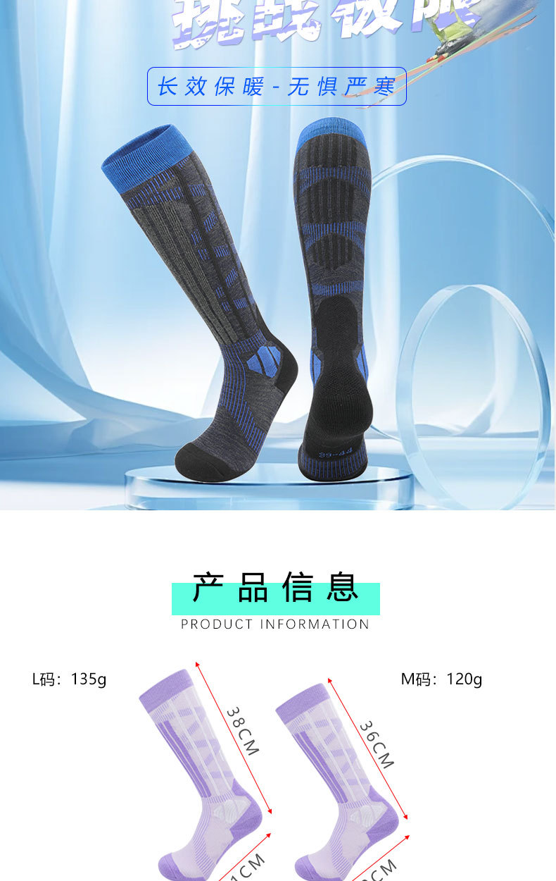 따뜻하고 두꺼운 스노우 양말, 방한 및 편안한 스키 양말, 두꺼운 타월 바닥, 충격 흡수, 긴 튜브형, 야외 미끄럼 방지 등산 양말