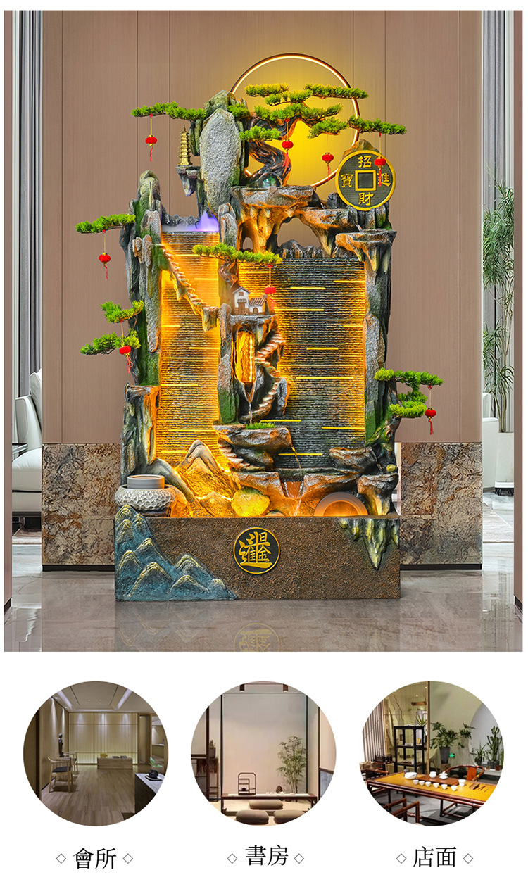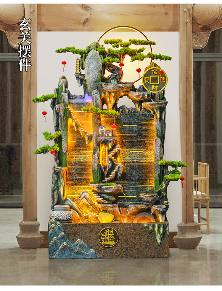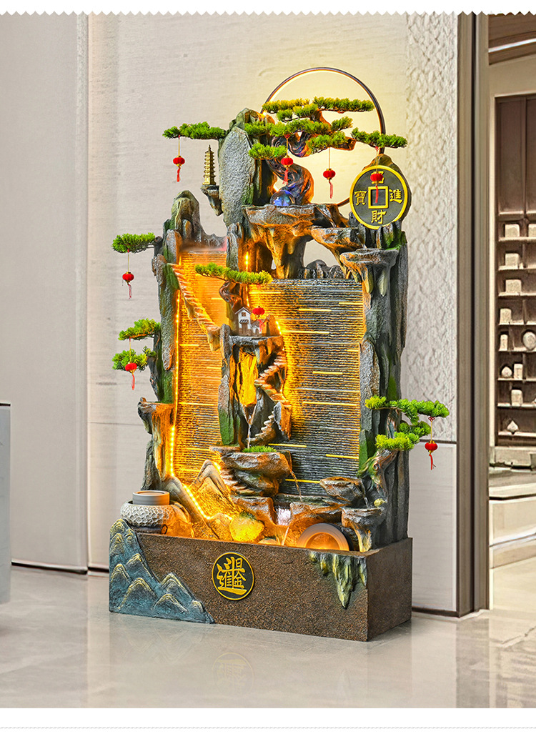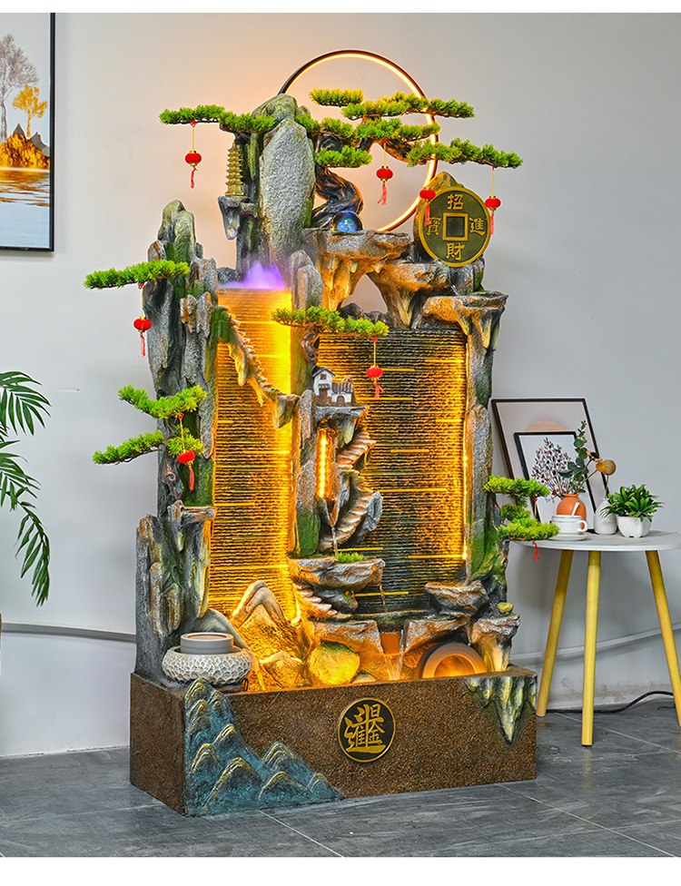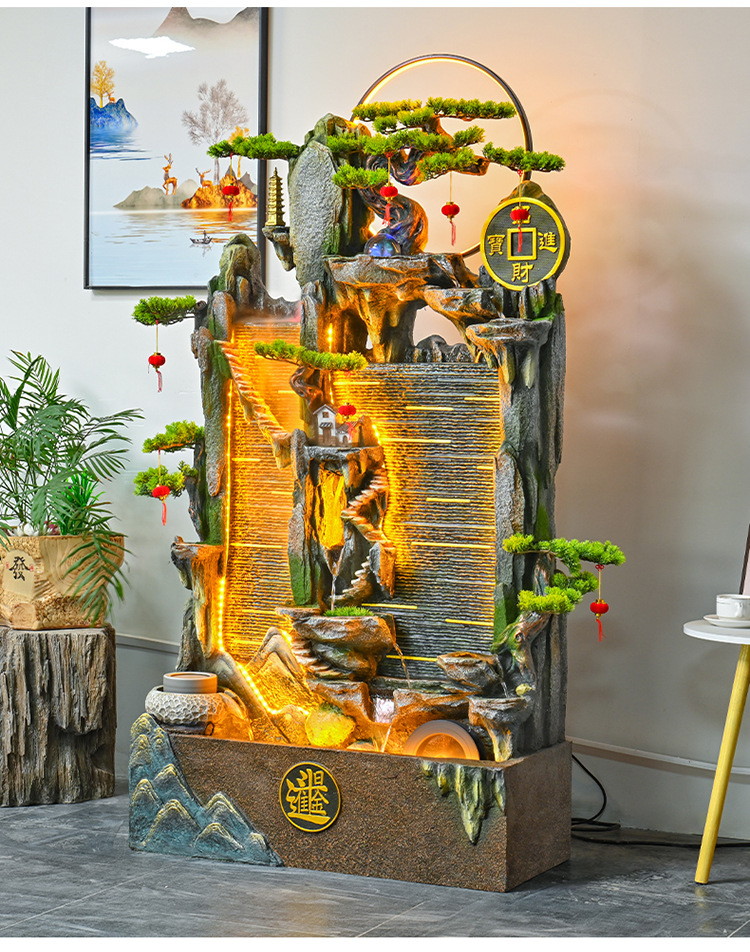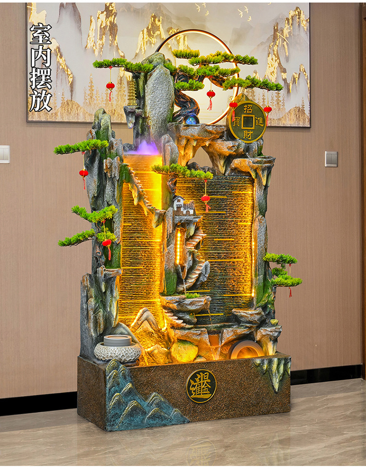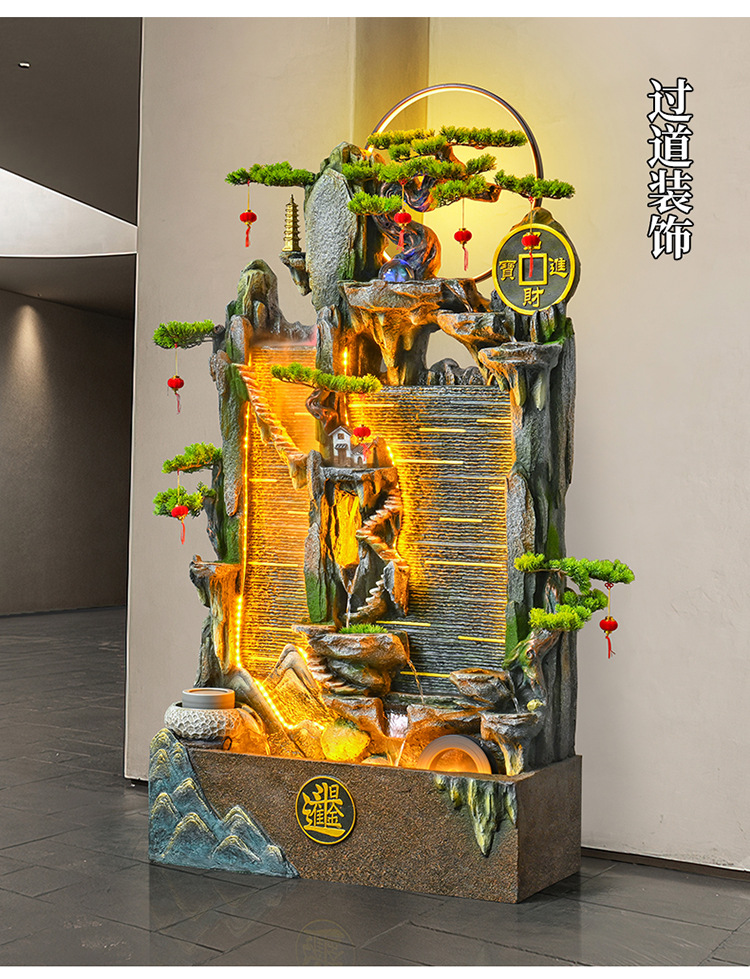가짜 바위 벽 커튼 물 분수 바닥 행운의 장식품 사무실 거실 사무실 풍수 휠 물고기 연못 풍경스토어 가기
