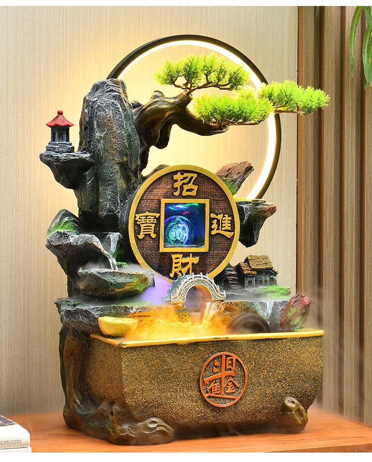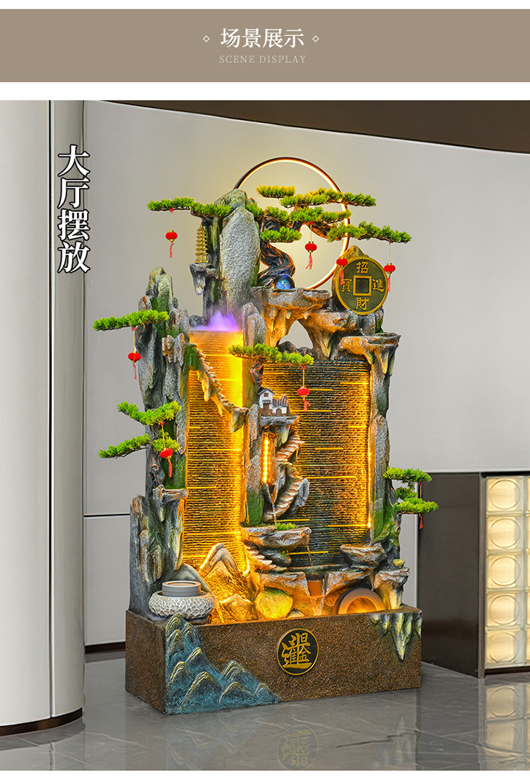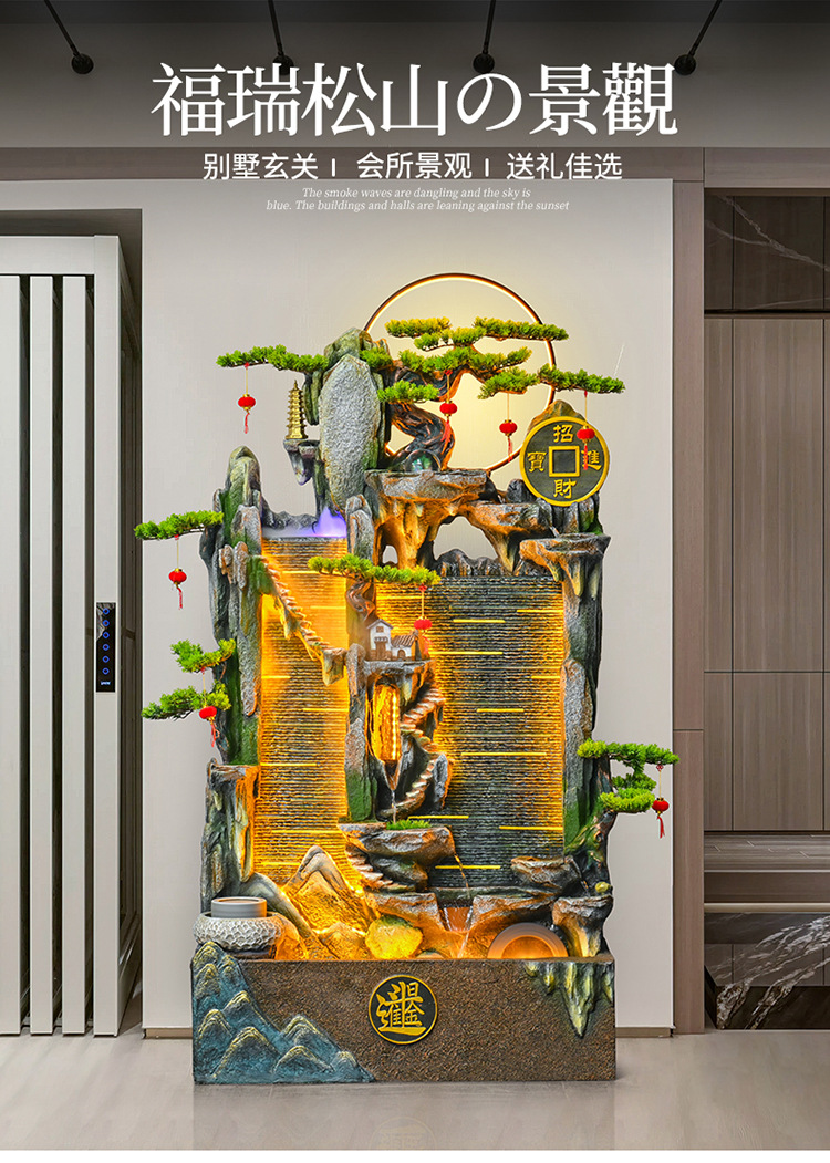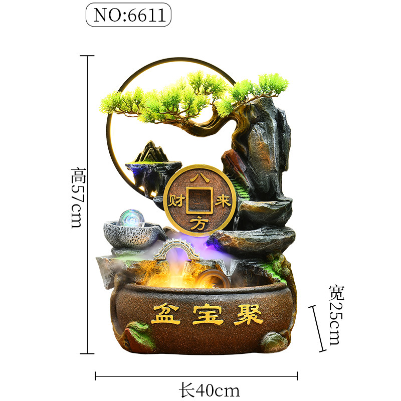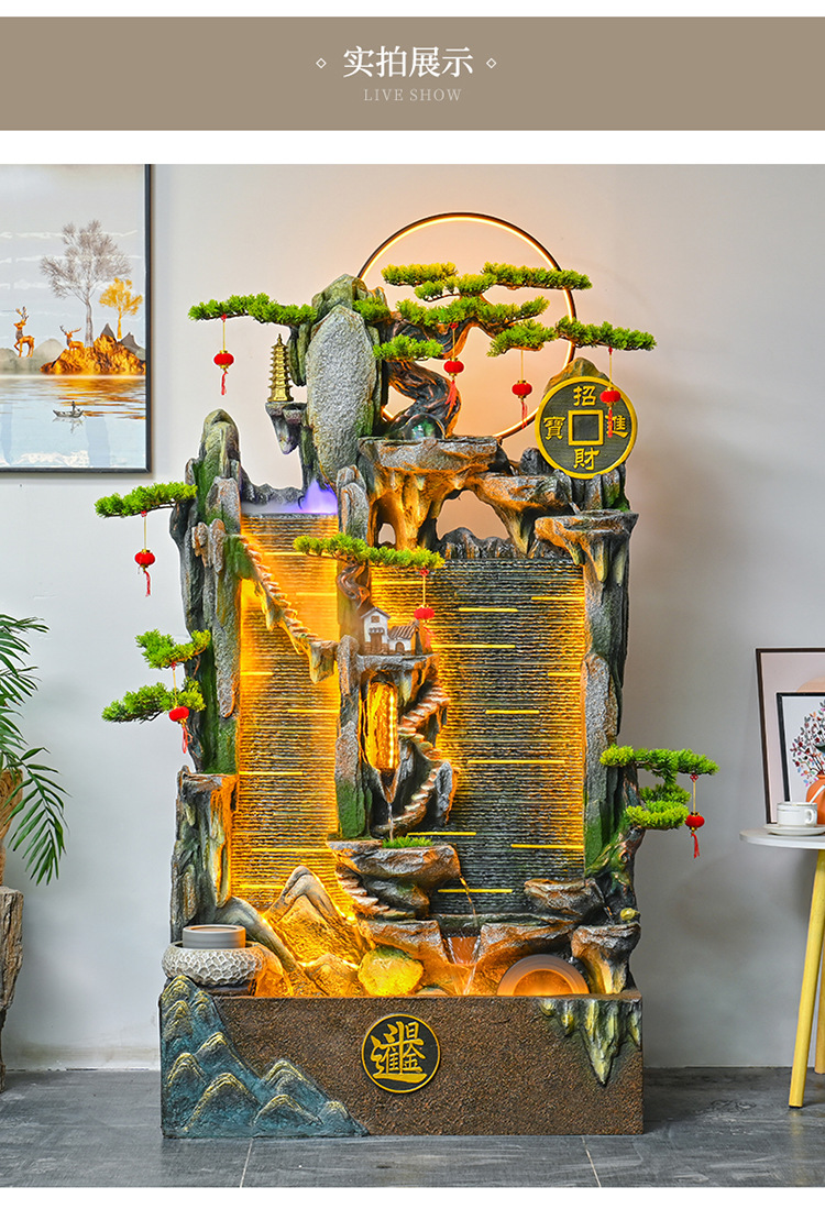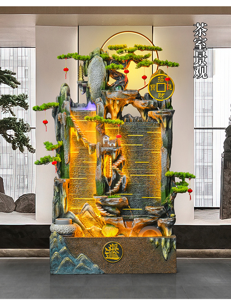 가짜 바위 벽 커튼 물 분수 바닥 행운의 장식품 사무실 거실 사무실 풍수 휠 물고기 연못 풍경스토어 가기