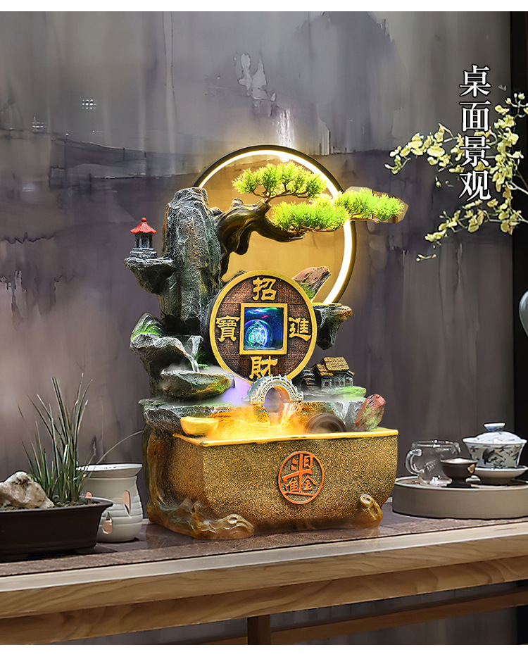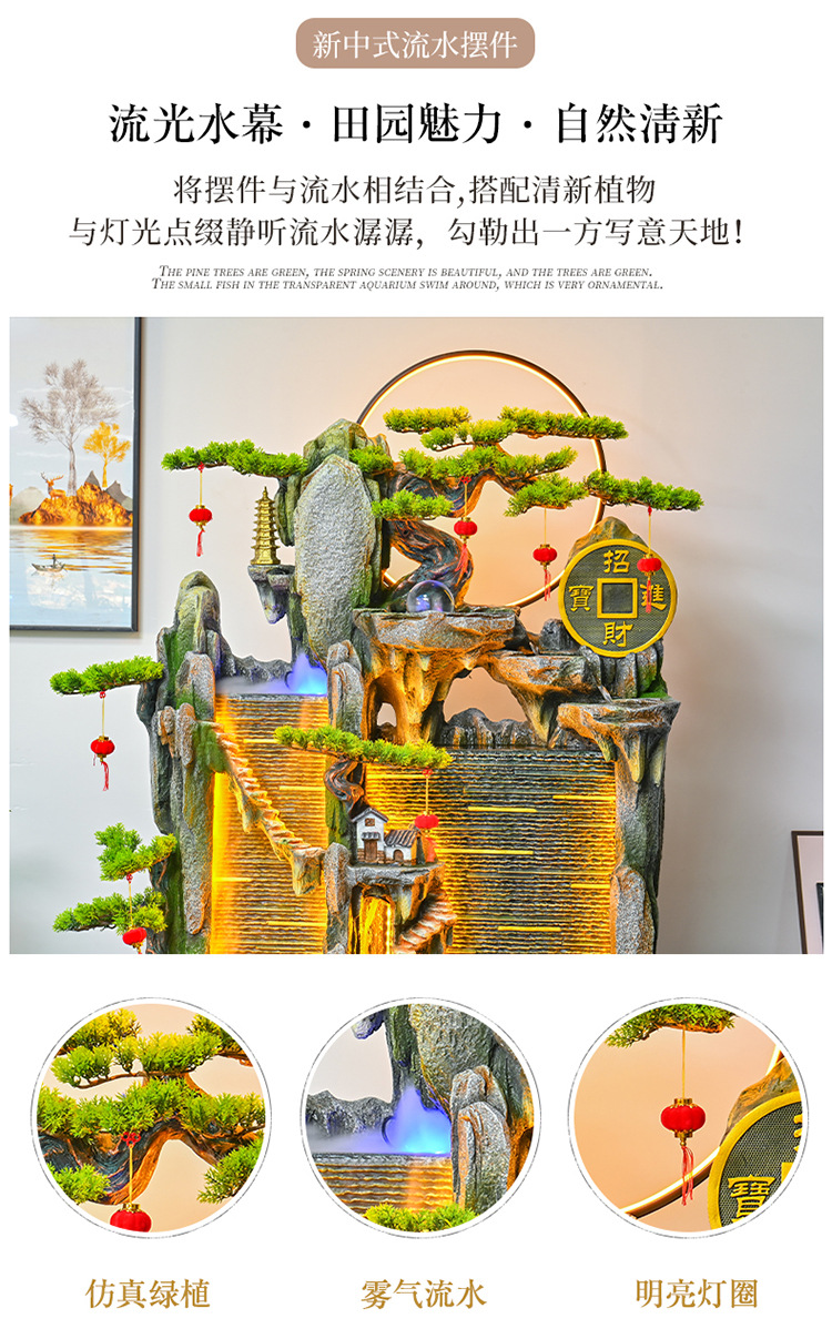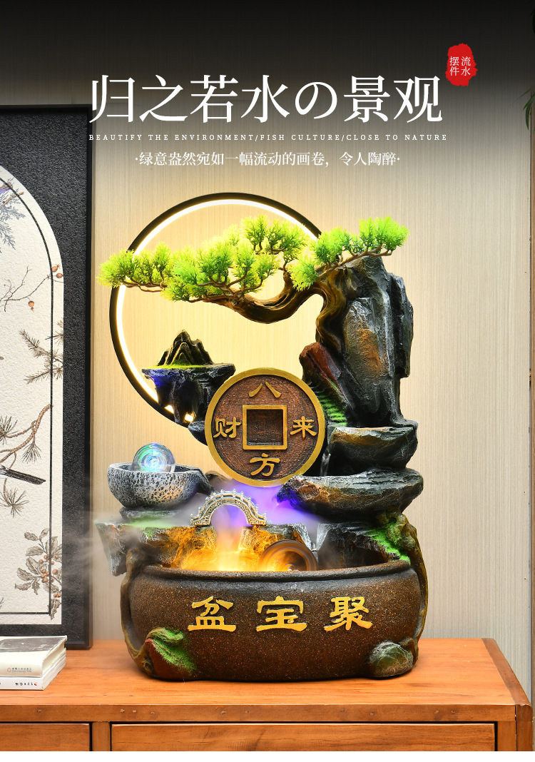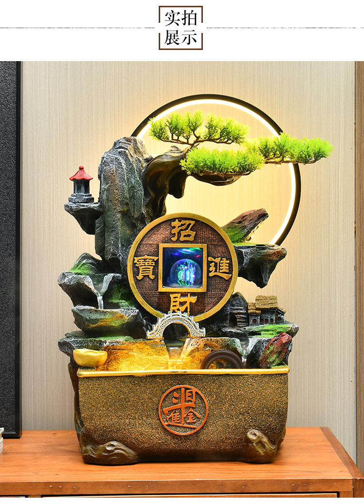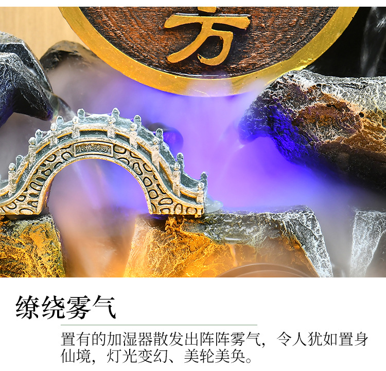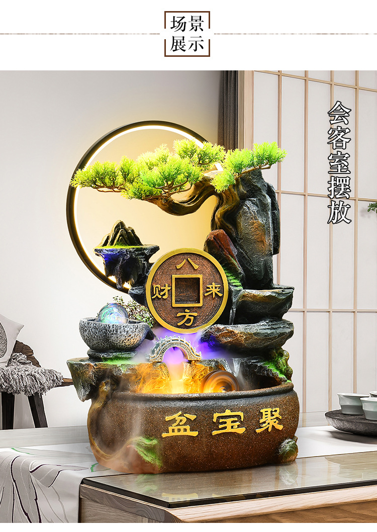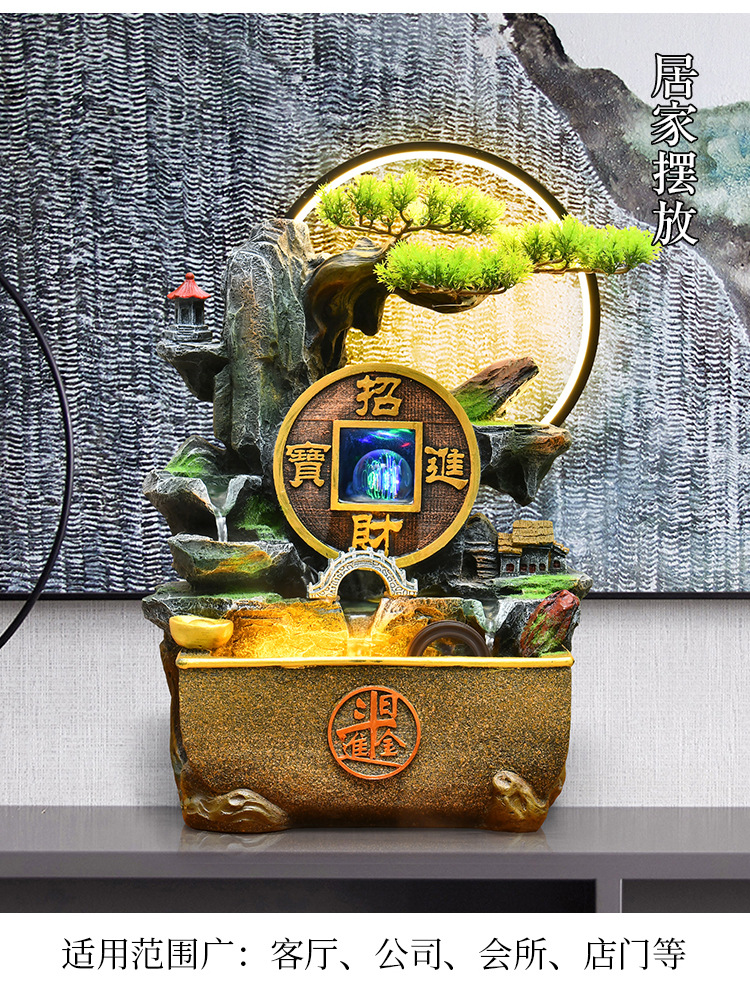 가짜 바위 벽 커튼 물 분수 바닥 행운의 장식품 사무실 거실 사무실 풍수 휠 물고기 연못 풍경스토어 가기