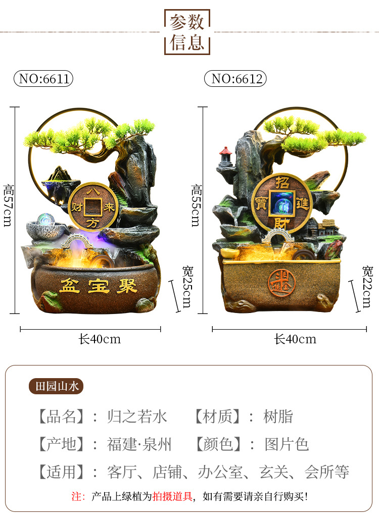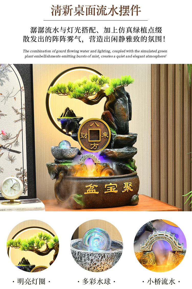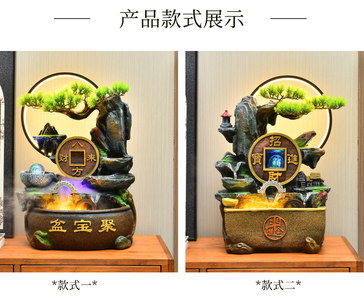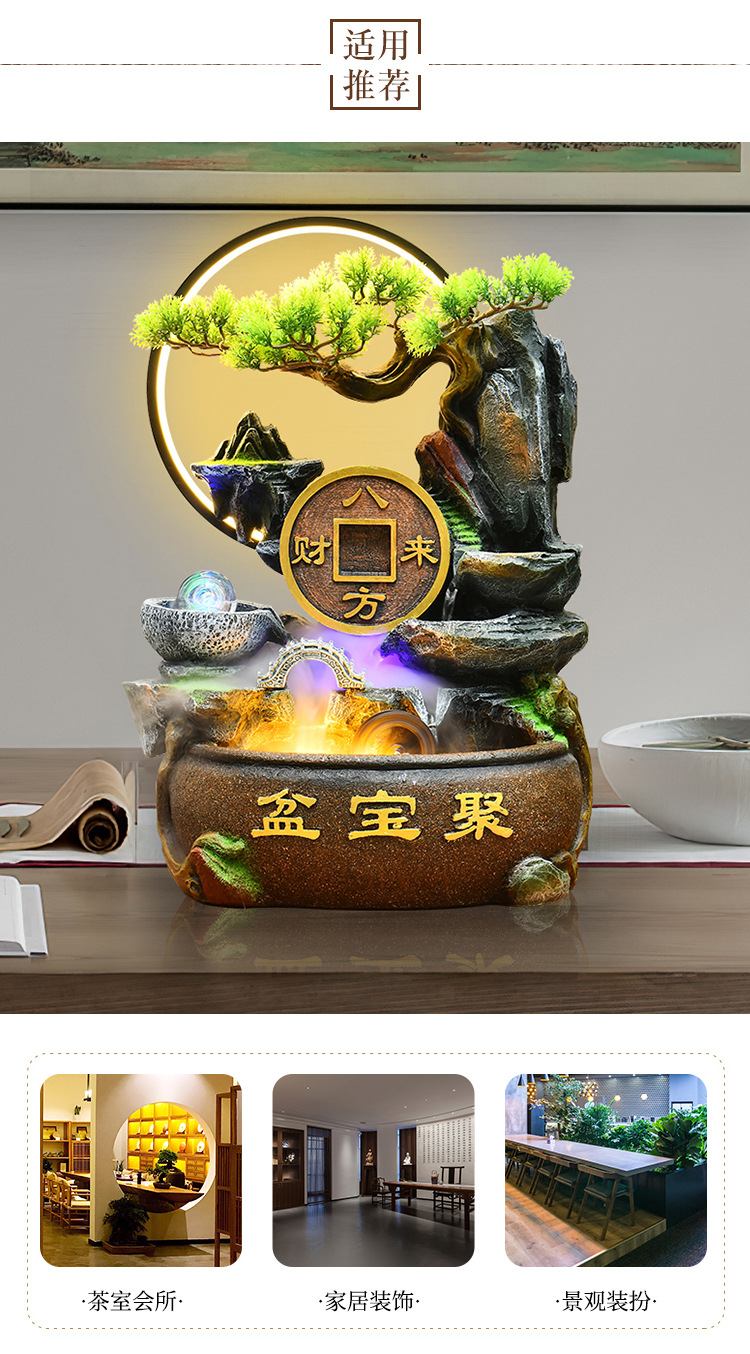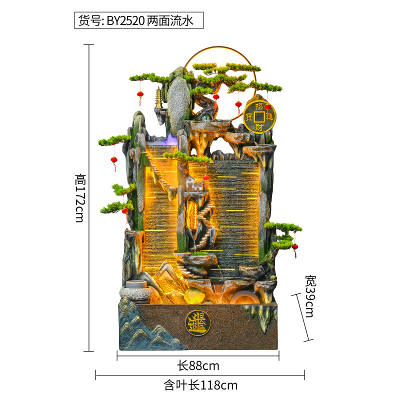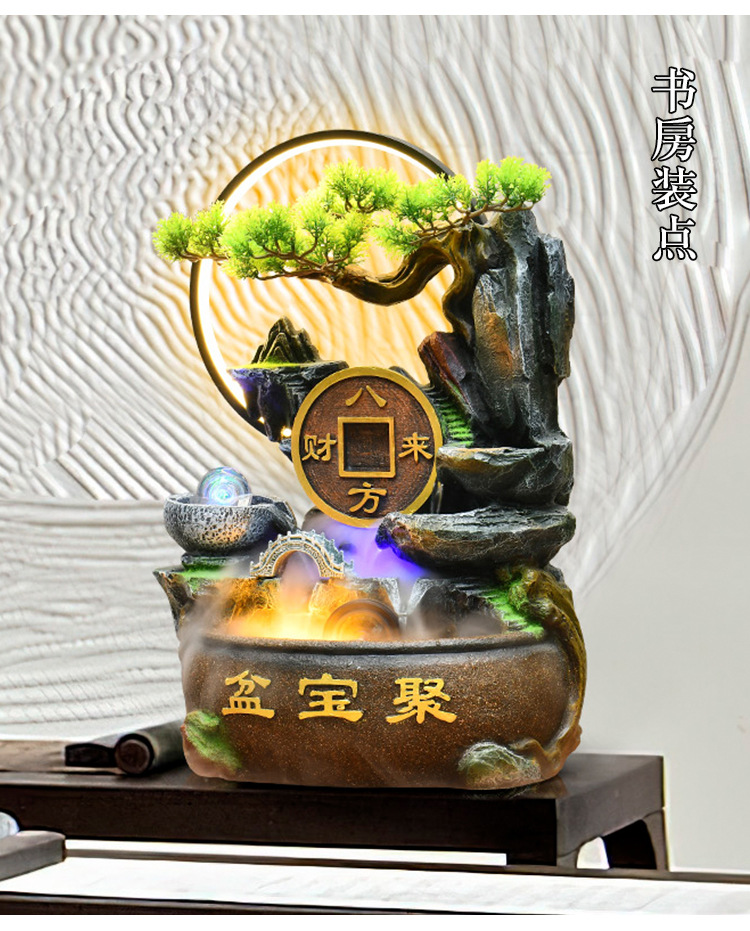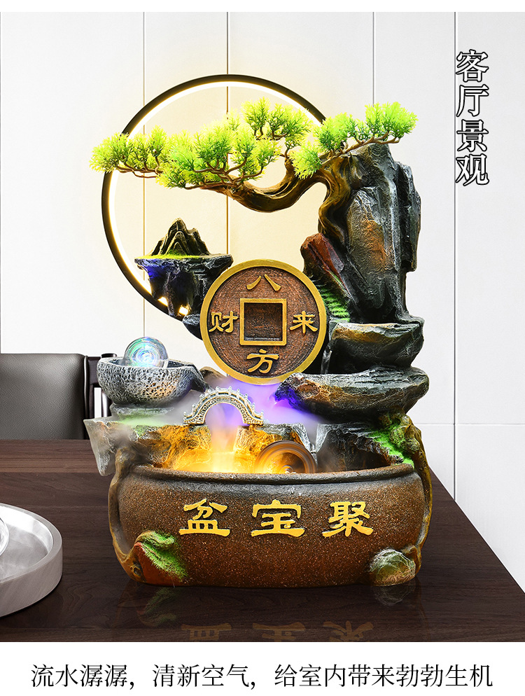 가짜 바위 벽 커튼 물 분수 바닥 행운의 장식품 사무실 거실 사무실 풍수 휠 물고기 연못 풍경스토어 가기