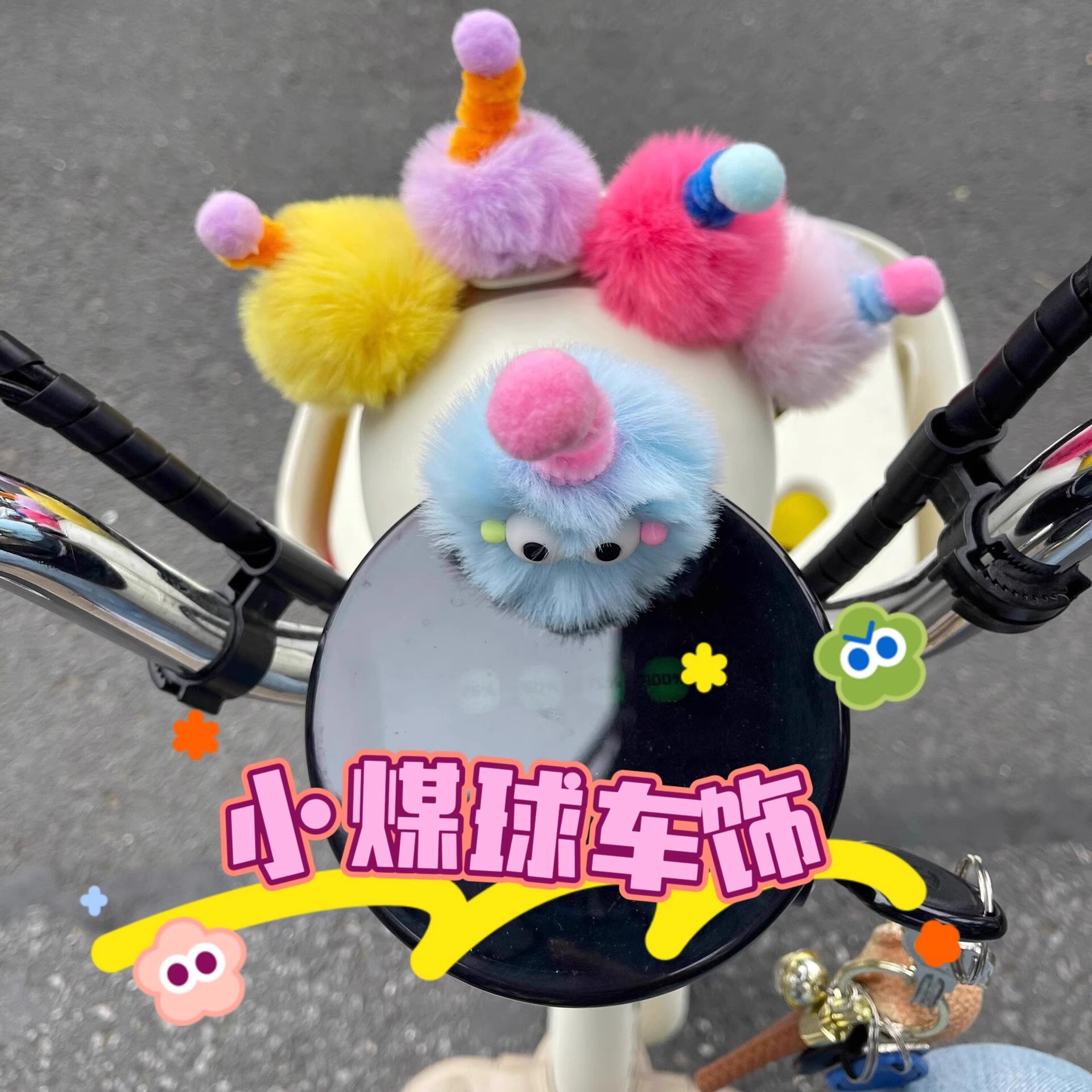 전기 자동차 장식 작은 연탄 헬멧 액세서리 수정 귀여운 모피 공 오토바이 장식 스티커 높은 색상 가치스토어 가기