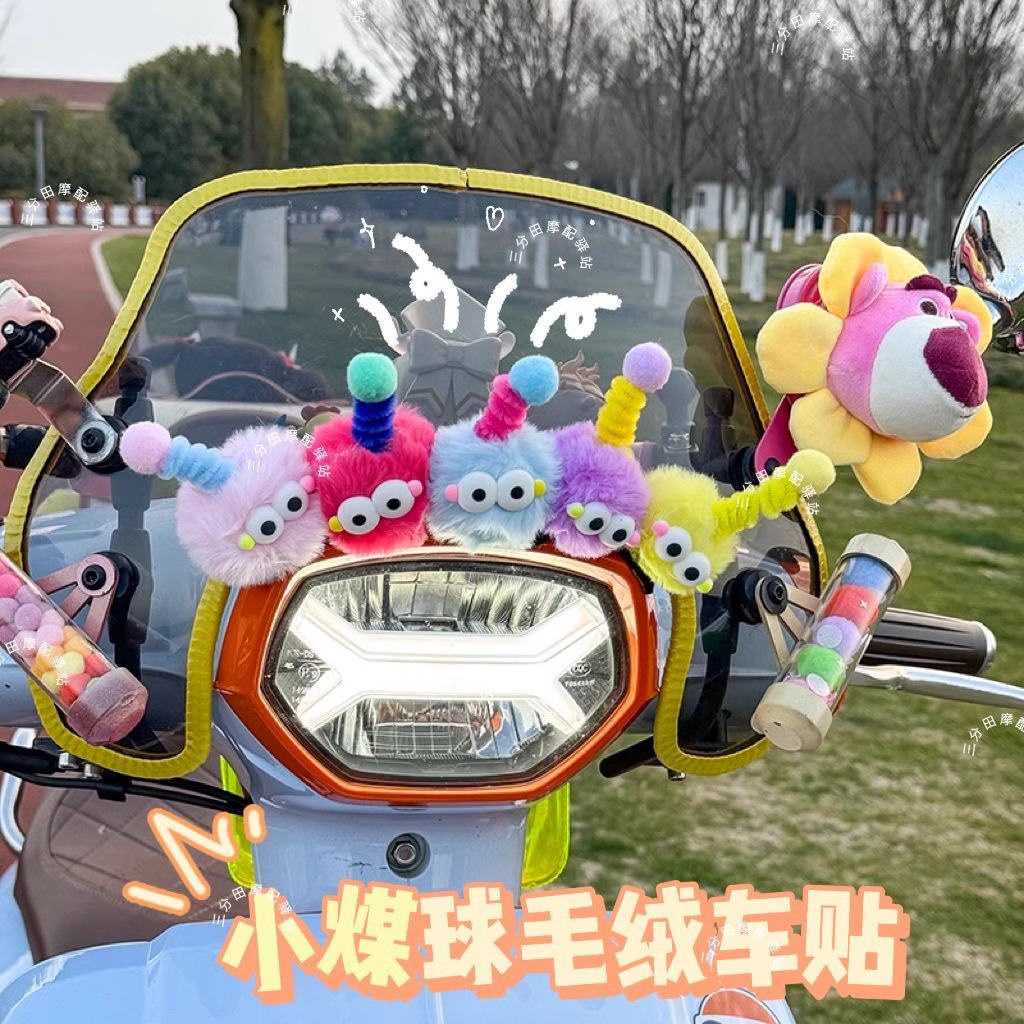 전기 자동차 장식 작은 연탄 헬멧 액세서리 수정 귀여운 모피 공 오토바이 장식 스티커 높은 색상 가치