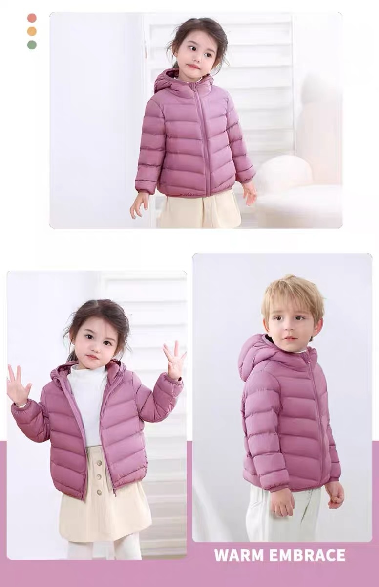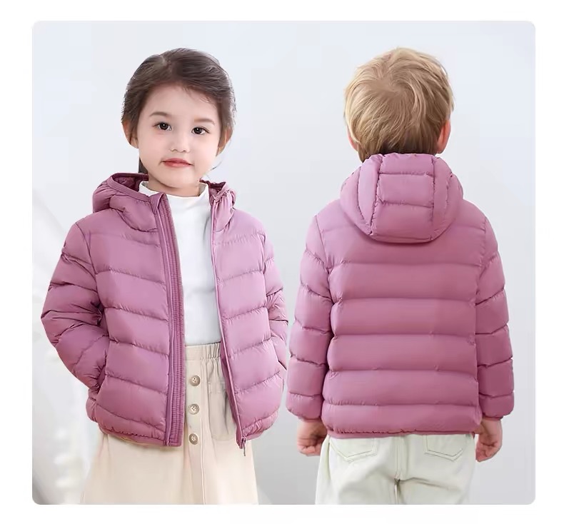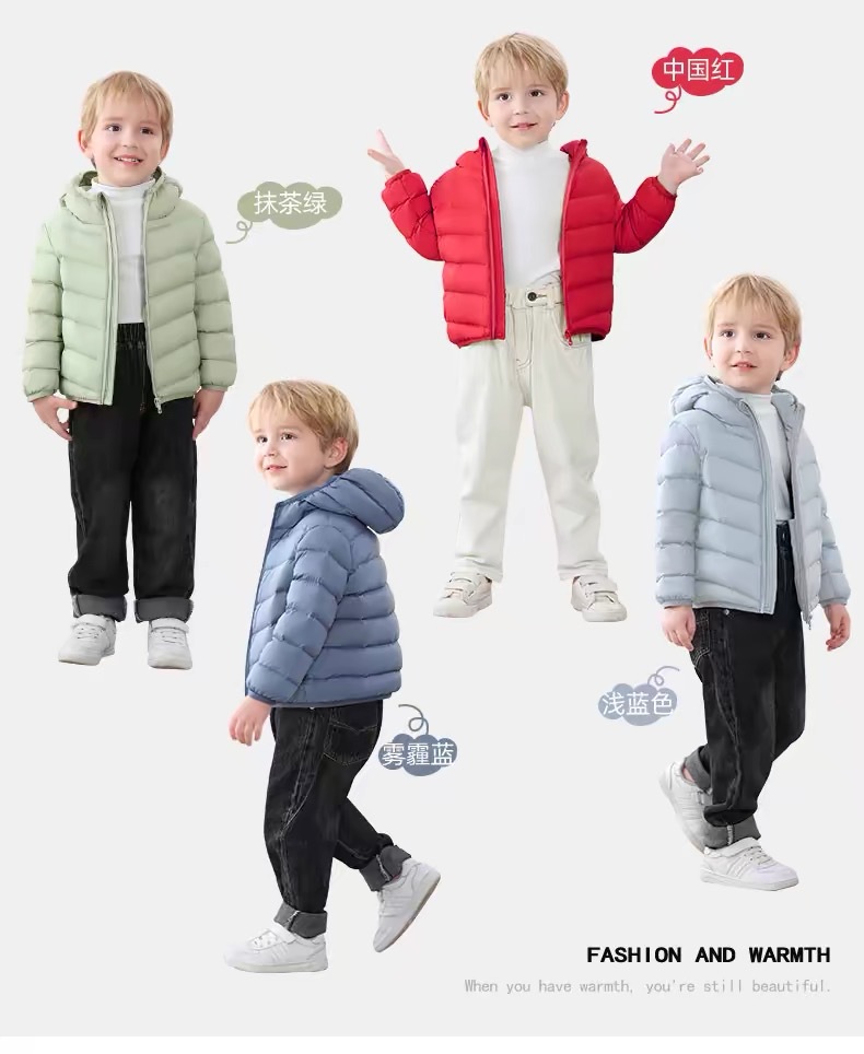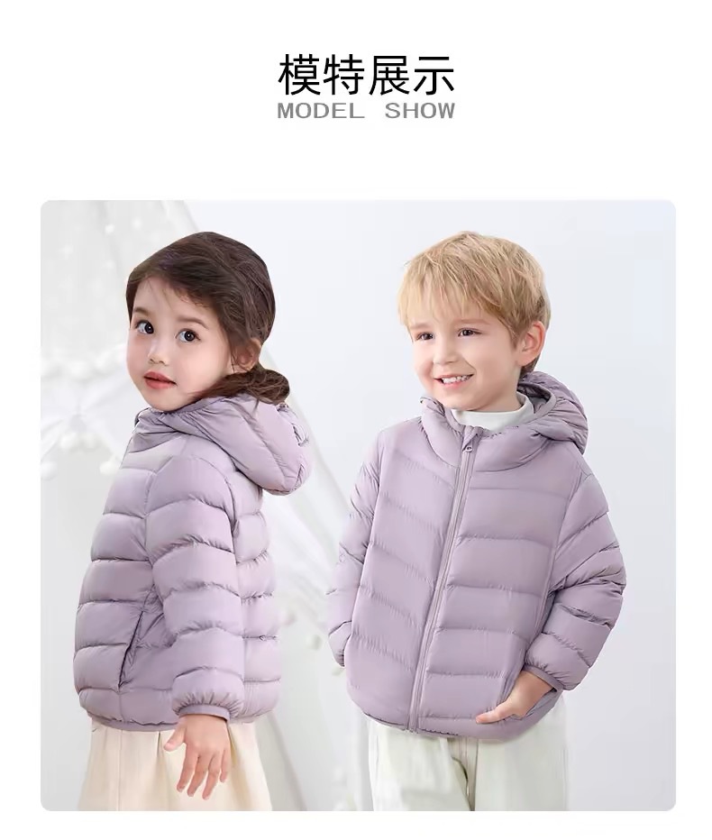 2025 신상 아동복 남아 여아 다운 재킷 후드 짧은 스타일 아동 다운 재킷 가볍고 얇은 가을 겨울 코트 트렌디스토어 가기