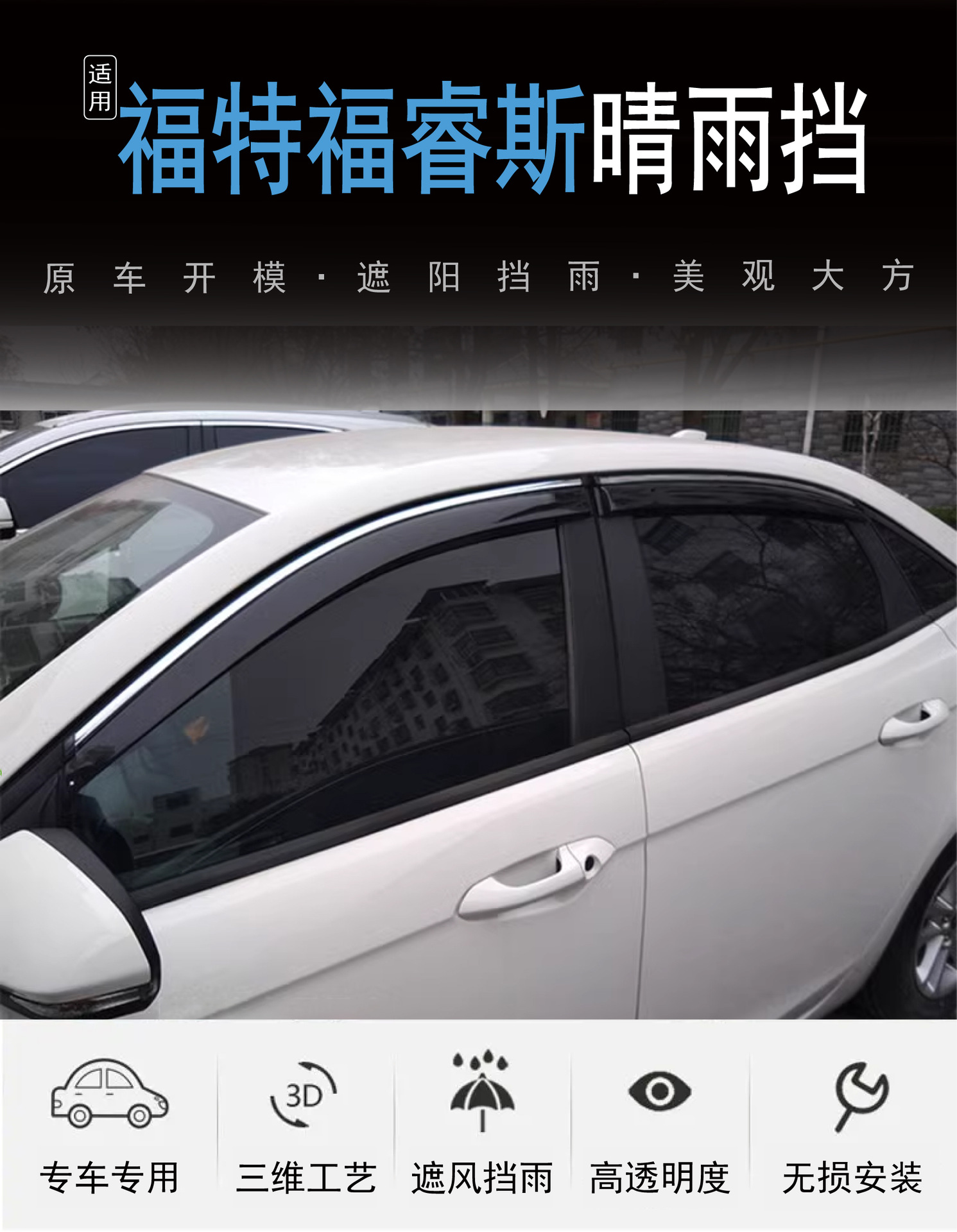 국경 간 적용 가능한 포드 에스코트 창 수정 비 방지 검은 아크릴 자동차 비 방패스토어 가기