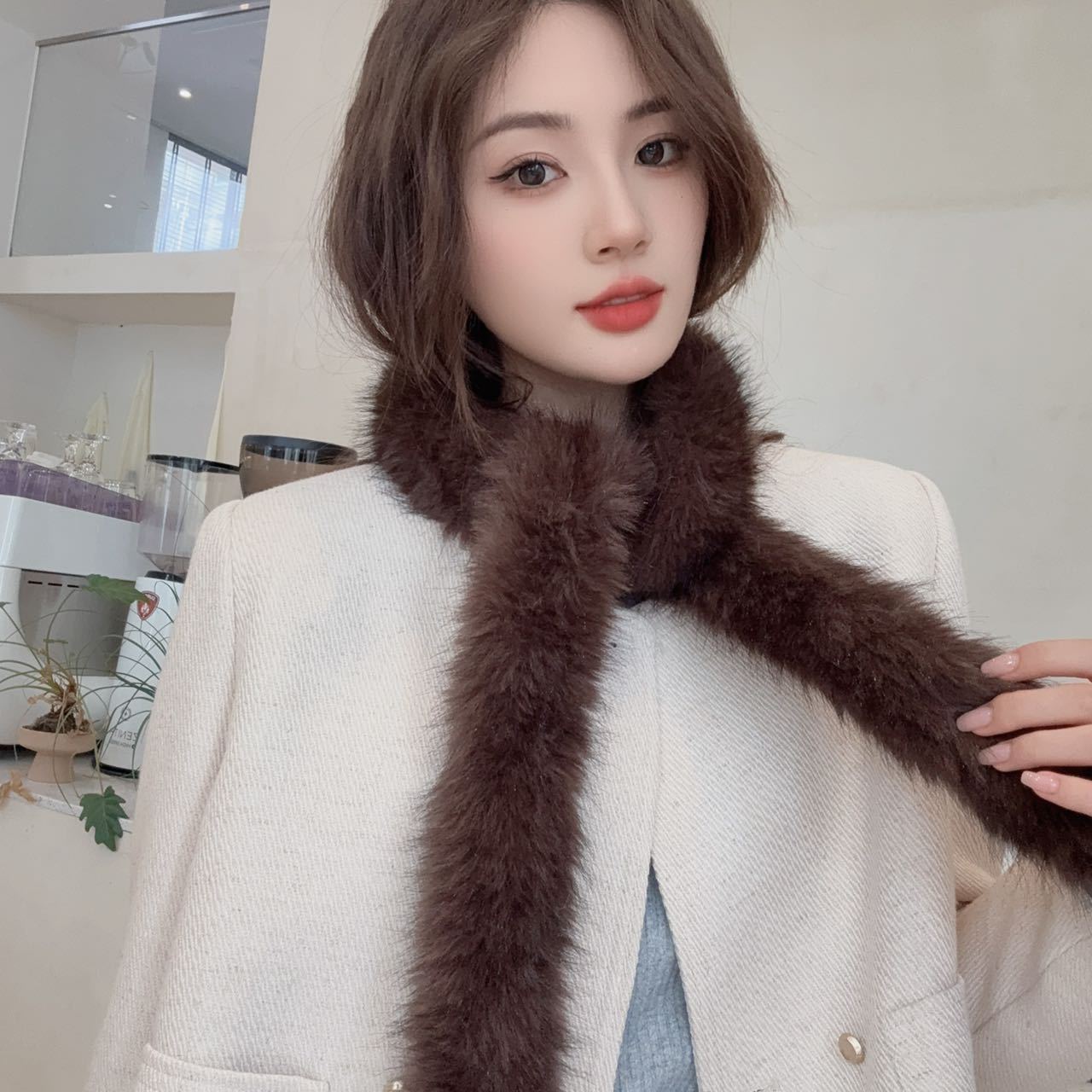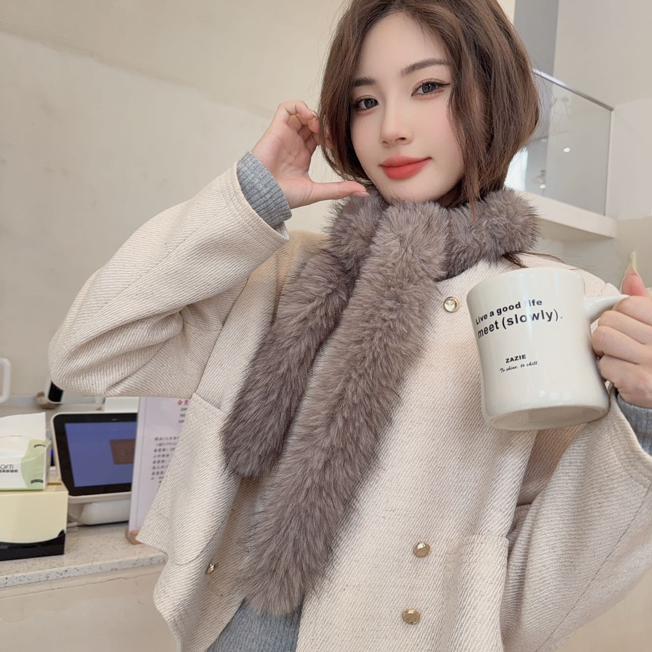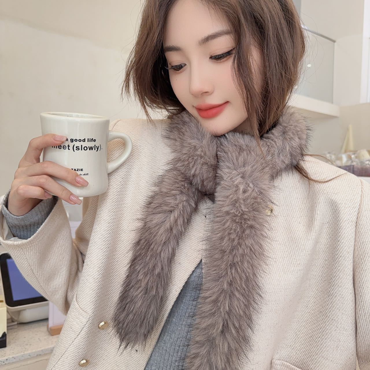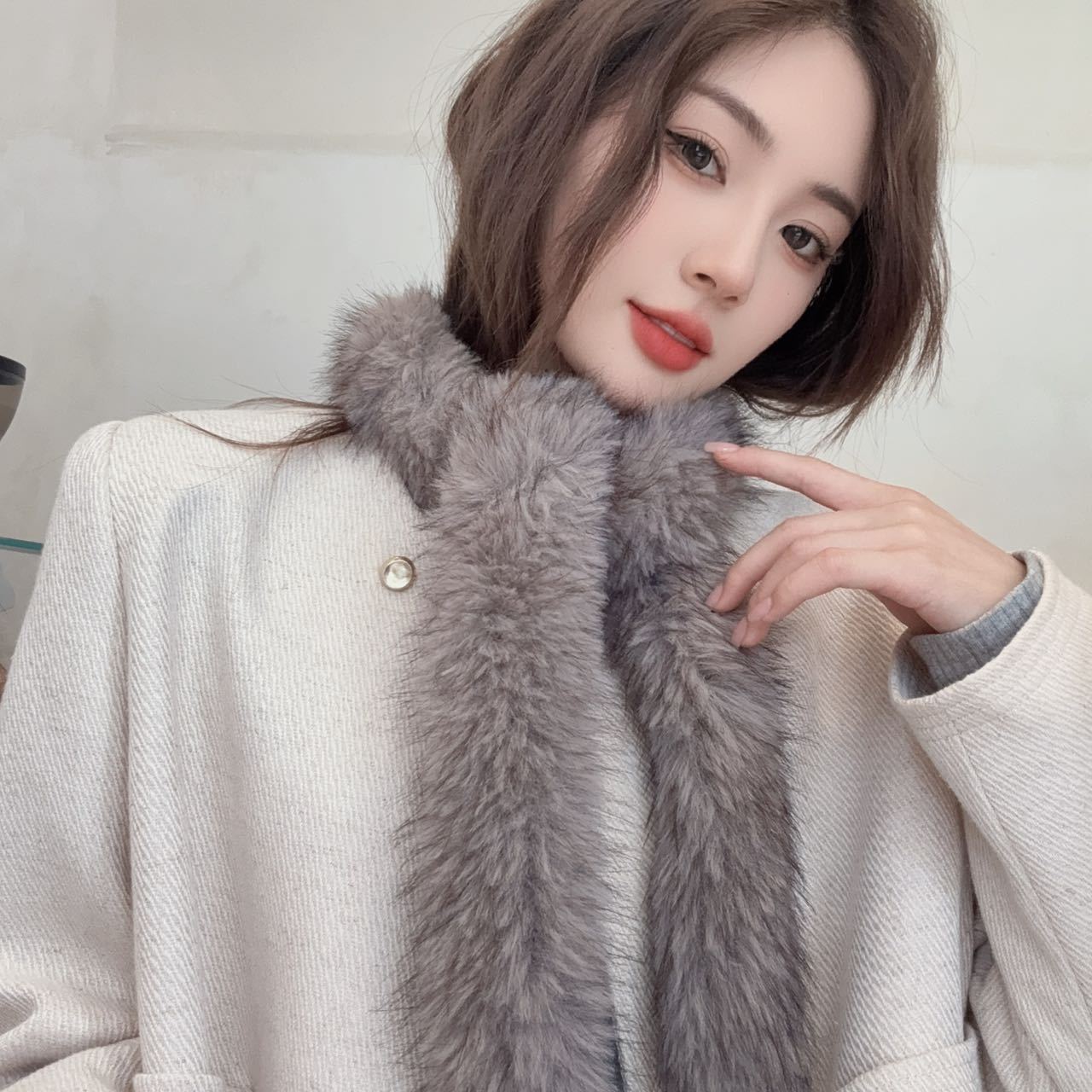 겨울 여성 한국식 렉스 토끼 모피 크로스 스카프 겨울 학생 모피 스카프 2024 새로운 봉제스토어 가기
