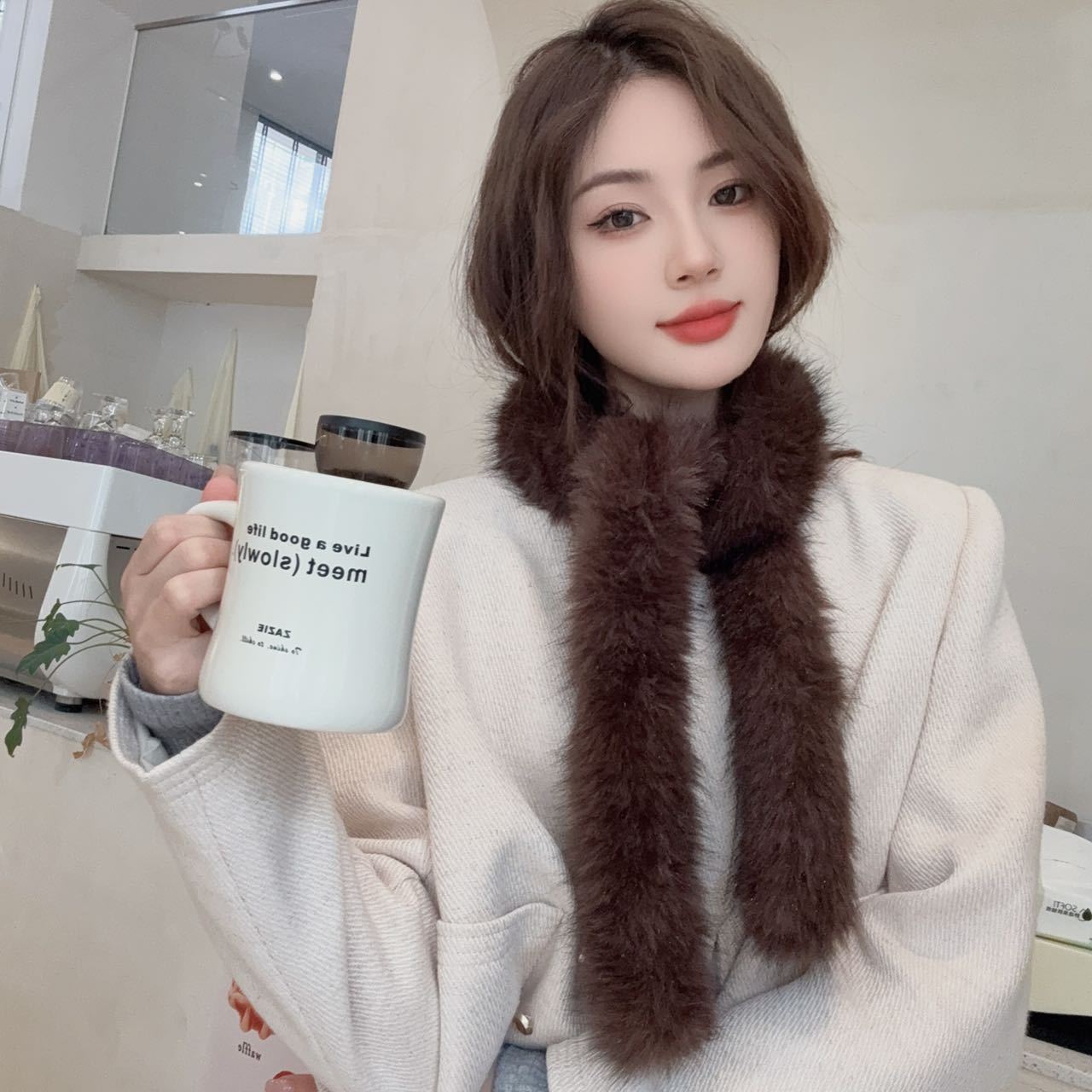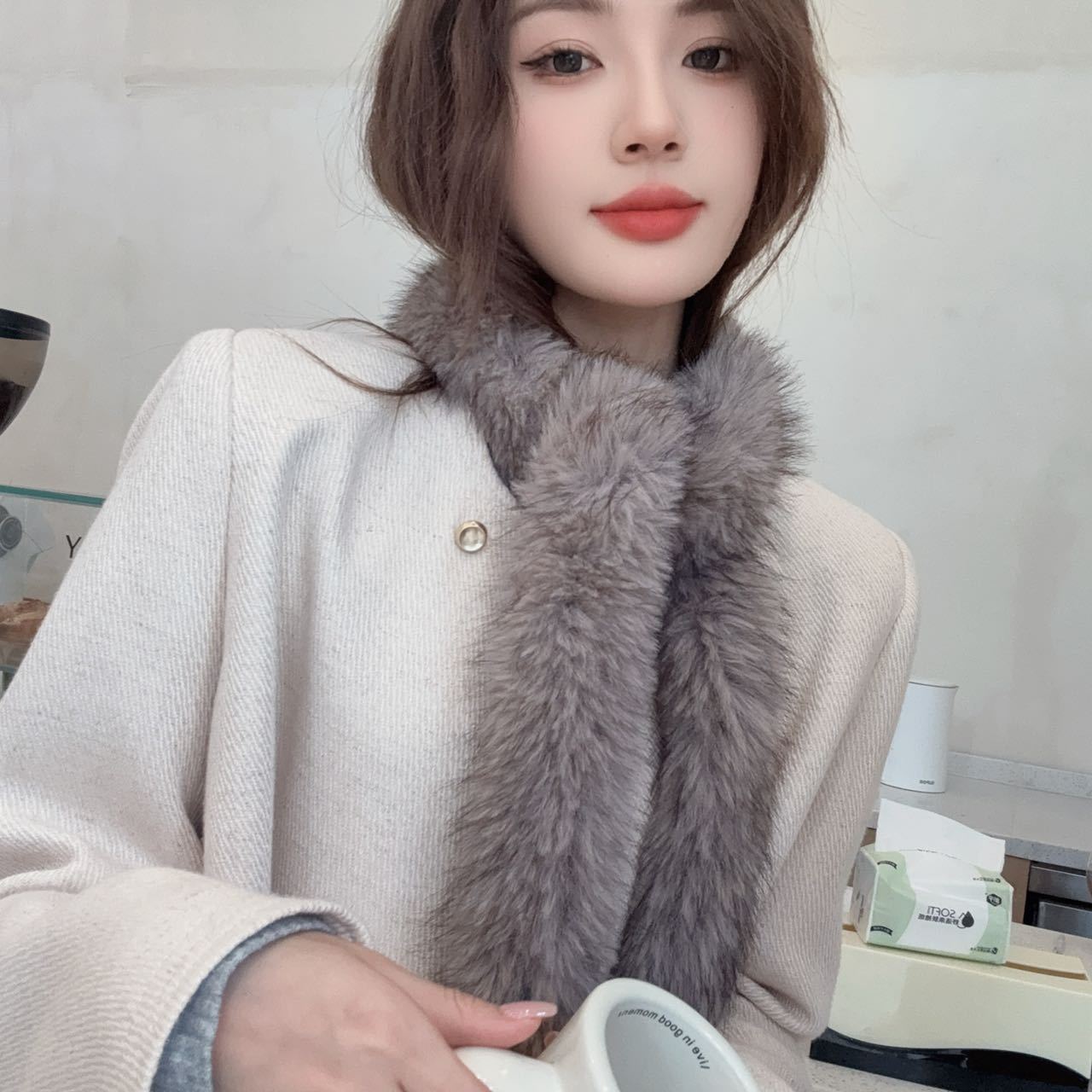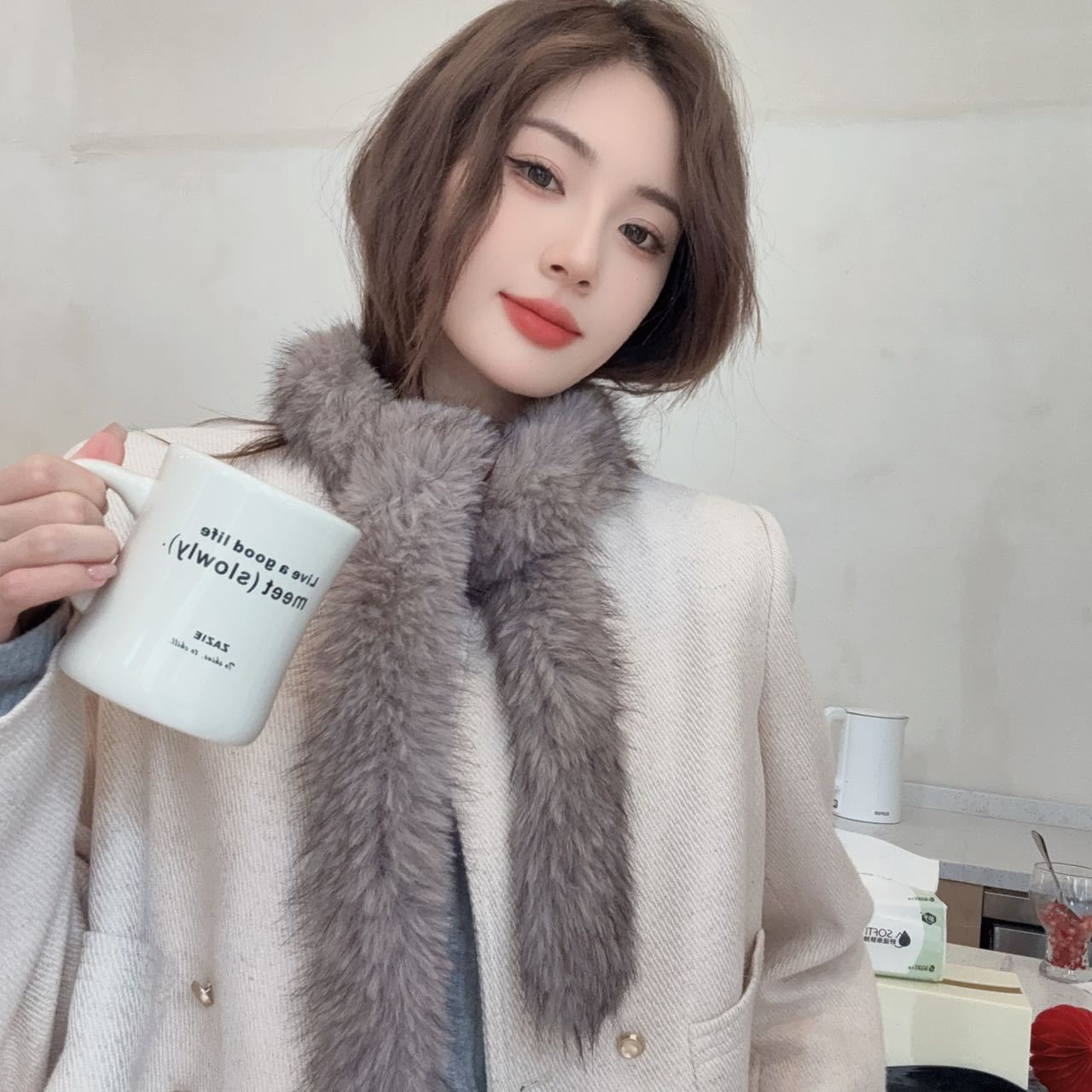 겨울 여성 한국식 렉스 토끼 모피 크로스 스카프 겨울 학생 모피 스카프 2024 새로운 봉제스토어 가기
