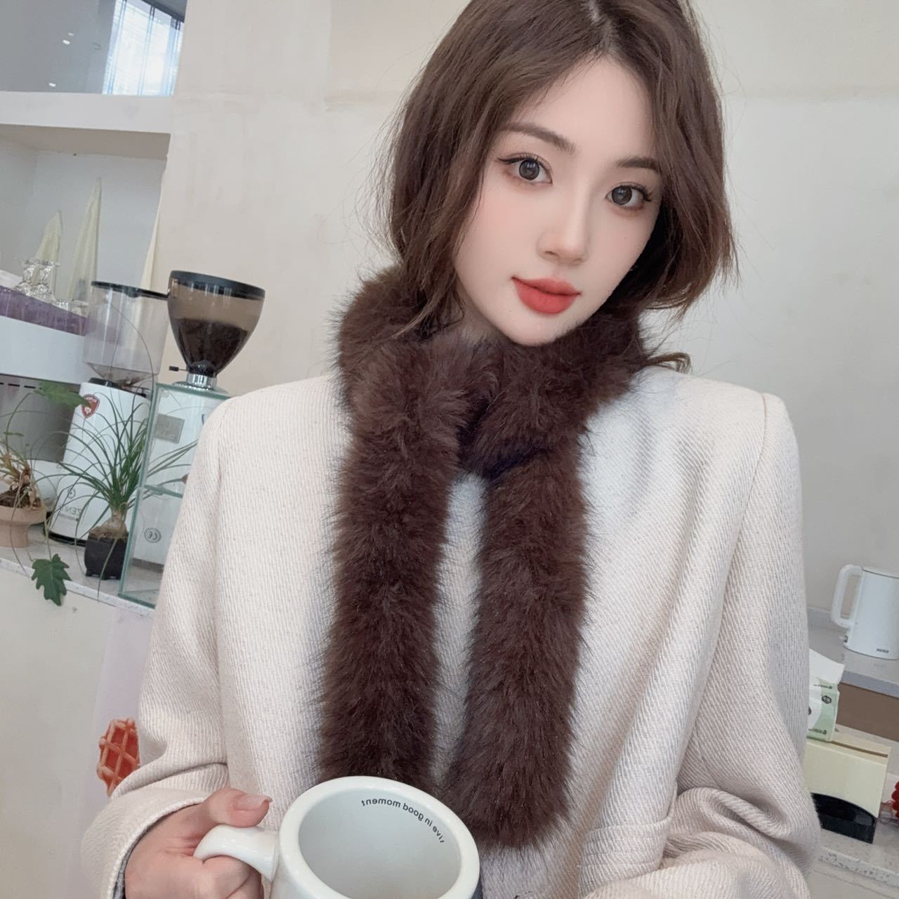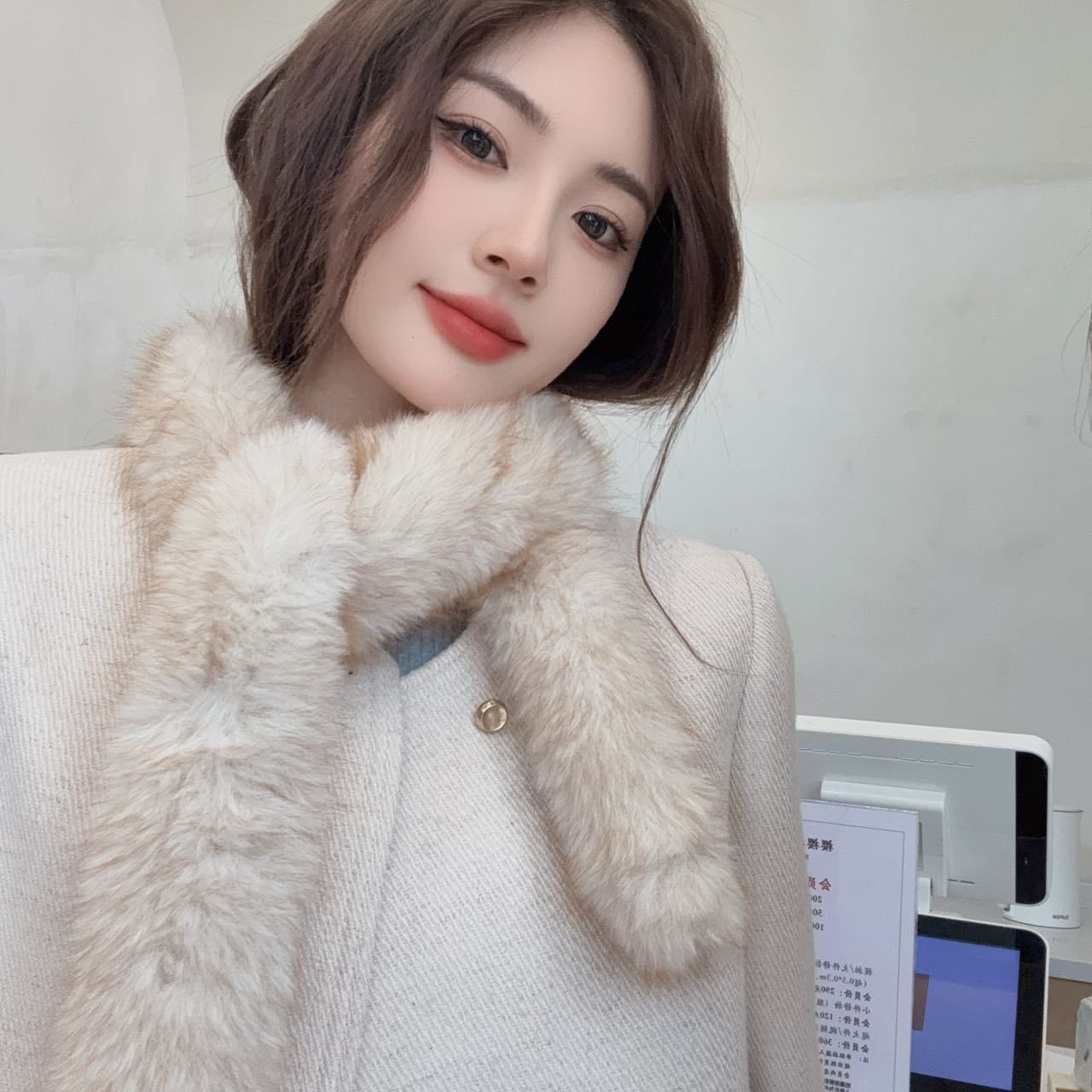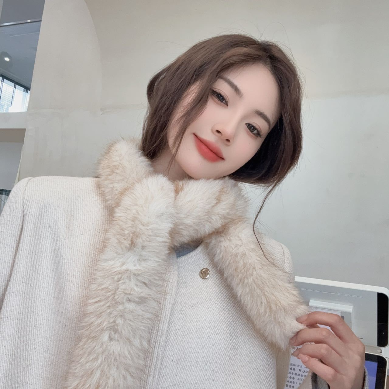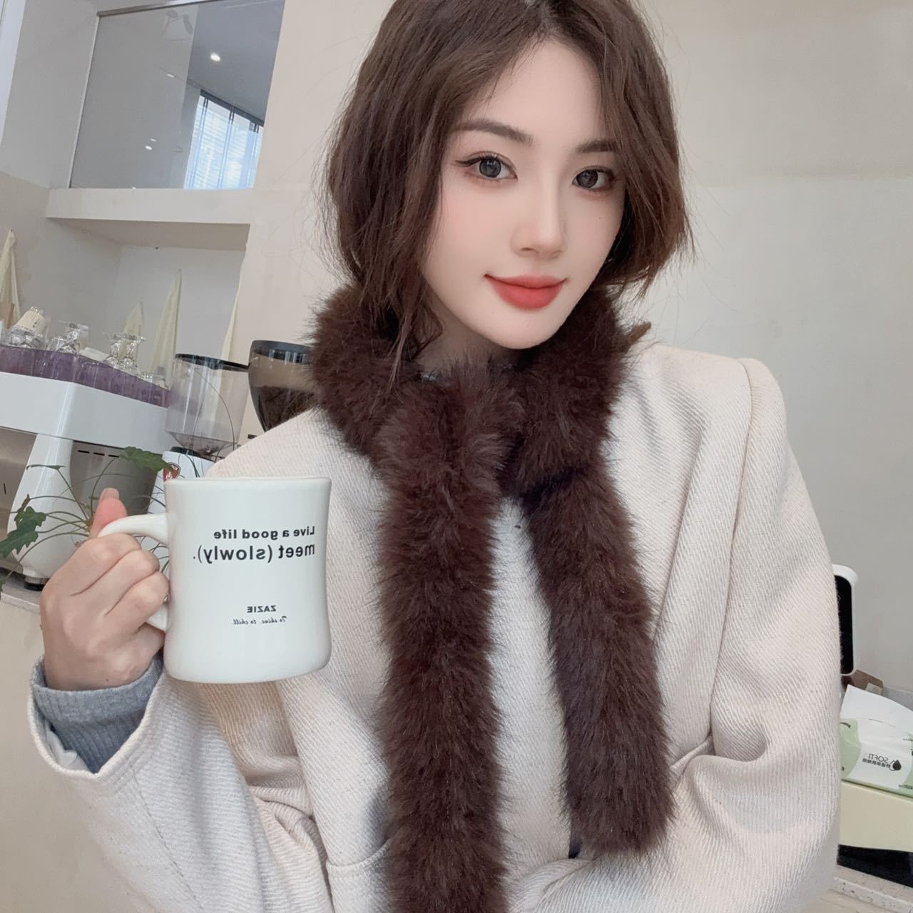 겨울 여성 한국식 렉스 토끼 모피 크로스 스카프 겨울 학생 모피 스카프 2024 새로운 봉제스토어 가기