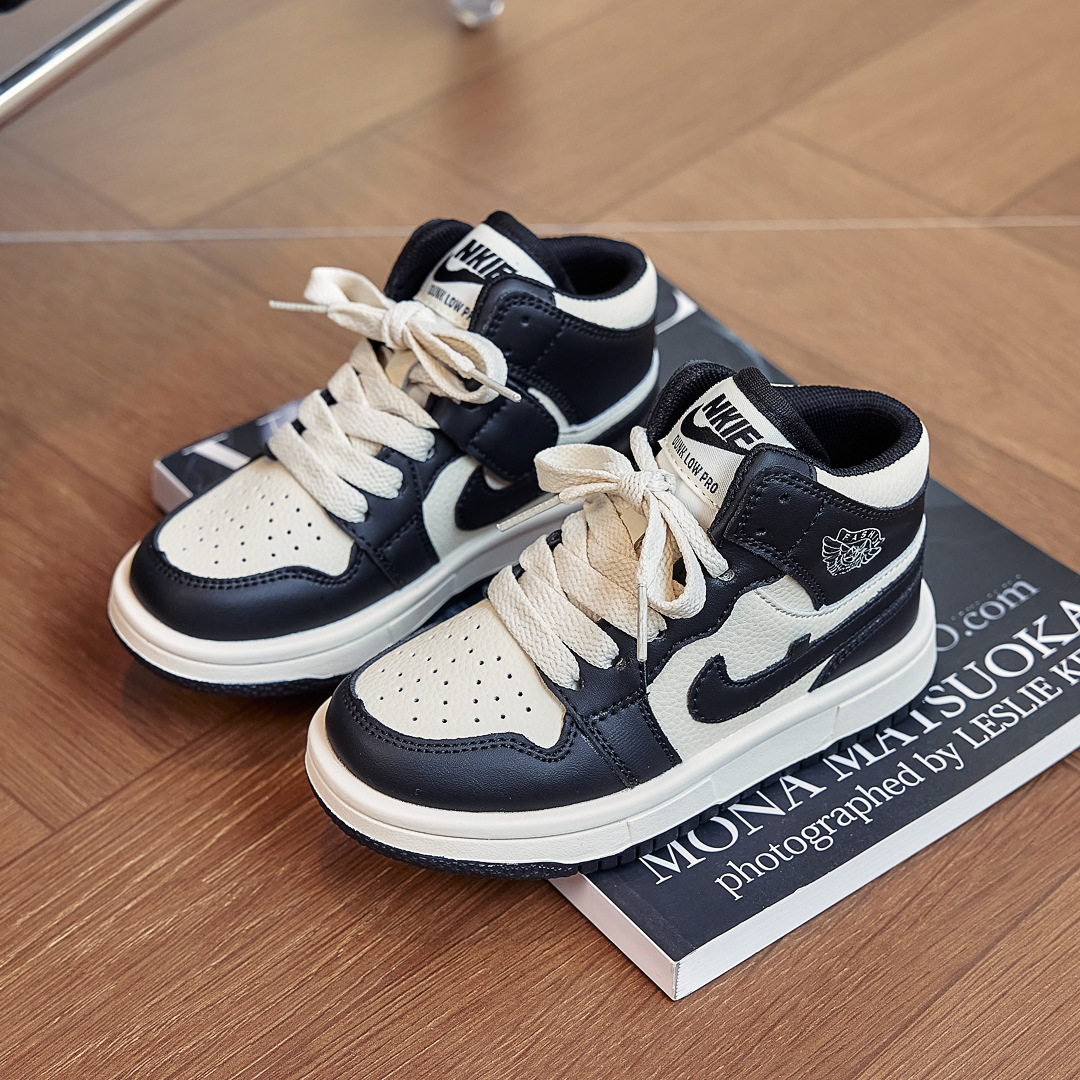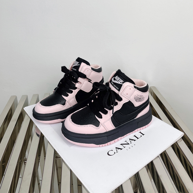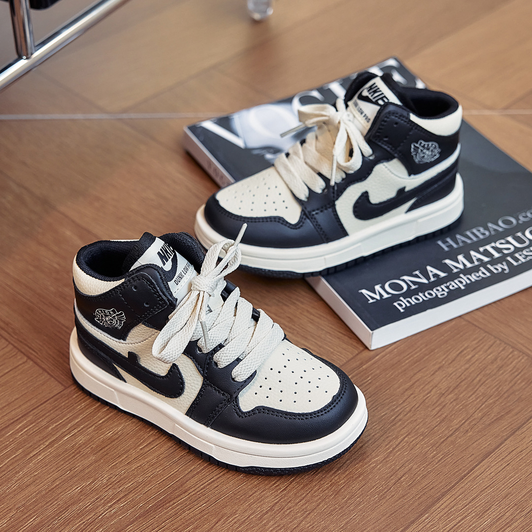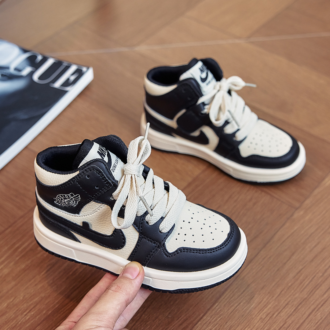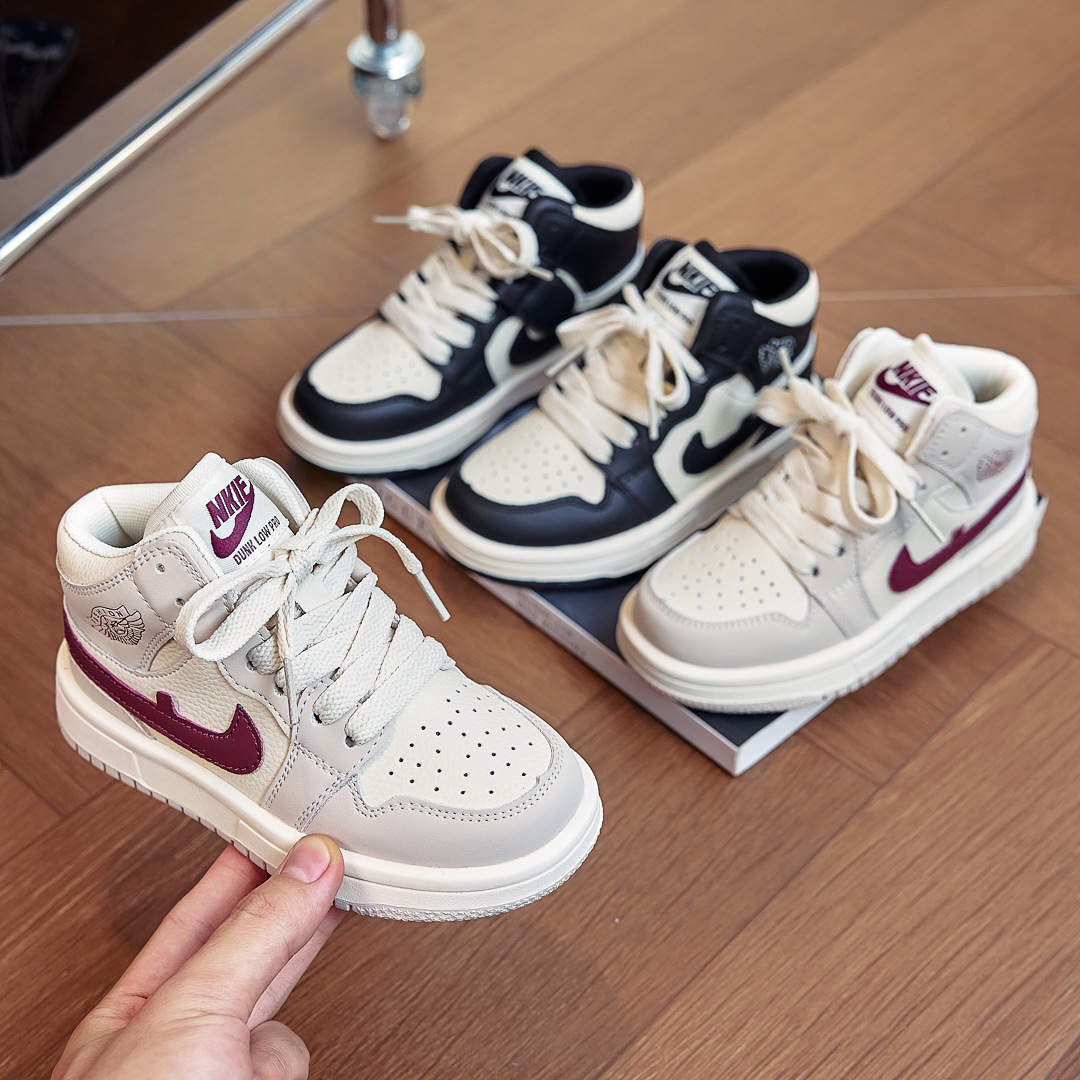 AJ童鞋秋冬儿童运动鞋拼色潮牌男童跑步鞋百搭高帮女童休闲板鞋