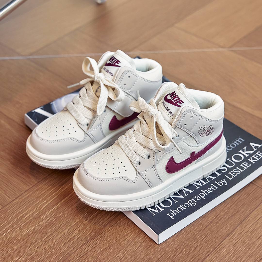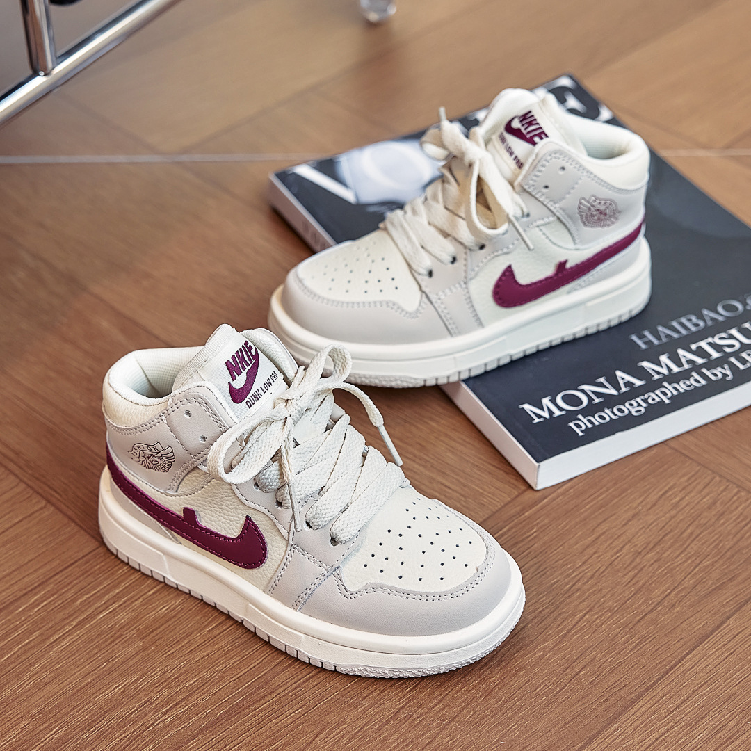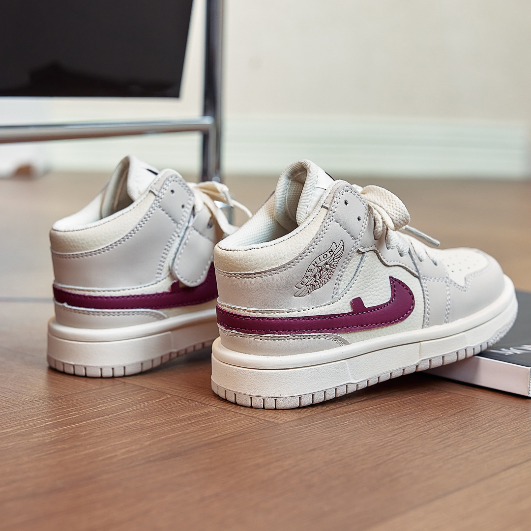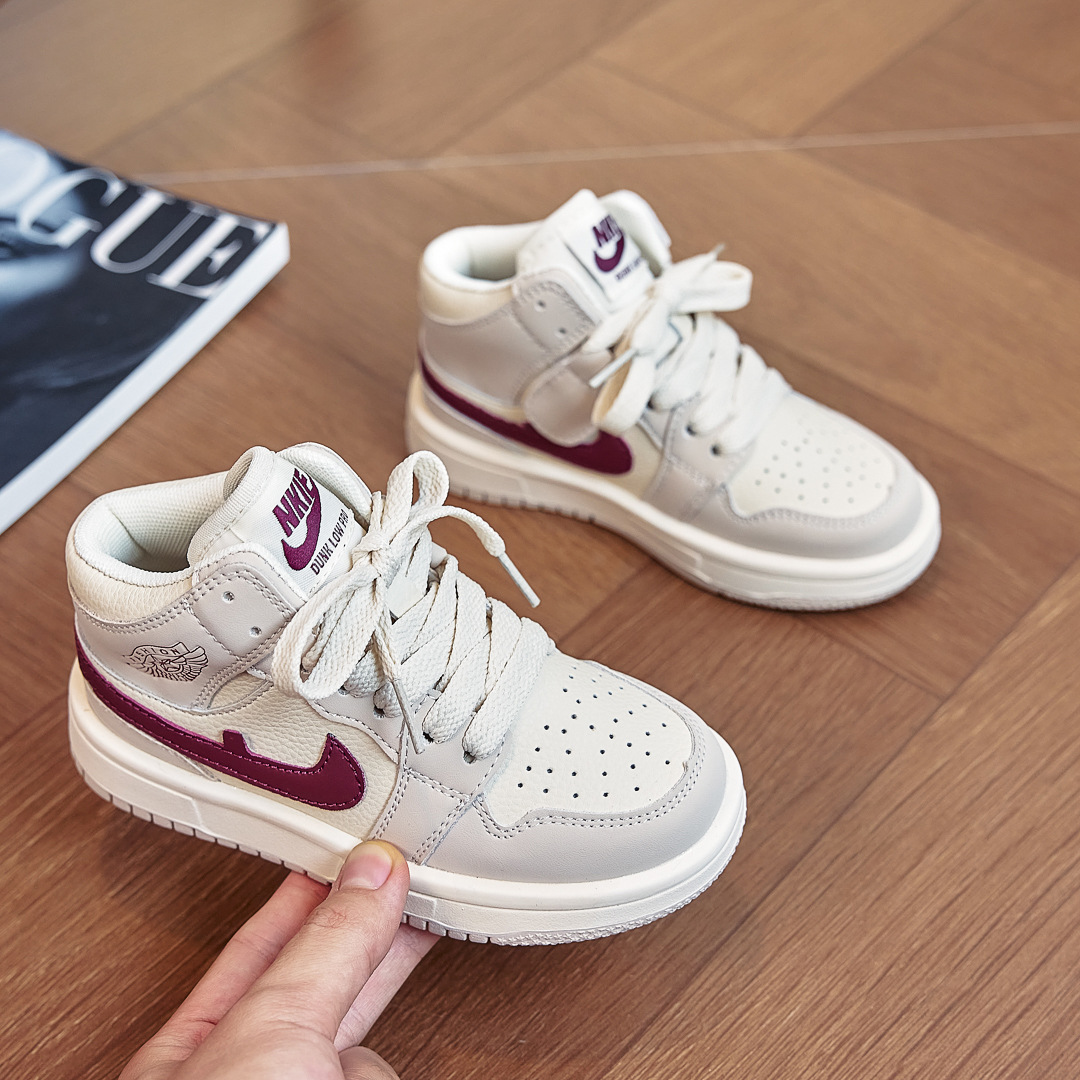 AJ童鞋秋冬儿童运动鞋拼色潮牌男童跑步鞋百搭高帮女童休闲板鞋