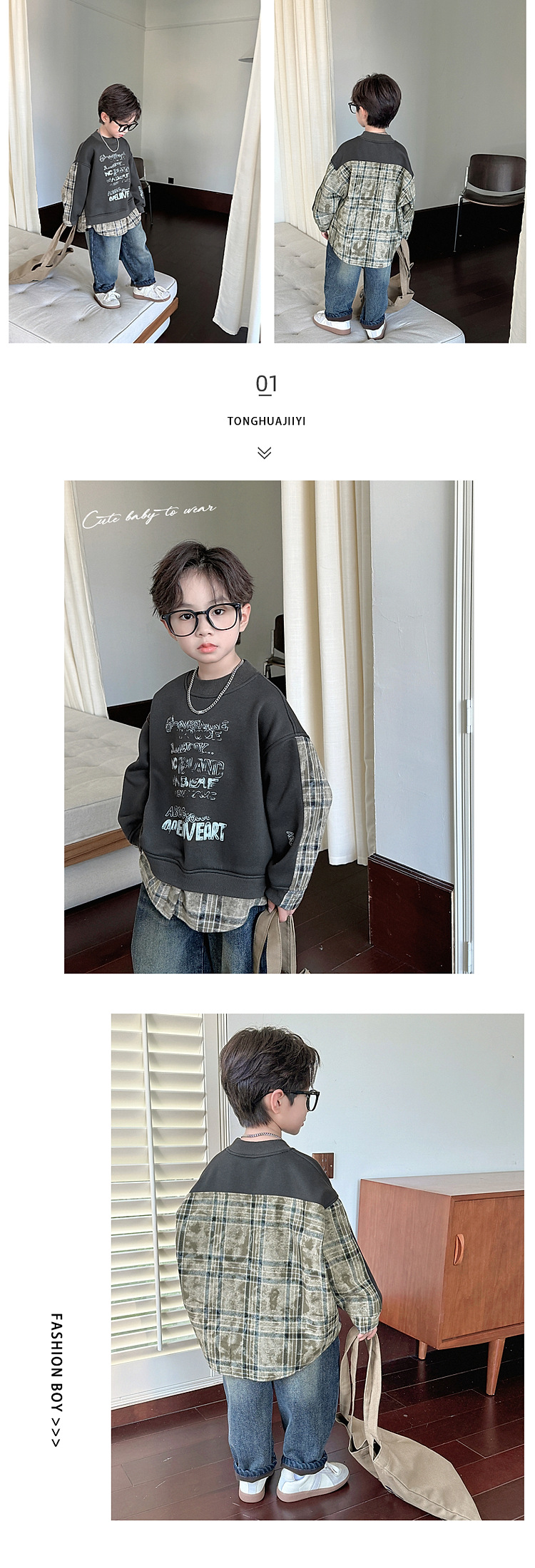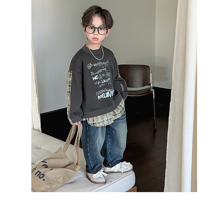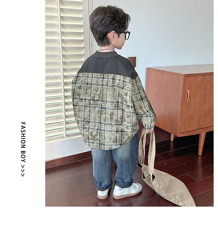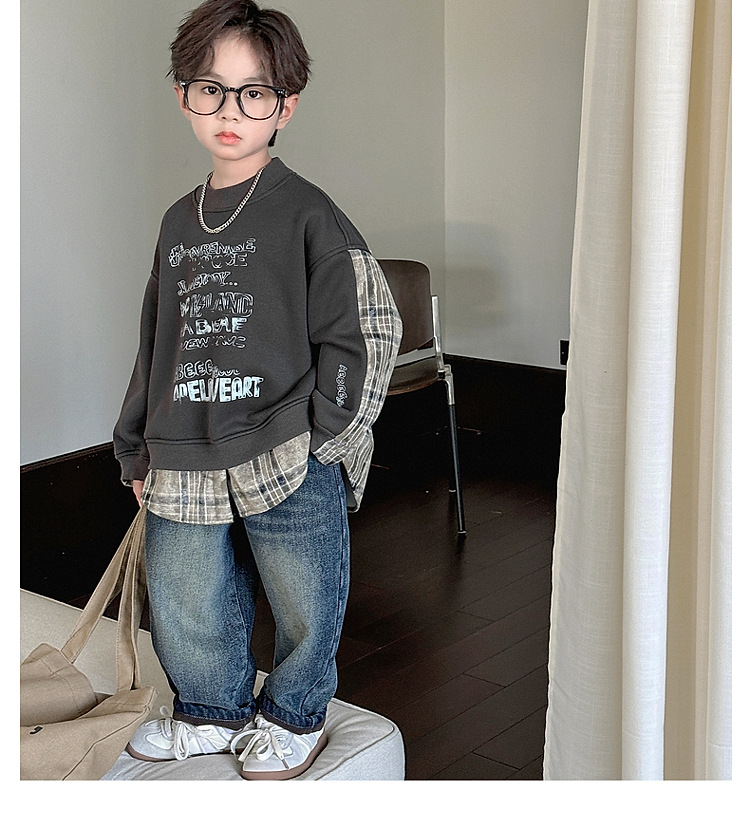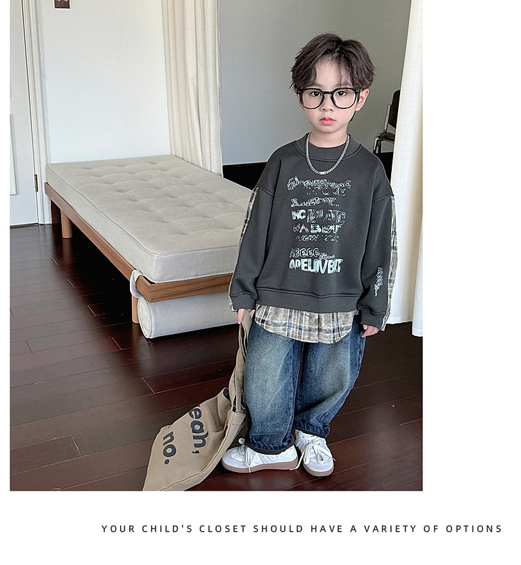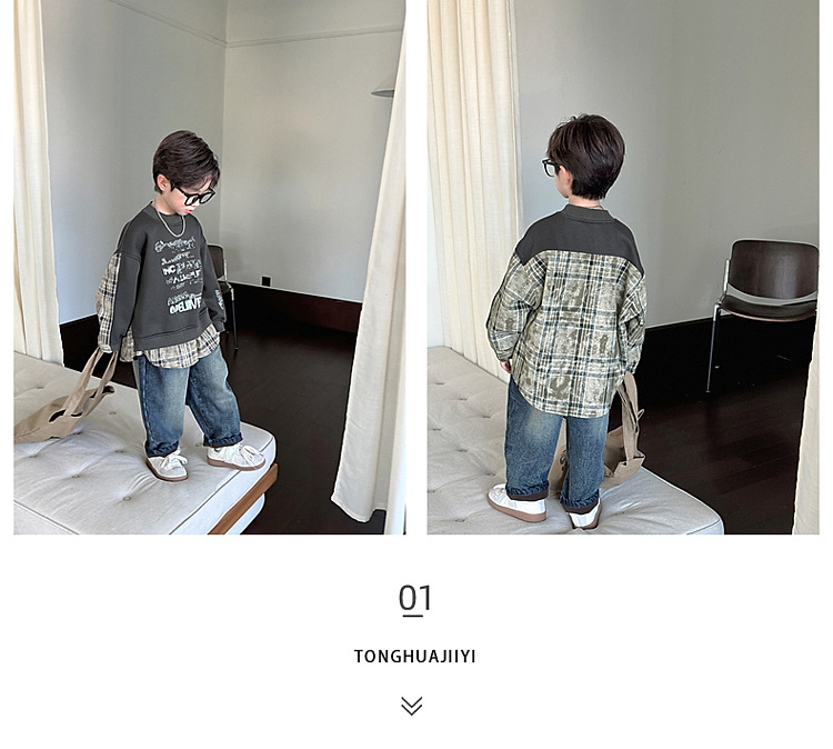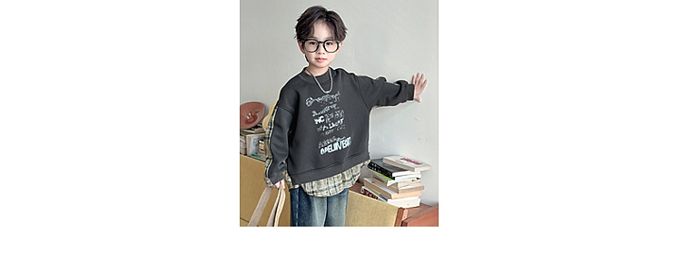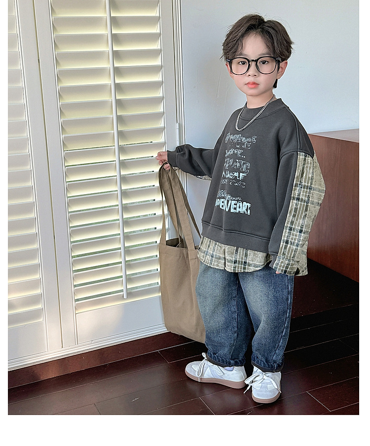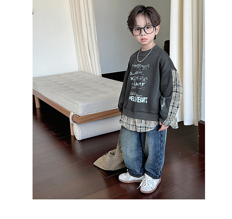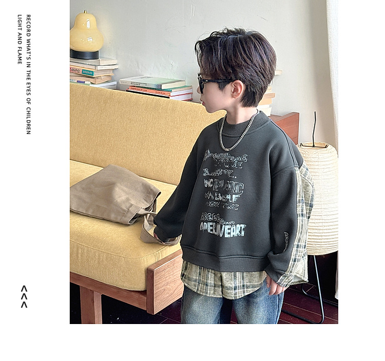 소년 스웨터 겨울 2024 새로운 어린이 가을과 겨울 소년들은 원피스 벨벳 둥근 목 따뜻한 긴 소매 탑을 두껍게 만들었습니다.스토어 가기