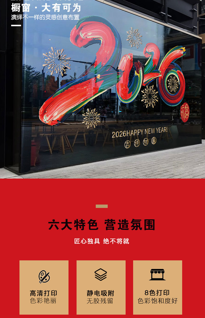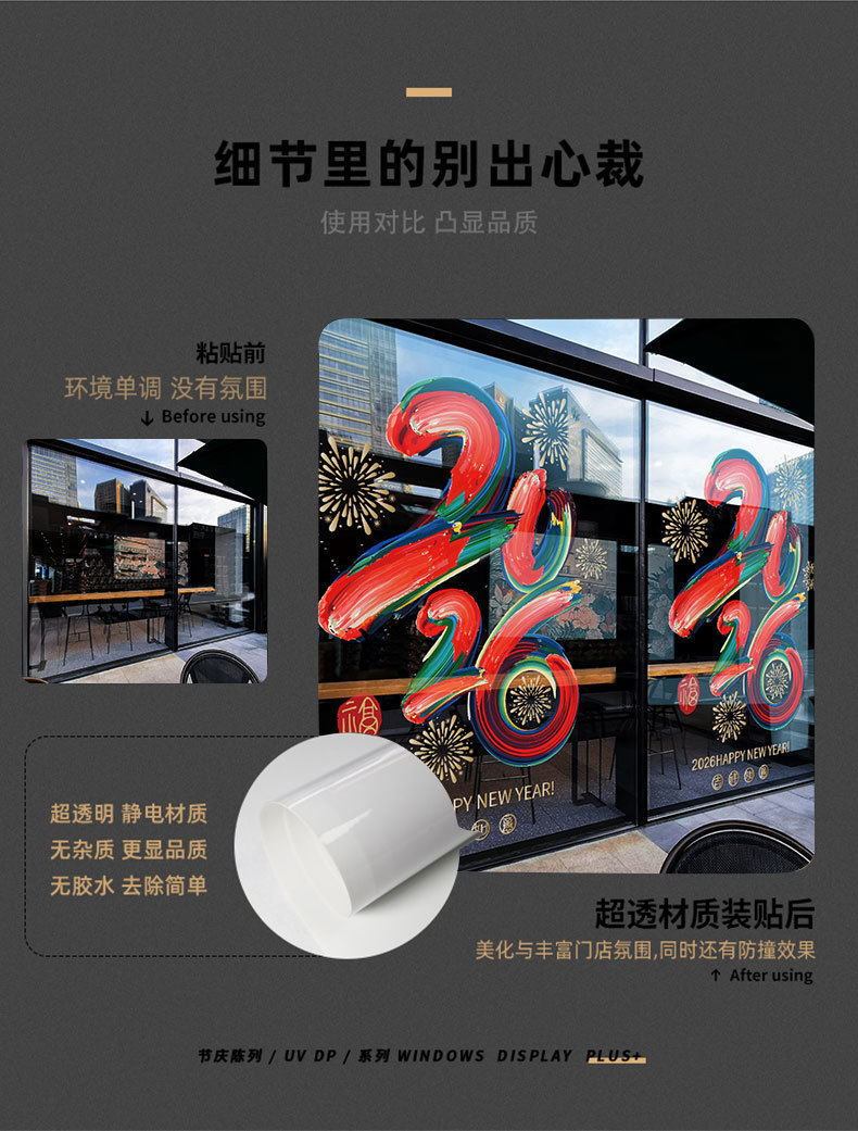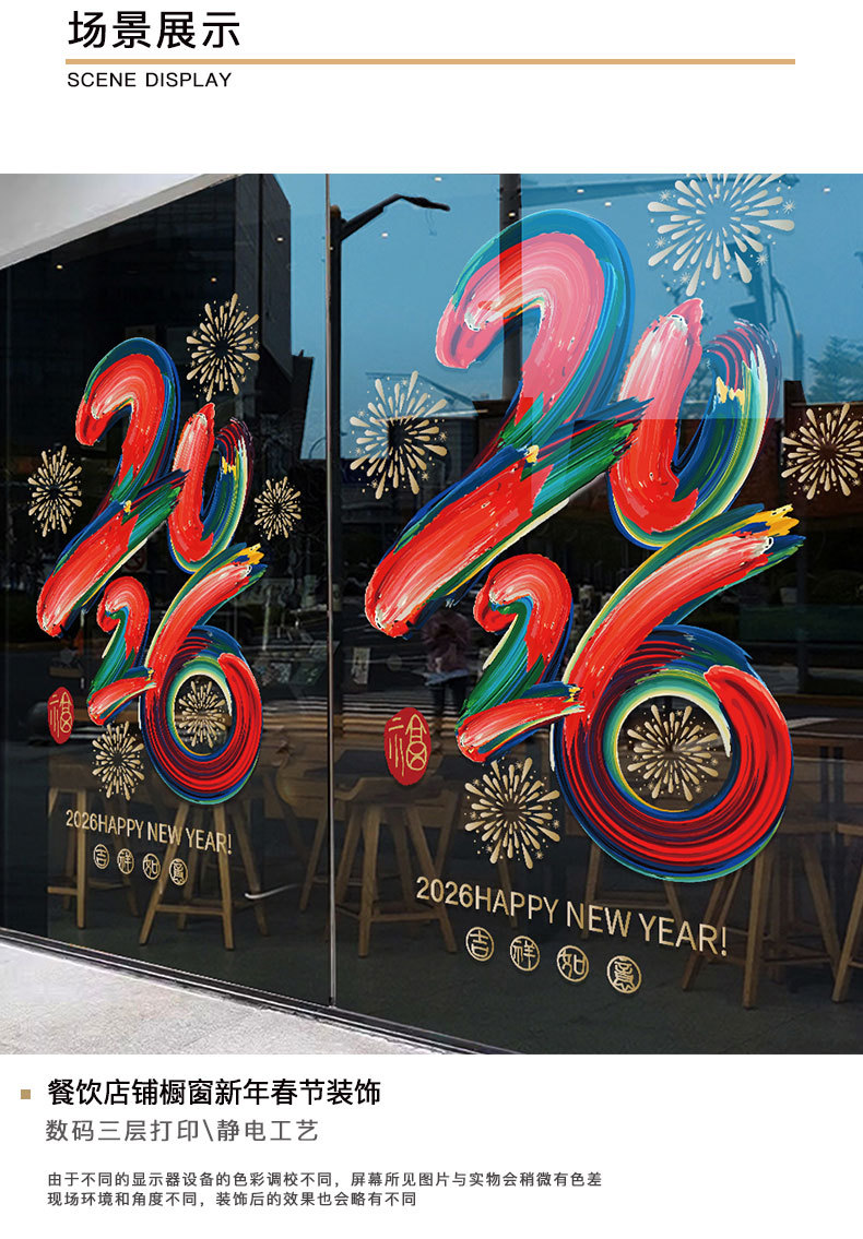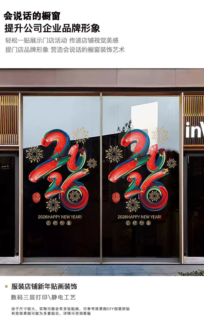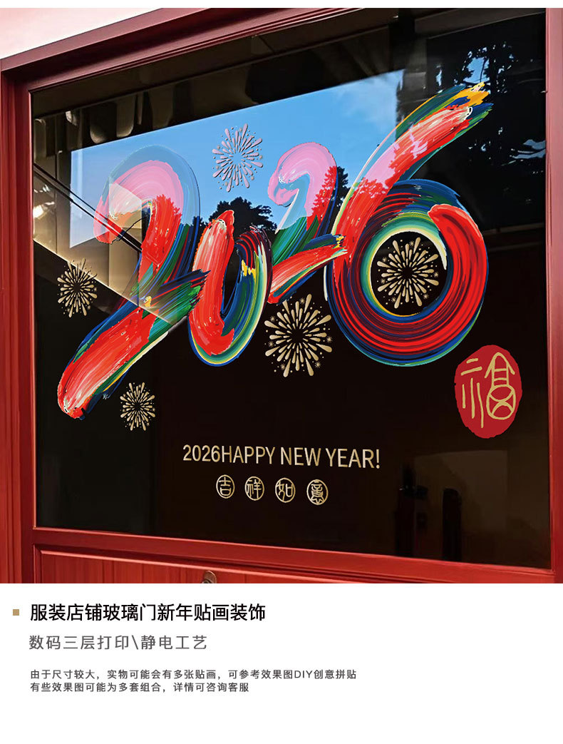 2026년 설날 말년 새해 춘절 창문 장식 스티커 전자식 창문 스티커 무접착 문 스티커스토어 가기