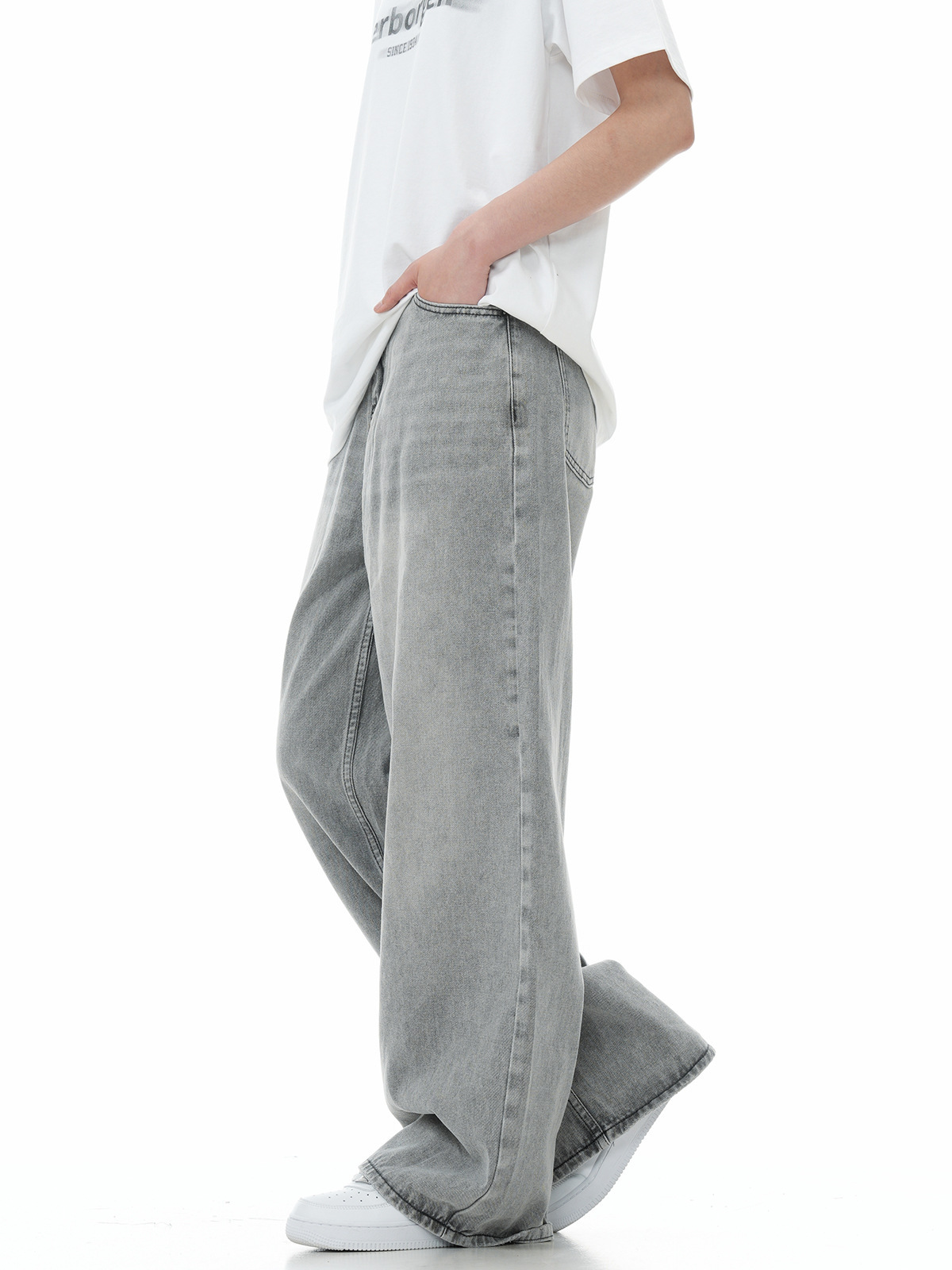 아메리칸 스타일 하이 스트리트 트렌디 브랜드 청바지 남성 봄과 가을 새로운 느슨한 캐주얼 와이드 레그 스트레이트 튜브 세척 오래 된 긴 바지스토어 가기