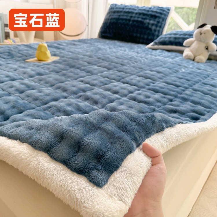 겨울 토끼 헤어 우유 벨벳 매트리스 홈 침실 부드러운 쿠션 두꺼운 따뜻한 기숙사 학생 크로스 국경 담요 매트리스스토어 가기
