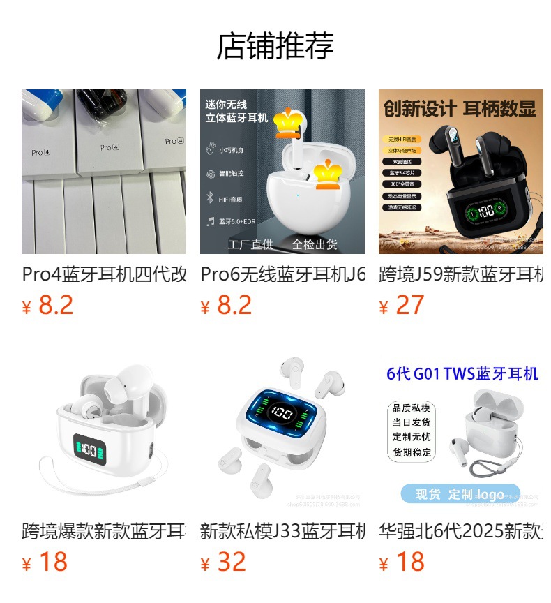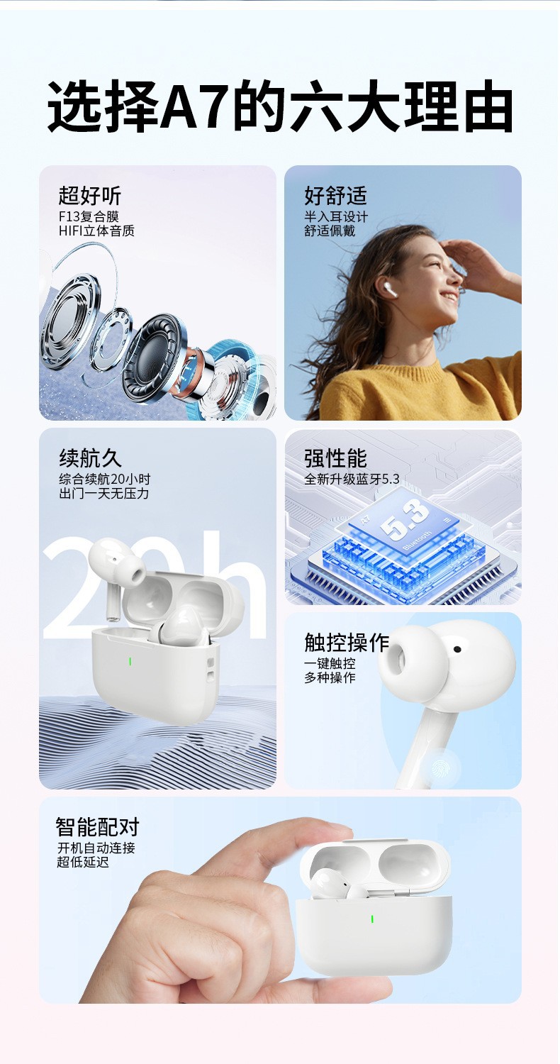 Huaqiangbei A6 A7pro 블루투스 헤드셋 소음 감소 TWS 이어버드 인이어 고품질 7세대 헤드셋 해외 공급스토어 가기