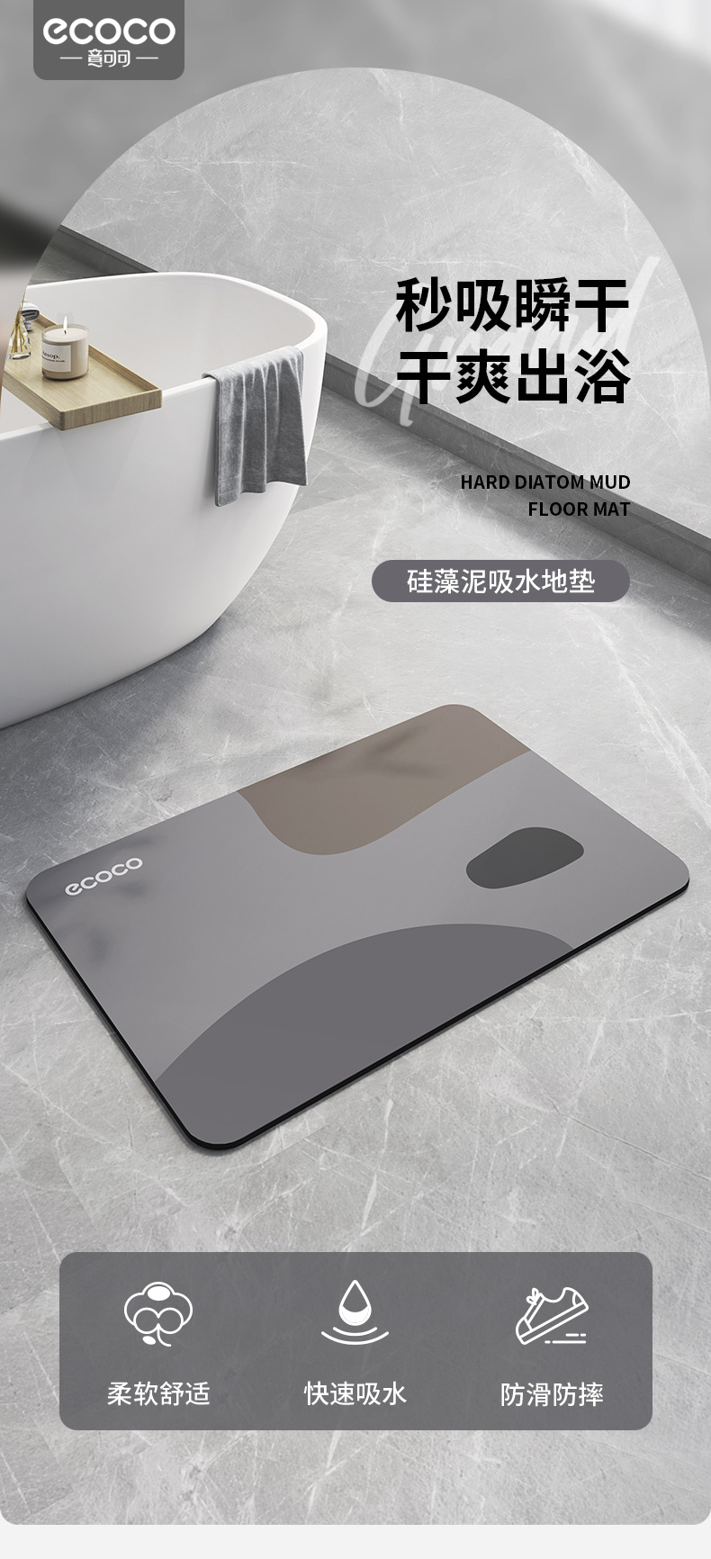 화장실 바닥 매트 욕실 Diatom 진흙 흡수성 미끄럼 방지 빠른 건조 발 매트 화장실 입구 문스토어 가기