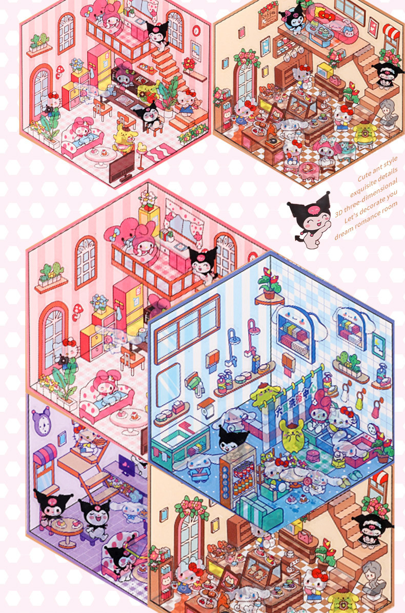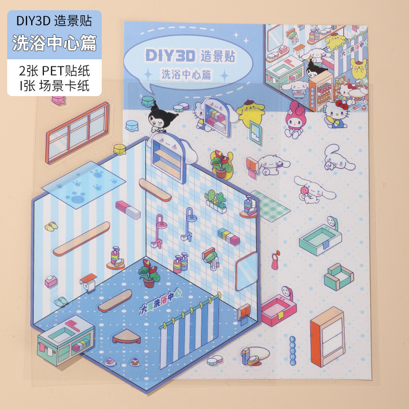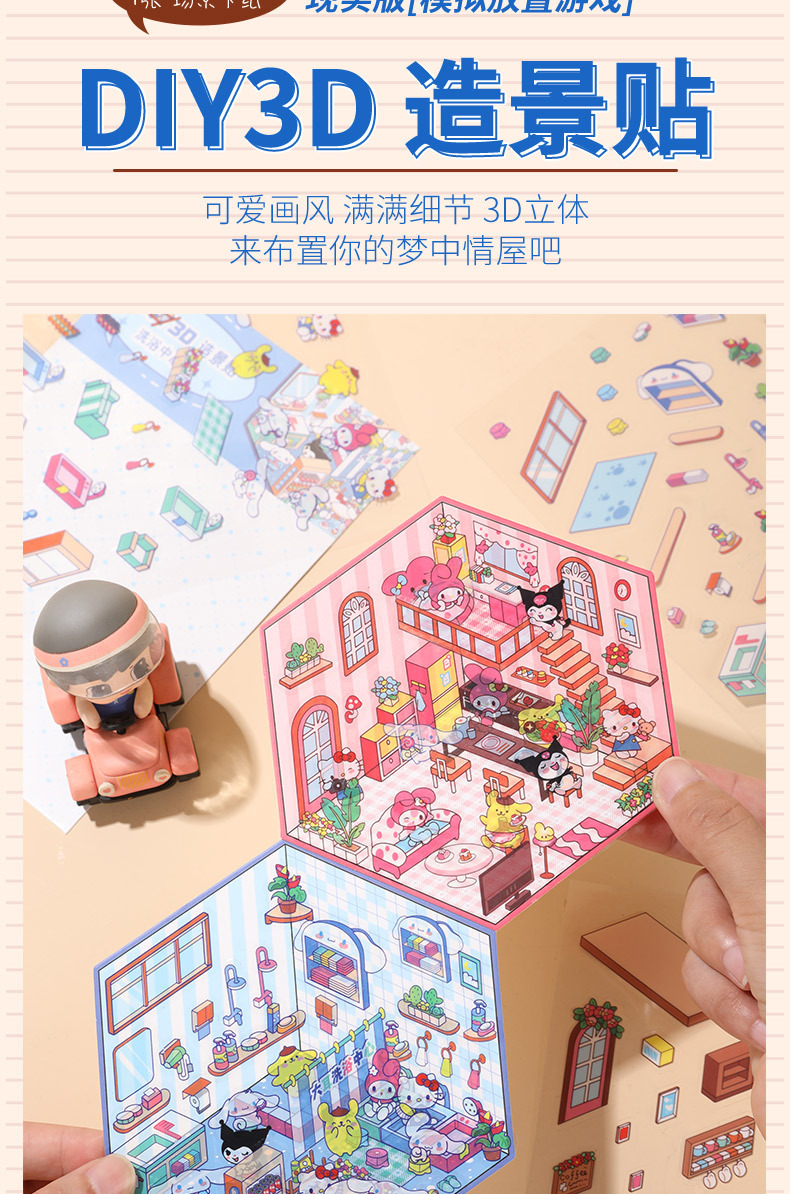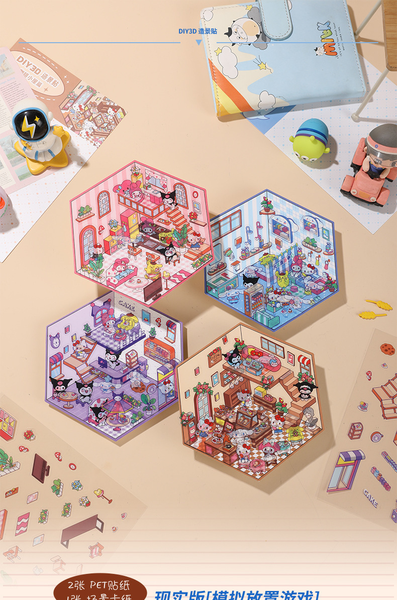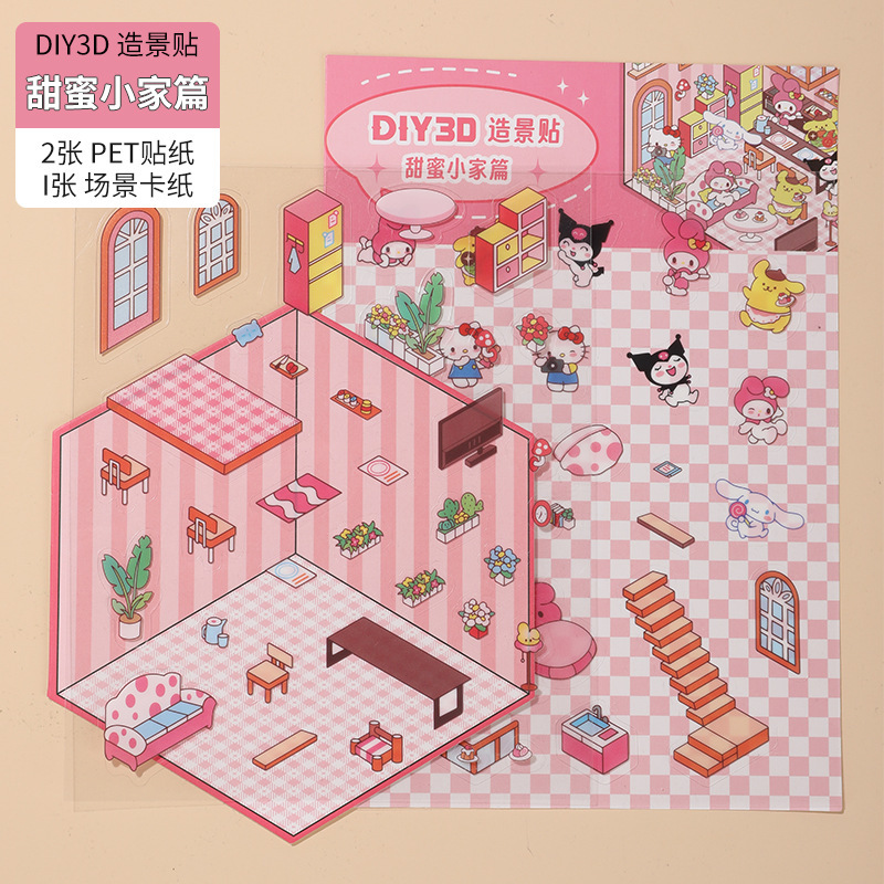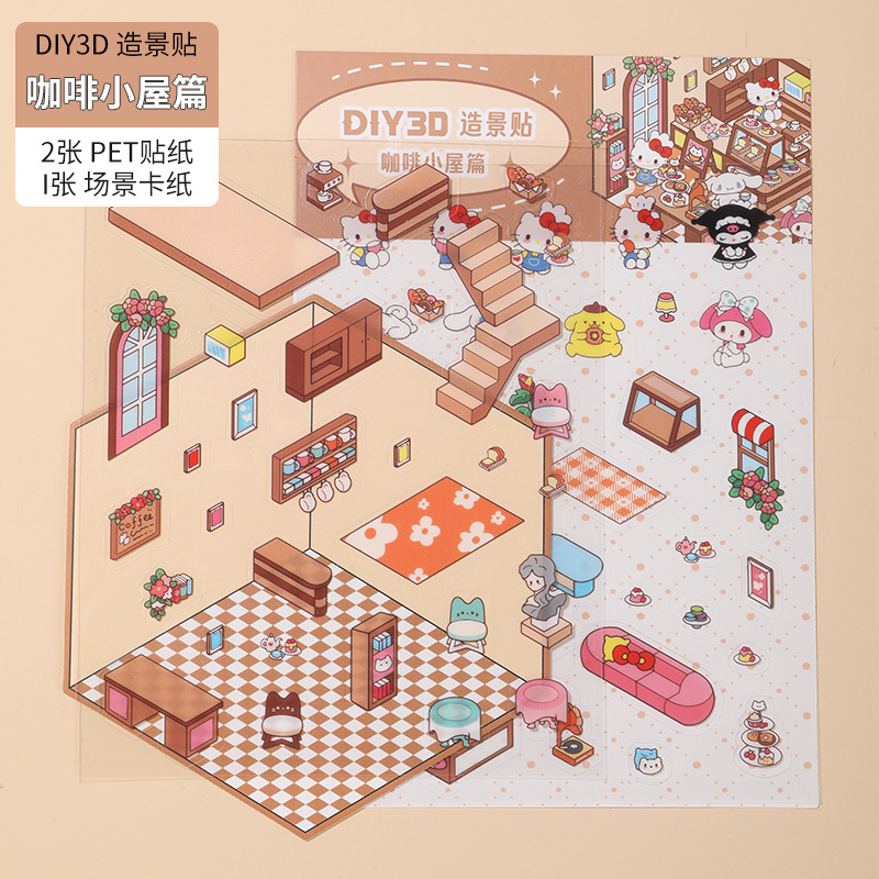 조용한 책 DIY3d 입체 오두막 풍경 스티커 한국 미니어처 장면 컷 프리 멜로디 쿨로 미