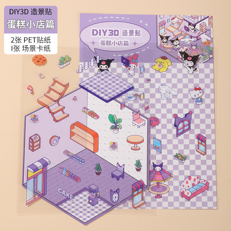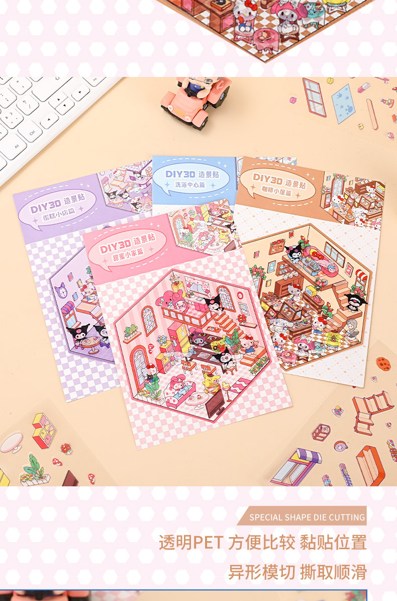 조용한 책 DIY3d 입체 오두막 풍경 스티커 한국 미니어처 장면 컷 프리 멜로디 쿨로 미스토어 가기