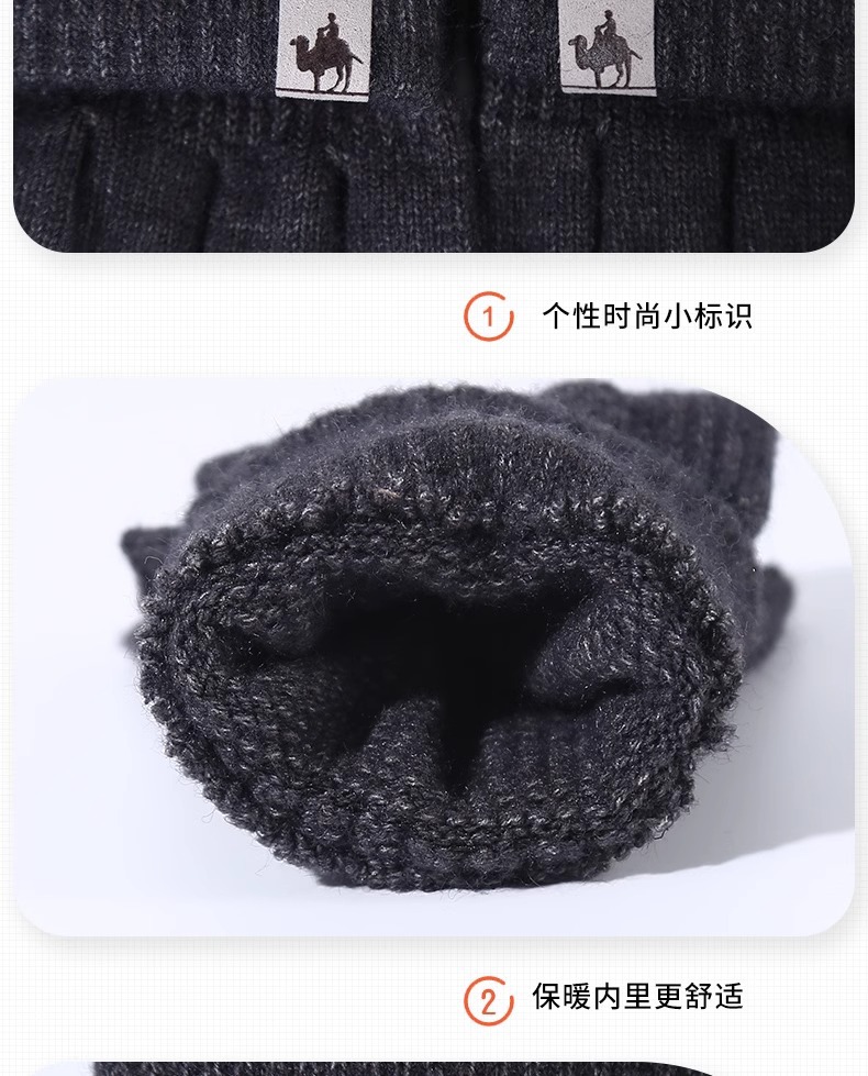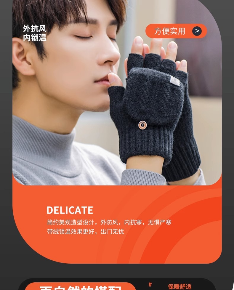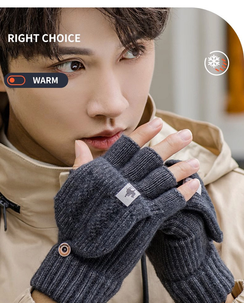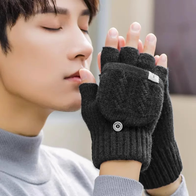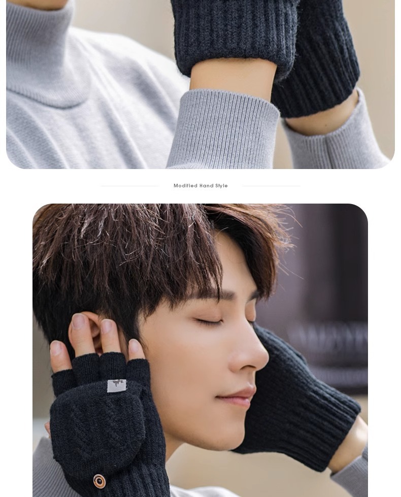 플립 하프 핑거 울 장갑 야외 승마 따뜻한 오토바이 기모 남자를위한 가을과 겨울 니트 장갑 쓰기