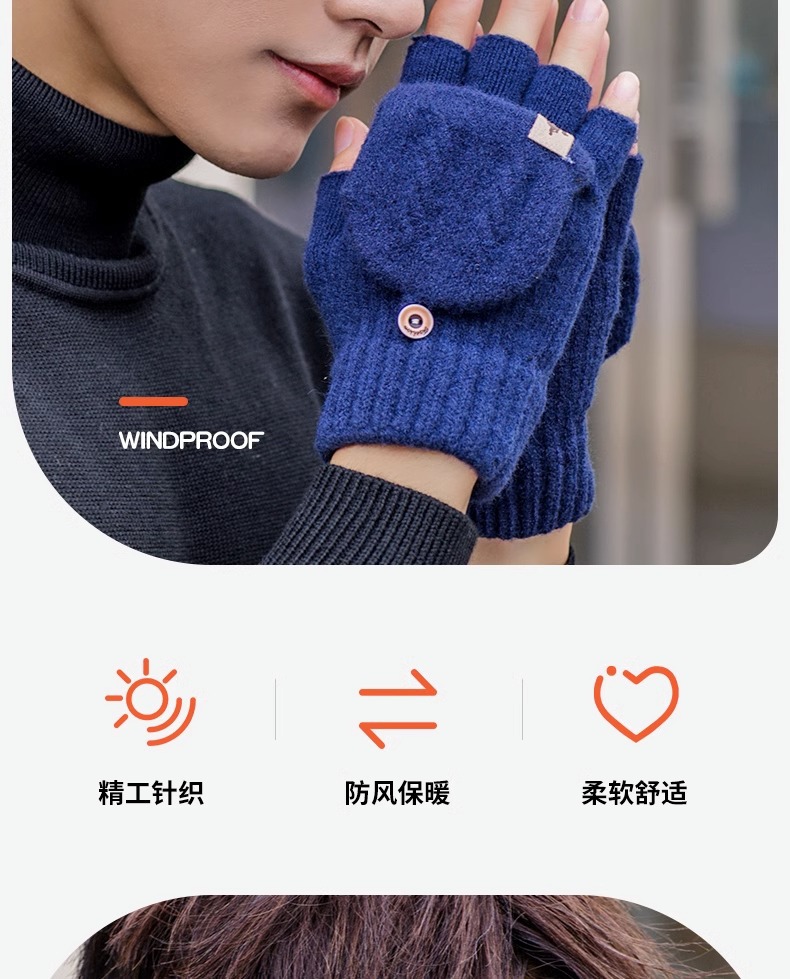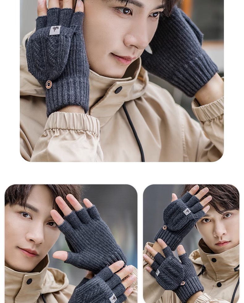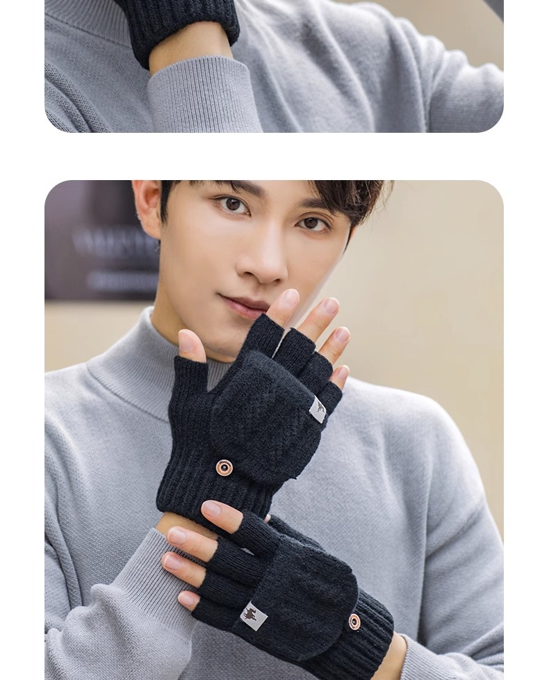 플립 하프 핑거 울 장갑 야외 승마 따뜻한 오토바이 기모 남자를위한 가을과 겨울 니트 장갑 쓰기스토어 가기