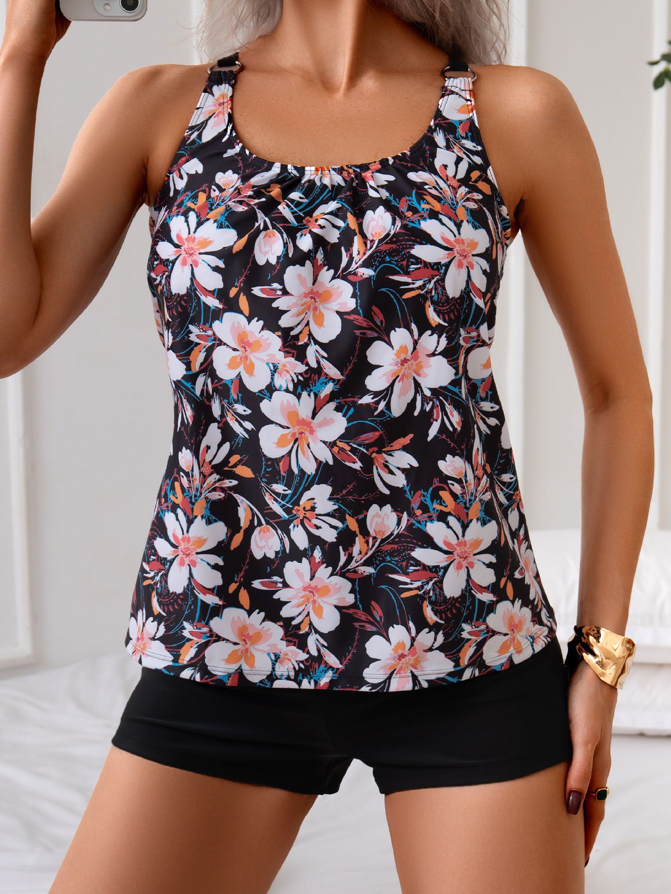 유럽과 미국의 새로운 스타일의 여성용 분리형 수영복, 루즈핏 사각팬티 타키니 수영복, 아마존 해외직구 끈 수영복