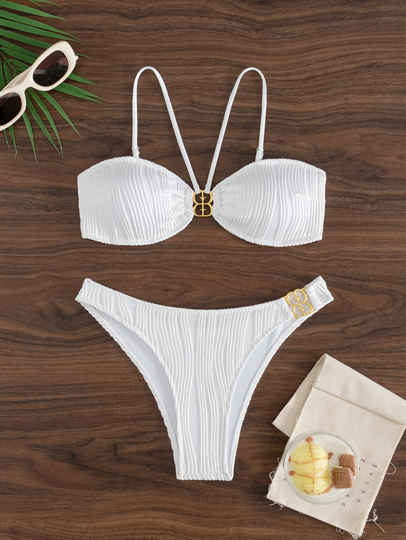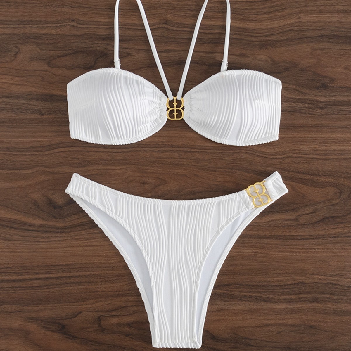 2025 국경 새로운 비키니 금속 버클 유럽과 미국의 수영복 여성 흉부 패드 인 스타일 B 자형 공제 바디 수영복
