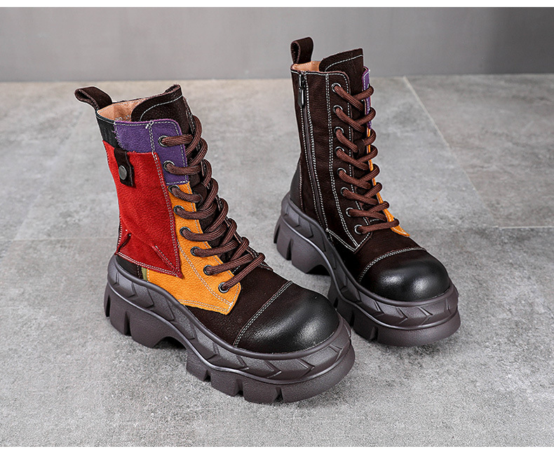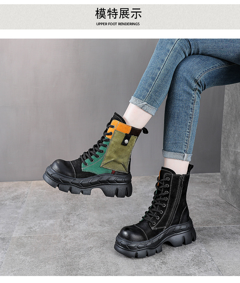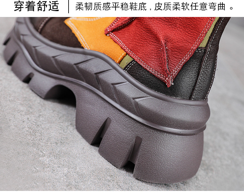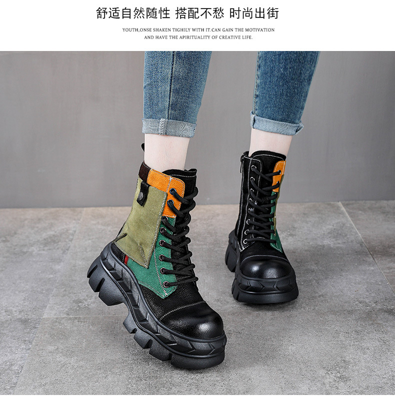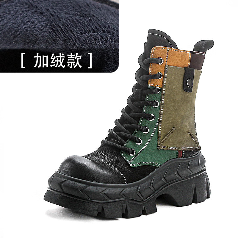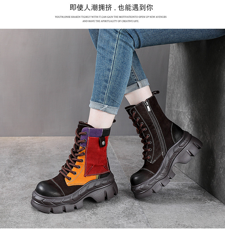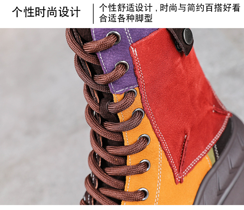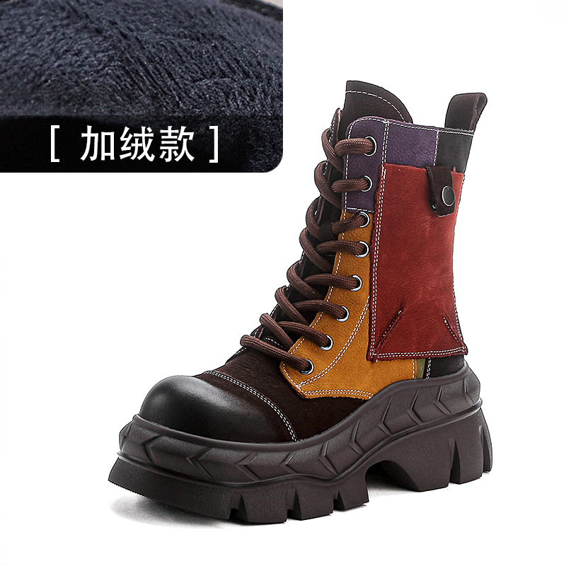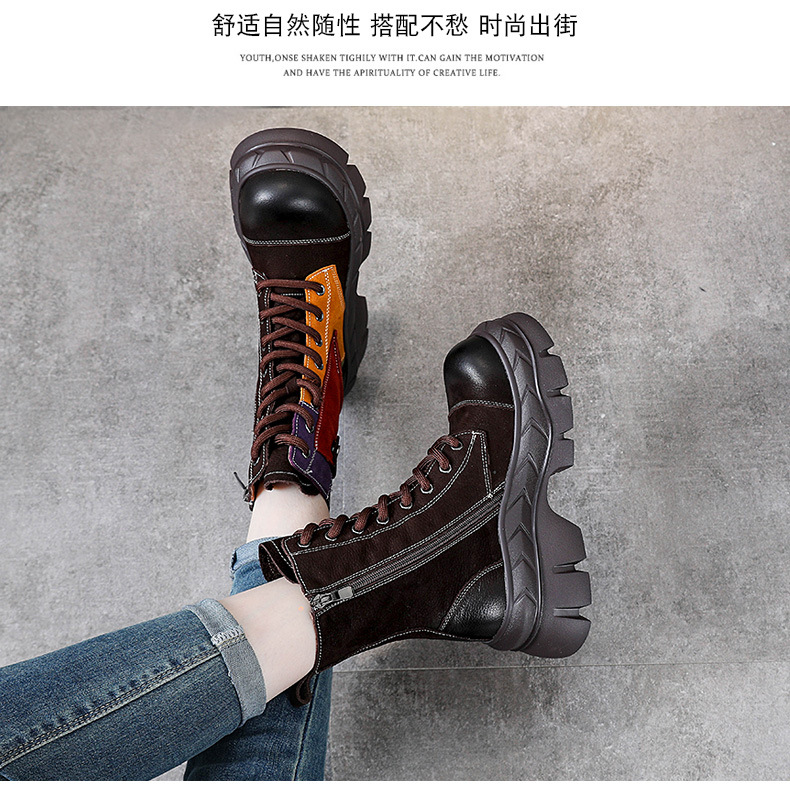 정품 레트로 두꺼운 밑창 거친 굽 코튼 부츠 웨스턴 카우보이 부츠 탑 레이어 카우보이 미드 힐 부츠 영국 여성의 가을 및 겨울 마틴 부츠스토어 가기