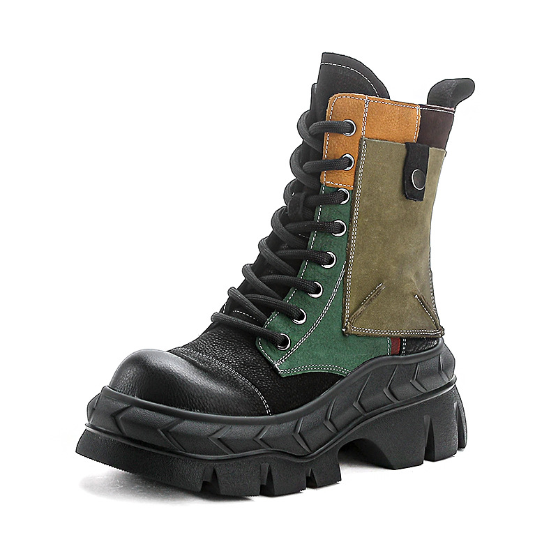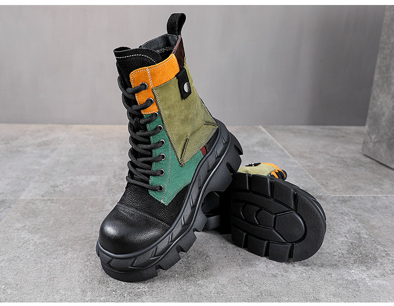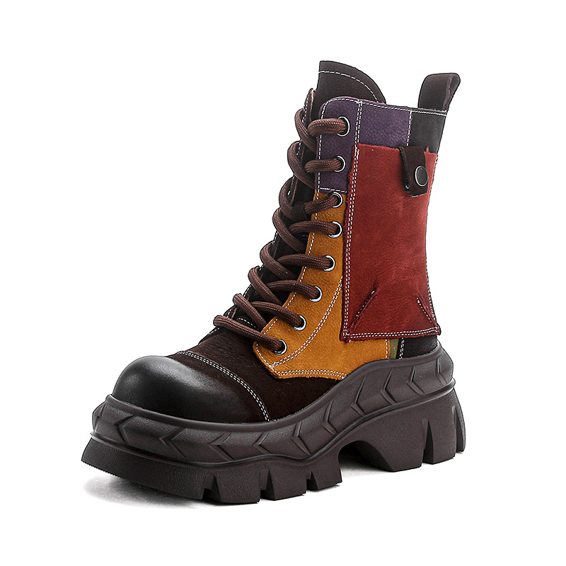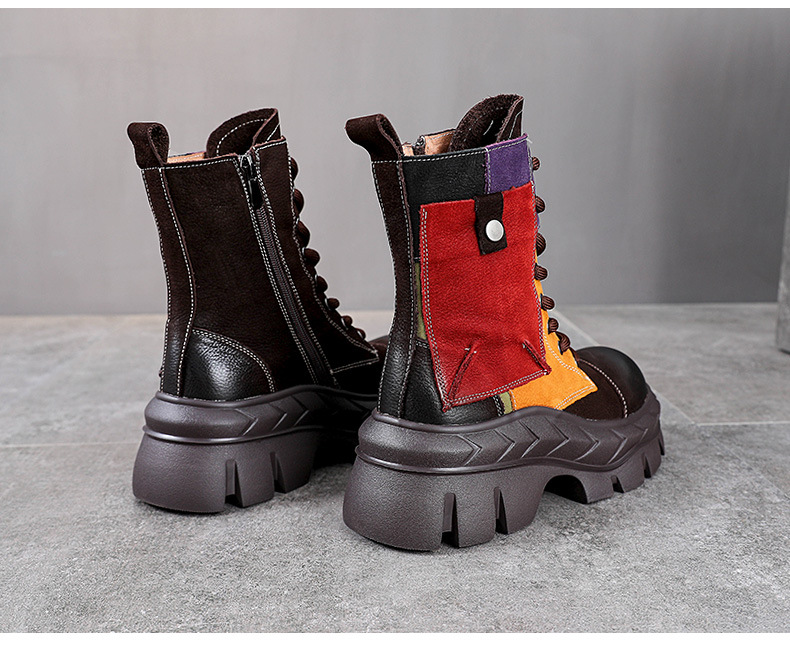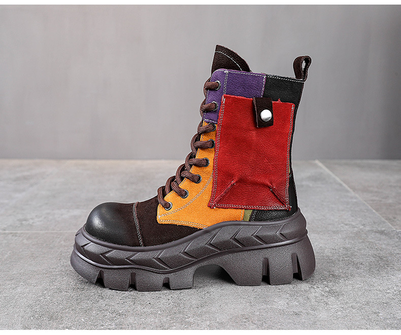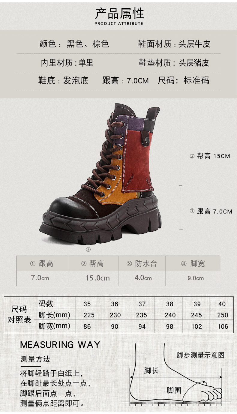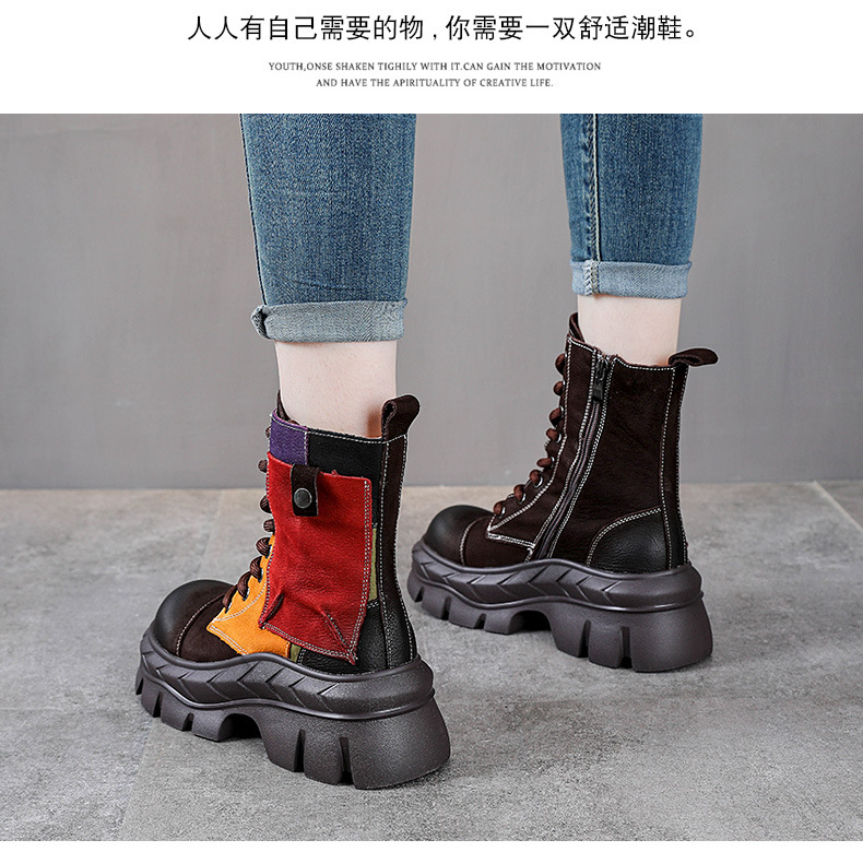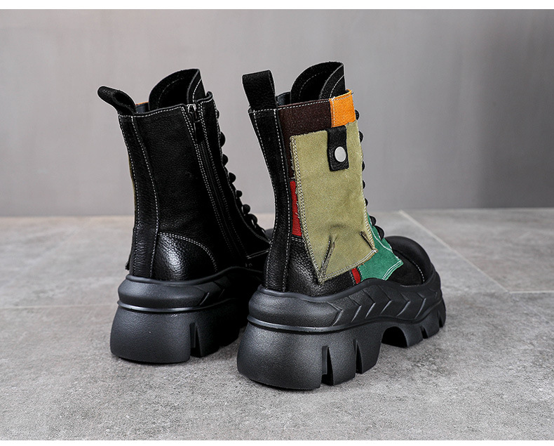 정품 레트로 두꺼운 밑창 거친 굽 코튼 부츠 웨스턴 카우보이 부츠 탑 레이어 카우보이 미드 힐 부츠 영국 여성의 가을 및 겨울 마틴 부츠스토어 가기