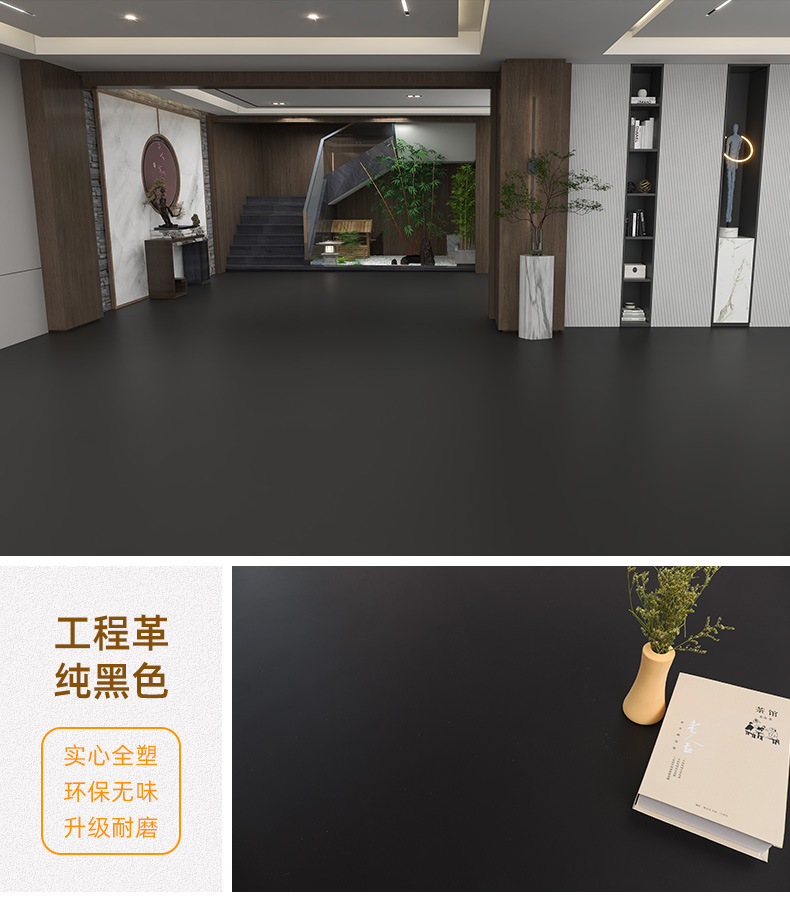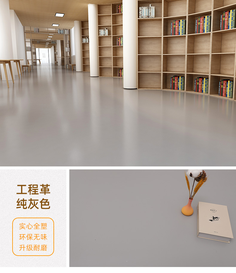 순수한 회색 PVC 플라스틱 바닥 가죽 내마모성 상업용 바닥 접착 시멘트 바닥 직접 상점 가정용 환경 보호 바닥 매트