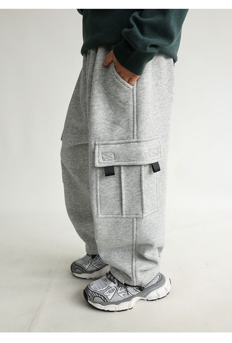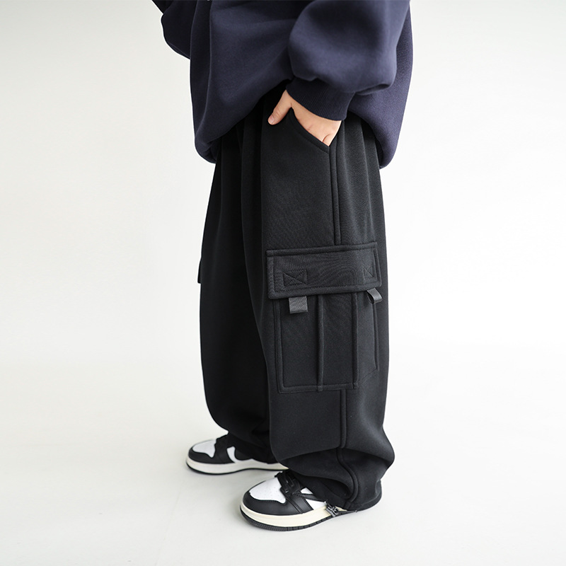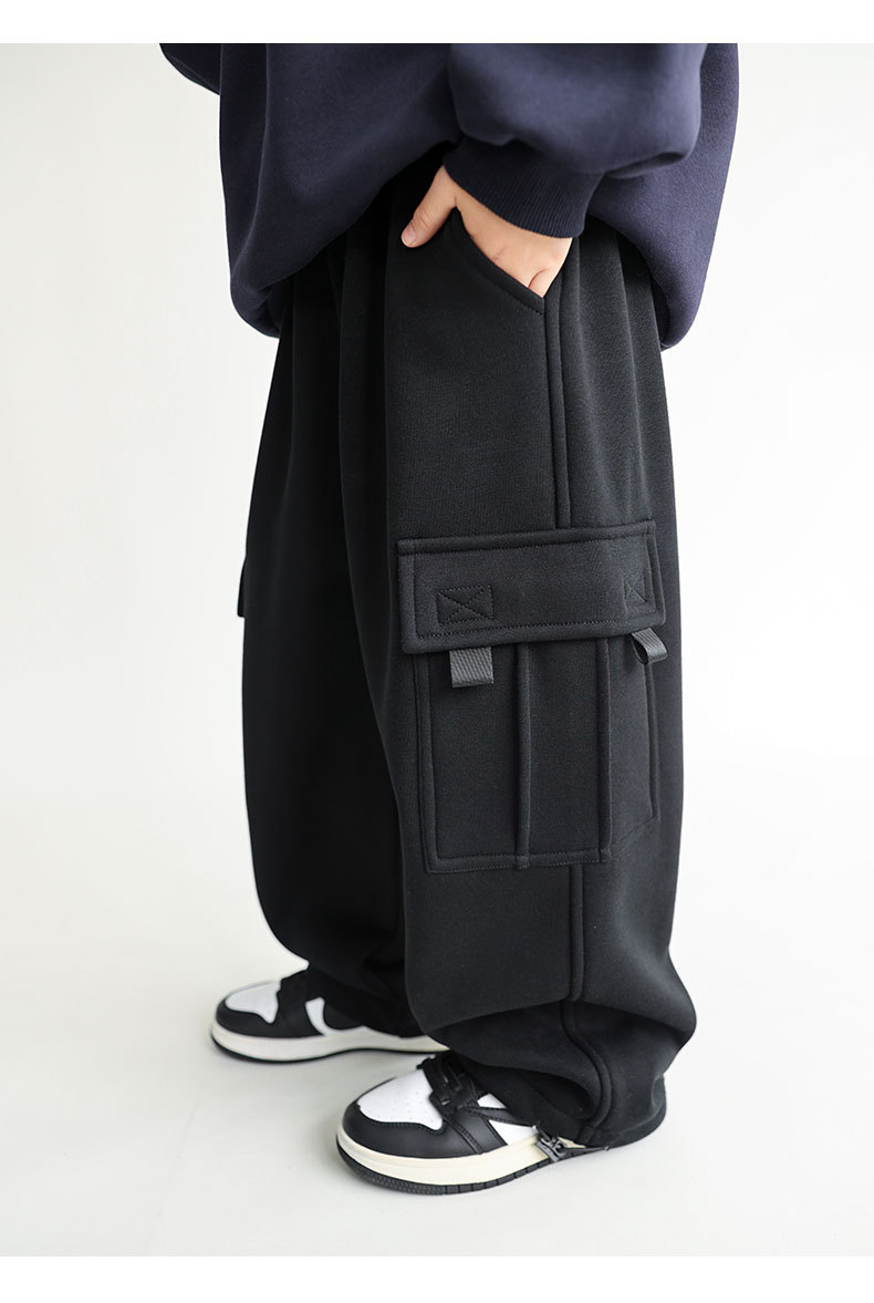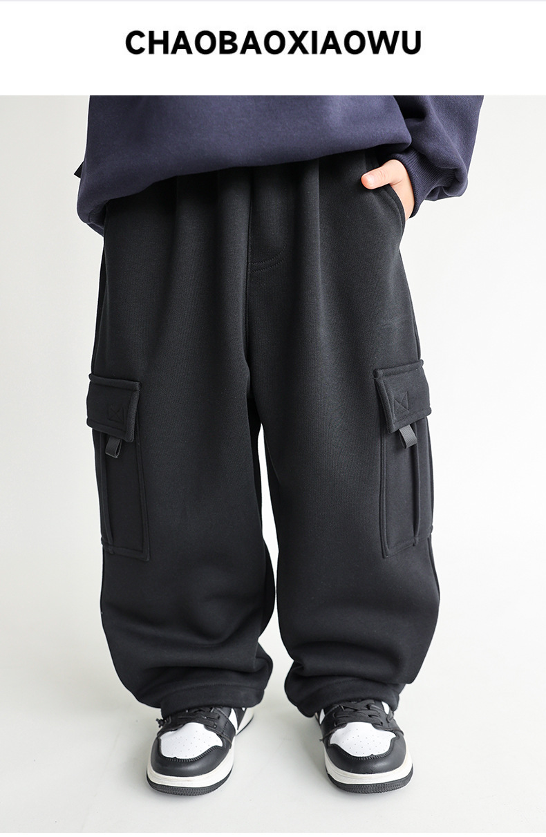 소년 기모 바지 2024 가을/겨울 새 어린이 두꺼운 달콤한 바지 넓은 다리 바지 어린이 느슨한 다리 바지 유행스토어 가기