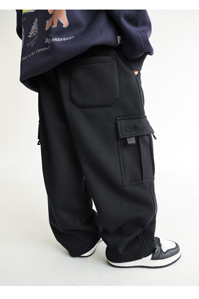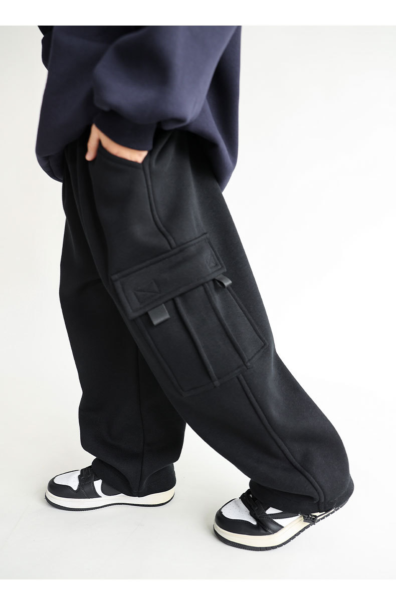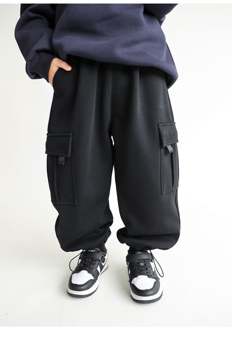 소년 기모 바지 2024 가을/겨울 새 어린이 두꺼운 달콤한 바지 넓은 다리 바지 어린이 느슨한 다리 바지 유행스토어 가기