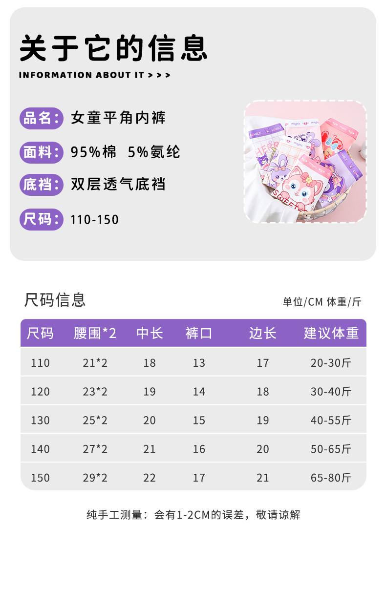 A급 아동용 여성 순면 사각팬티, 유아 및 어린이용, 여아용 사각팬티, 여성용 사각팬티, 4바늘 6선 공정