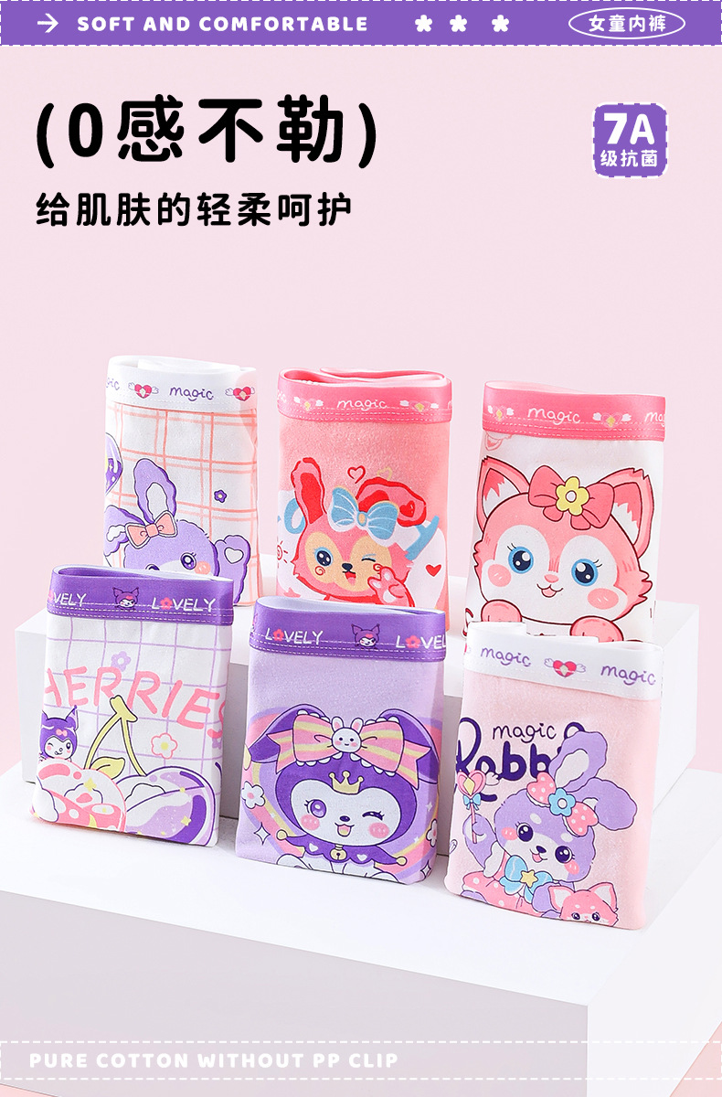 A급 아동용 여성 순면 사각팬티, 유아 및 어린이용, 여아용 사각팬티, 여성용 사각팬티, 4바늘 6선 공정스토어 가기