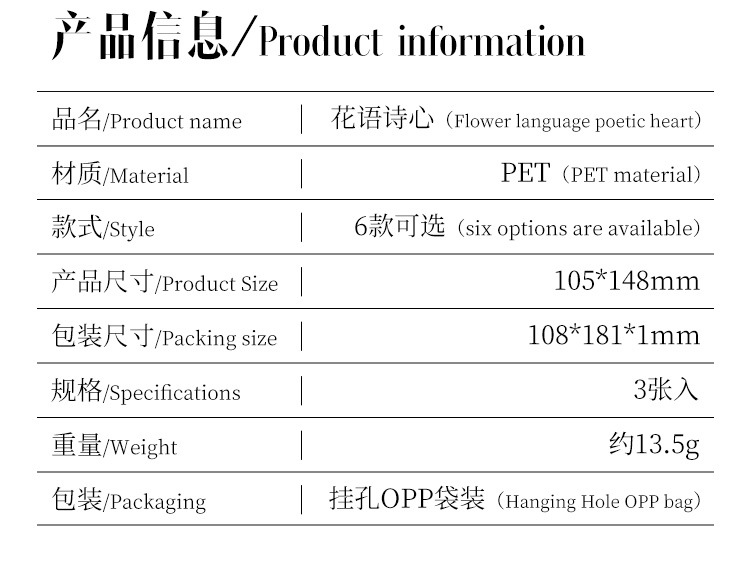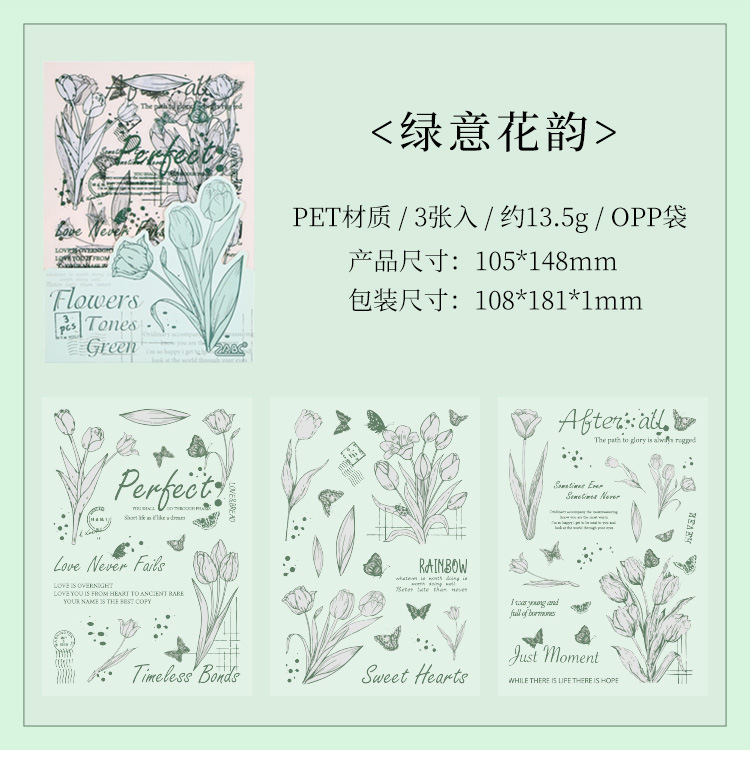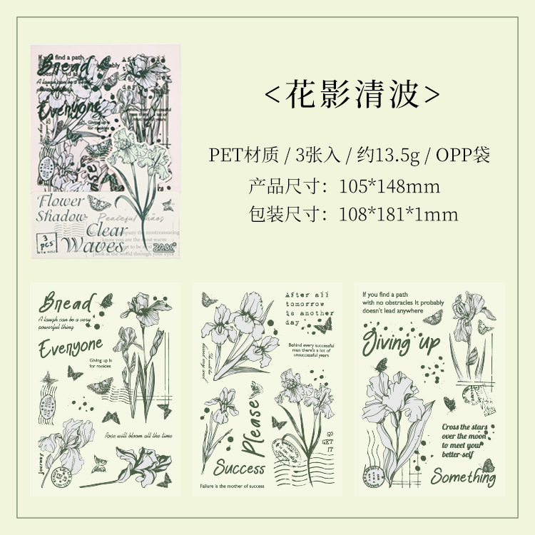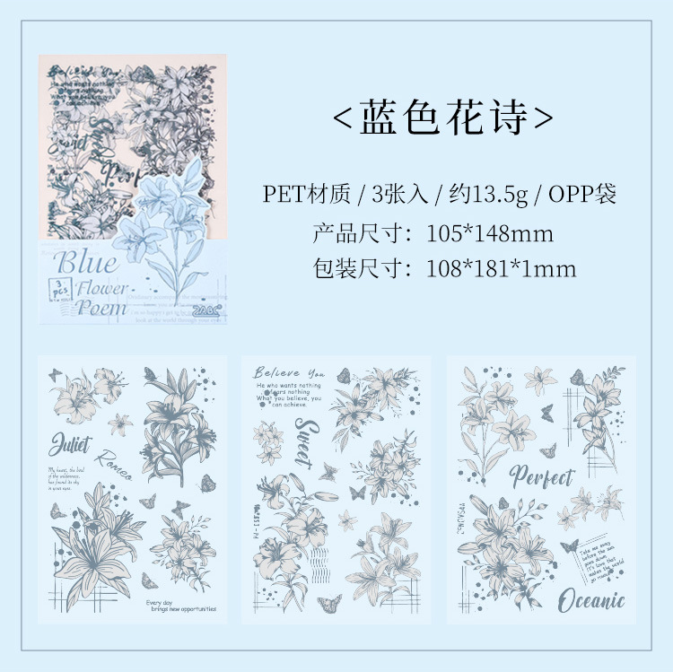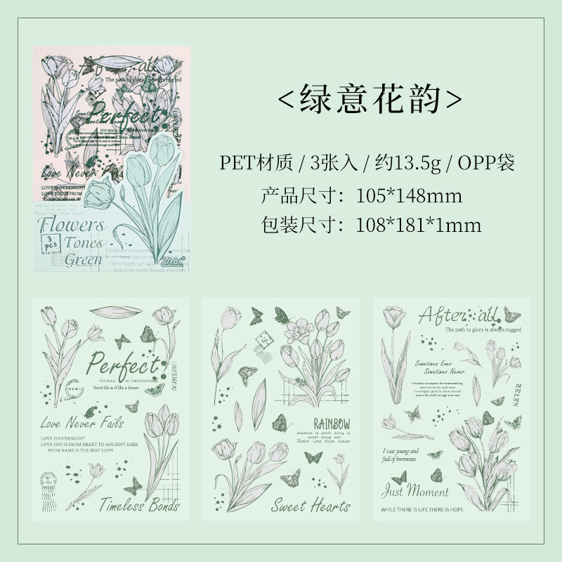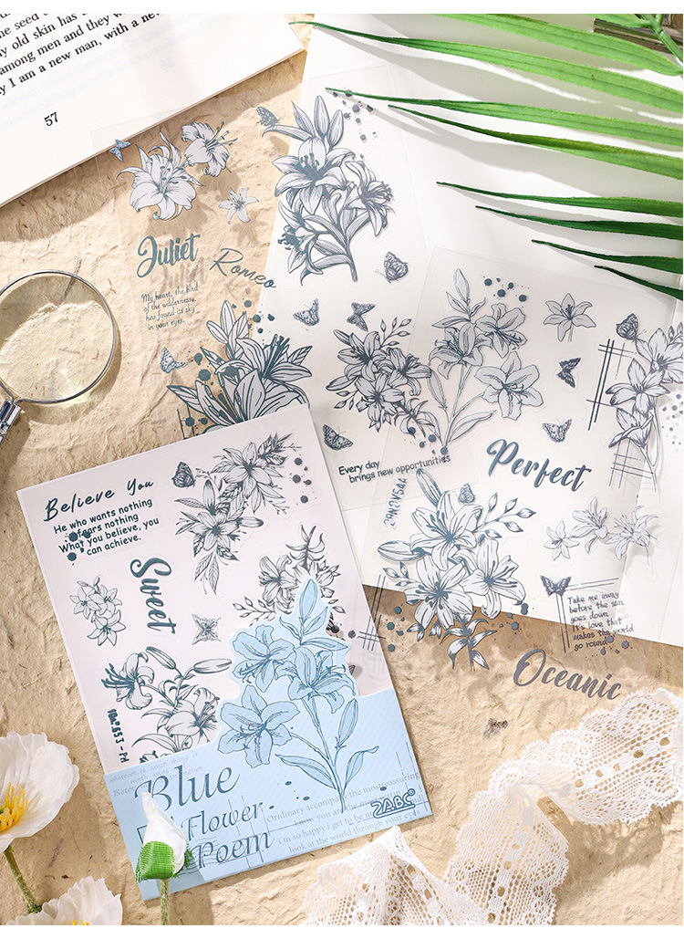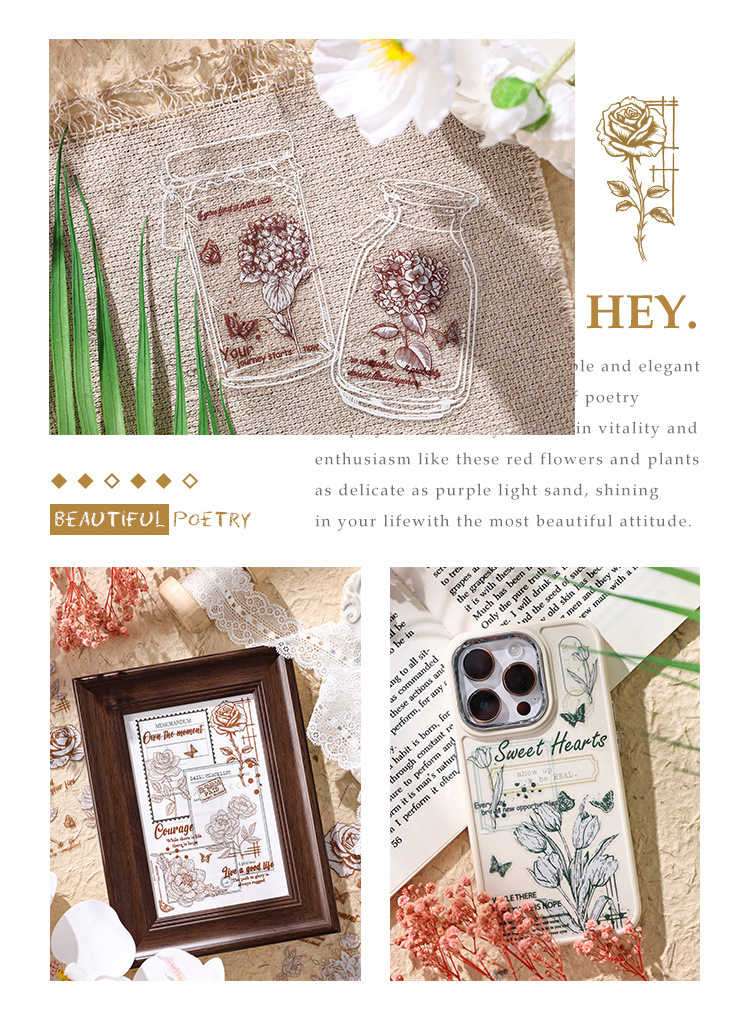 꽃 언어시 하트 투명 방수 애완 동물 스티커 diy 손 계정 일기 장식 스티커 국경 간 복고풍 식물 꽃 스티커