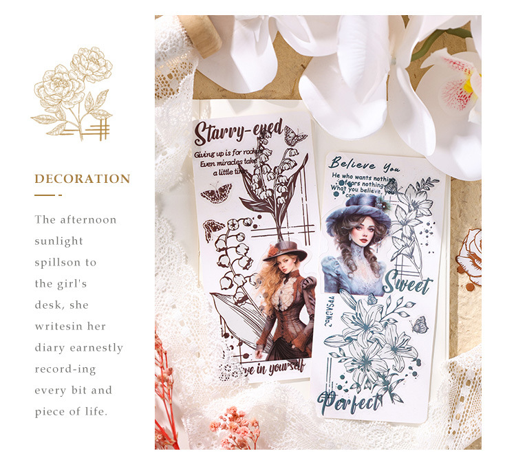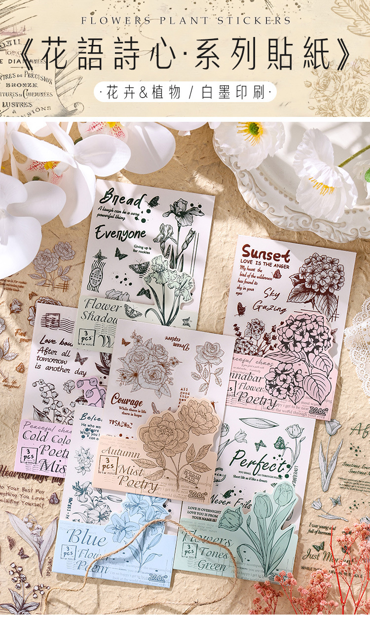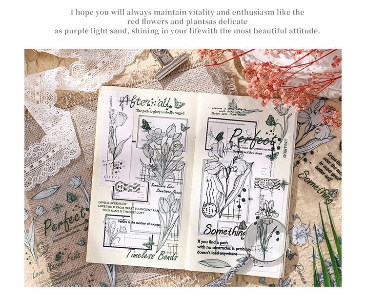 꽃 언어시 하트 투명 방수 애완 동물 스티커 diy 손 계정 일기 장식 스티커 국경 간 복고풍 식물 꽃 스티커스토어 가기