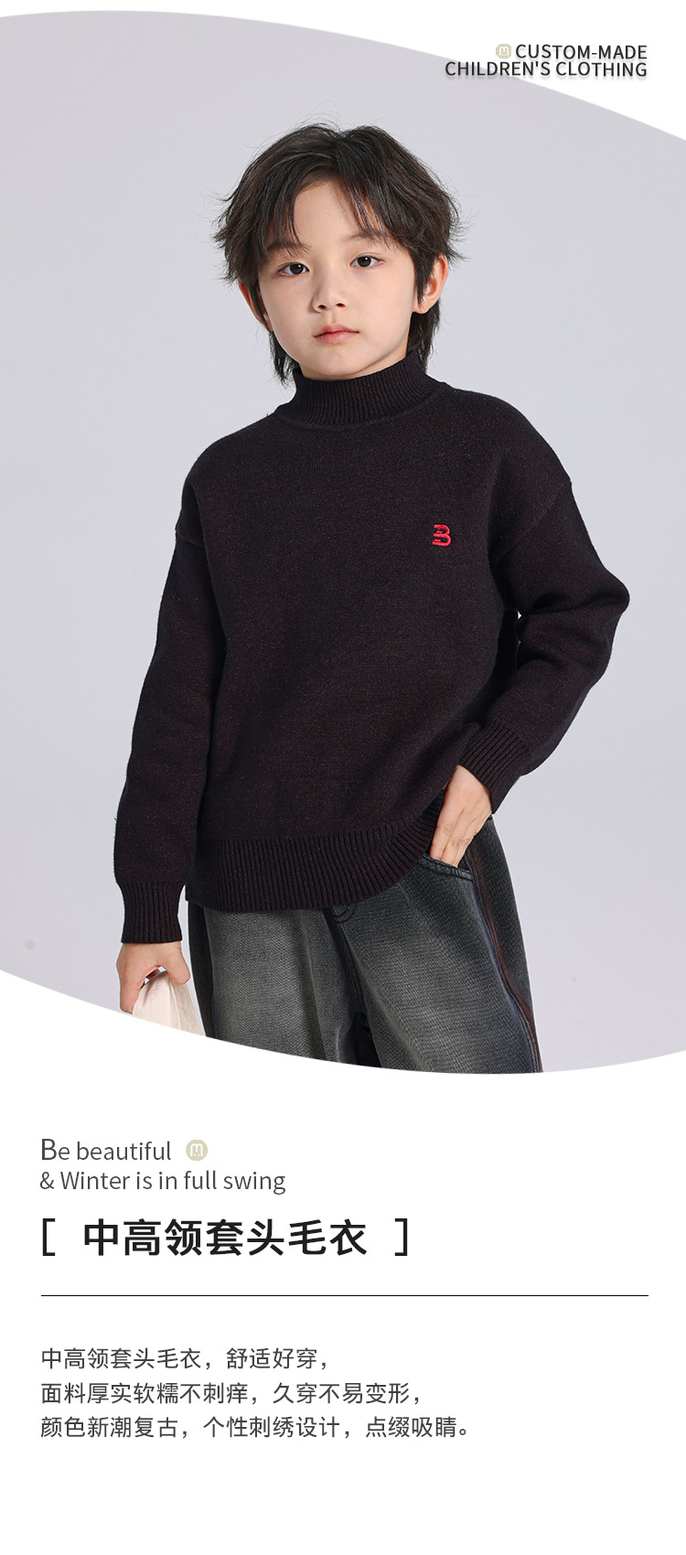 2024 가을과 겨울 새로운 어린이 스웨터 소년 터틀넥 스웨터 간단한 편안한 아기 가을과 겨울 스웨터스토어 가기