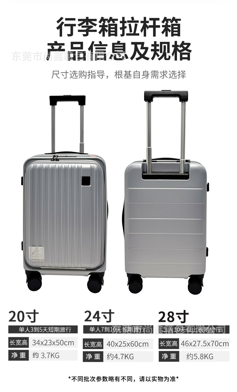 전면 개방 유니버설 휠 트롤리 케이스 스테레오 3 피스 수하물 케이스 안티 드롭 방지 가방 체크 가능한 가방