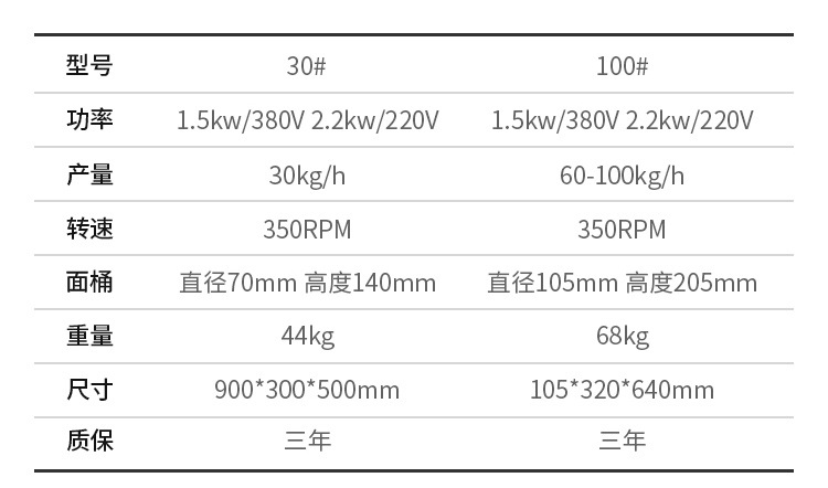 | 产量 | 30kg/h | 60-100kg/h |