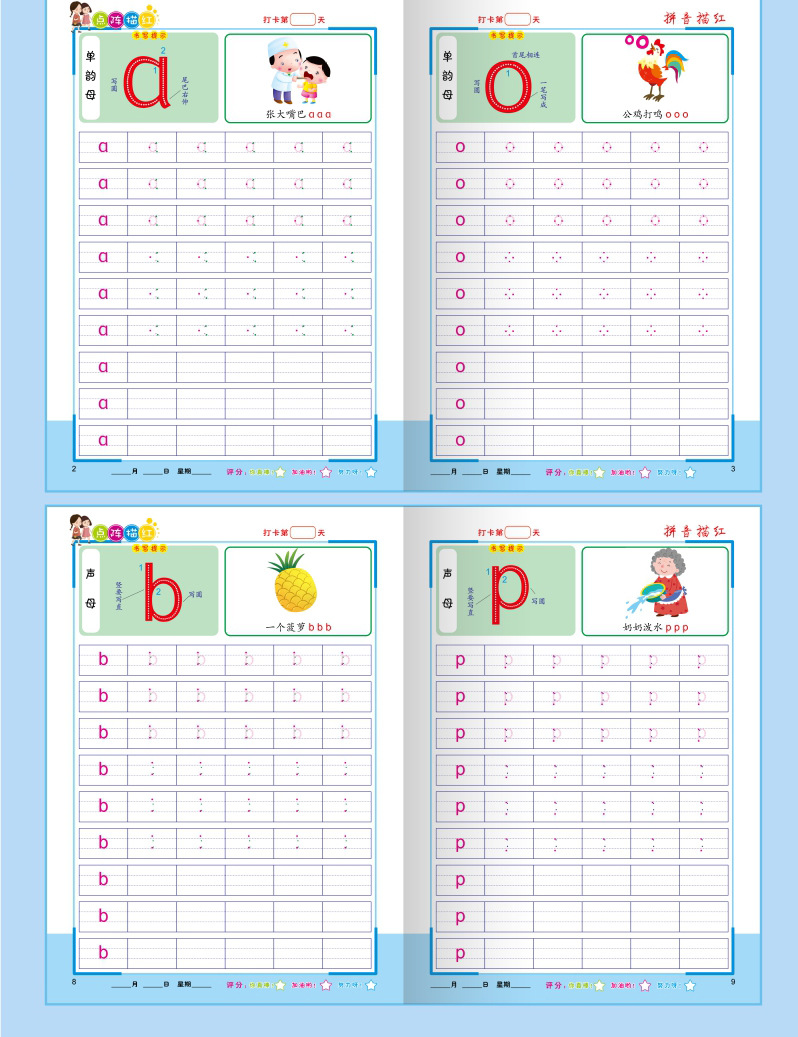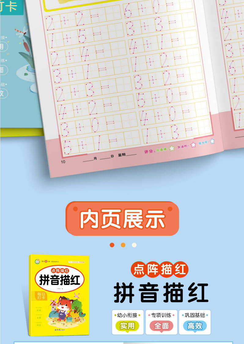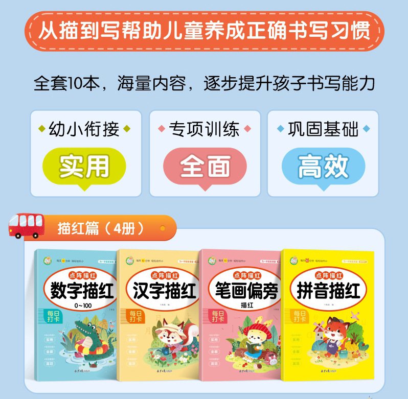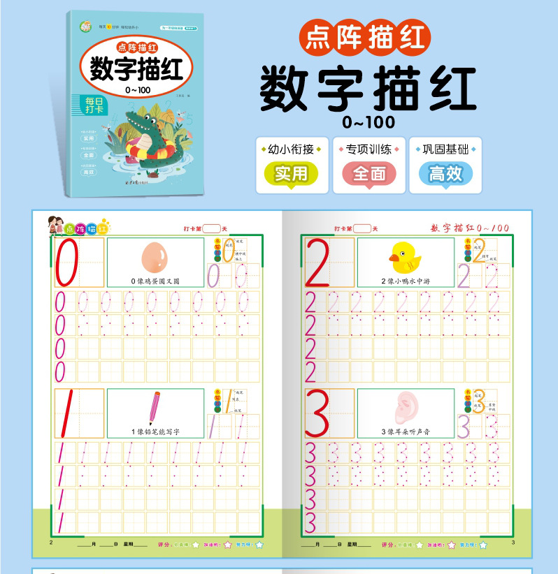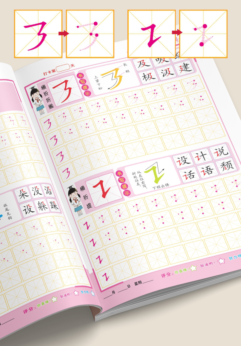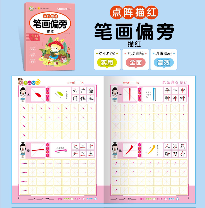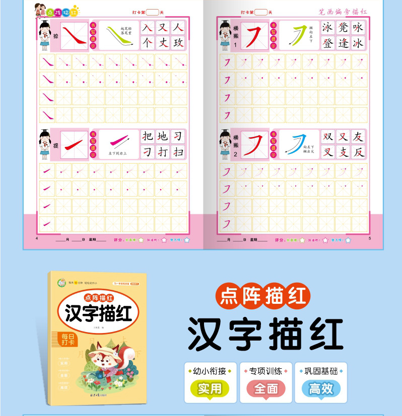빨간 문자를 추적하는 한자 유치원 초등 및 중등 응집력 교육 취학 전 병음 점 매트릭스 캐릭터는 매일이 어린이 연습을 연습합니다.스토어 가기