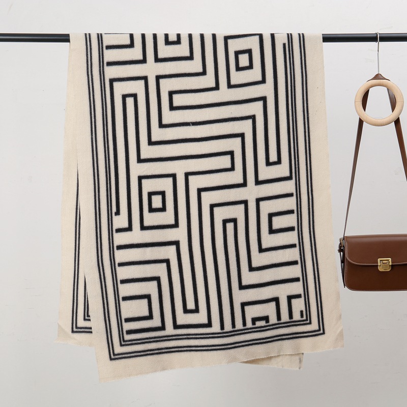 대외 무역 국경 간 라이브 방송 새로운 가을 및 겨울 피부 친화적 인 따뜻한 캐쉬미어 인쇄 스카프 기하학적 미로 간단한 올매치 목도리