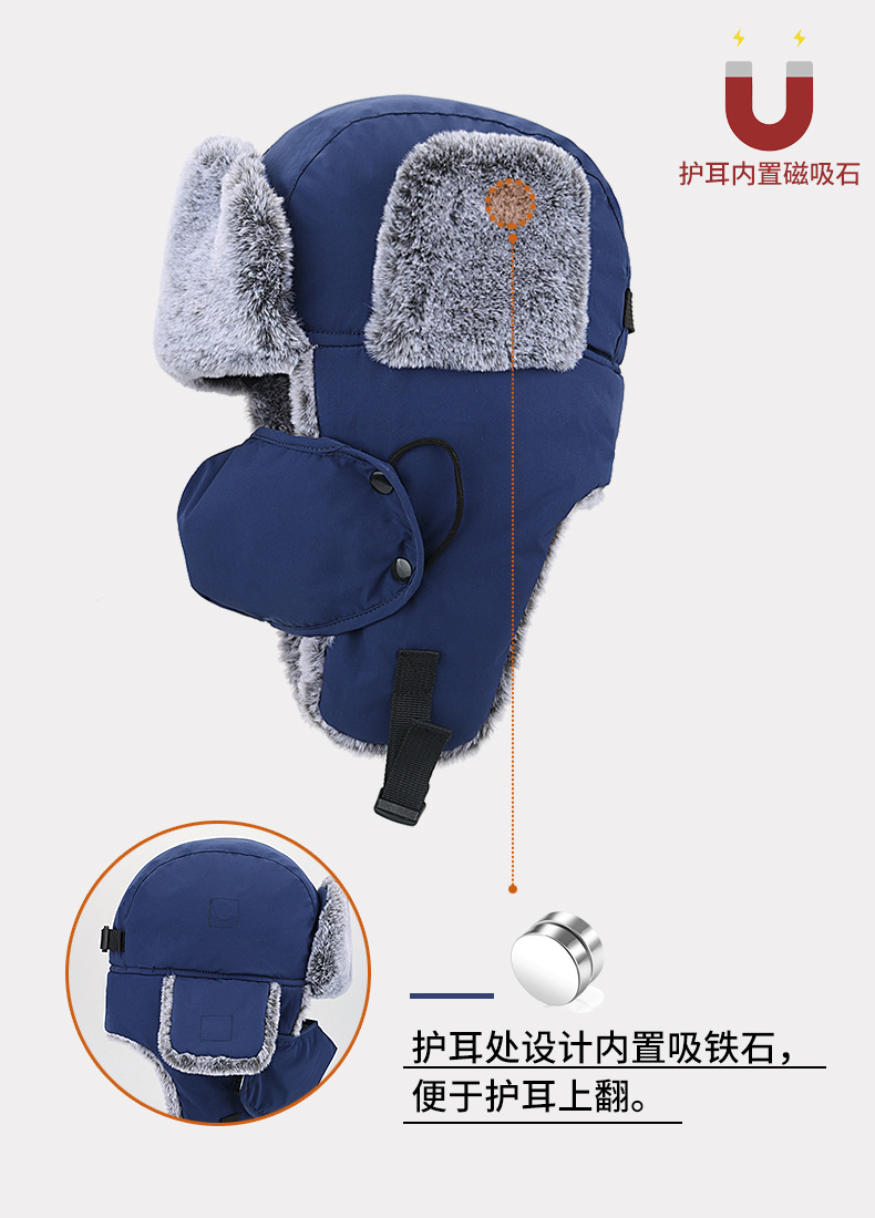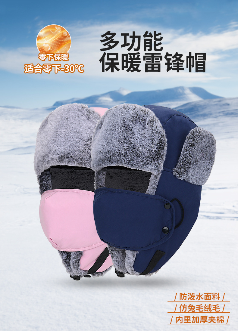 남녀공용 레이펑 모자, 한국 스타일 야외 자전거 타기용 귀 보호 방한 두꺼운 인조 토끼털 보온 모자, 겨울 스키 모자스토어 가기