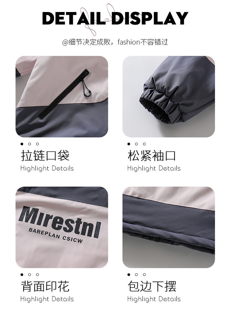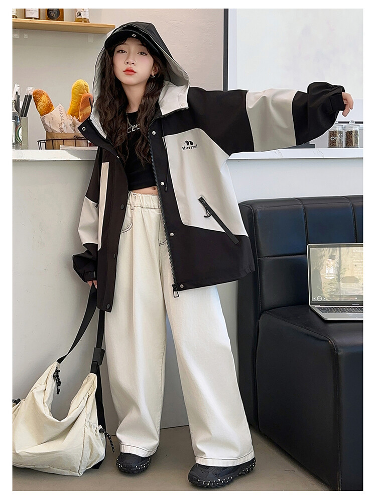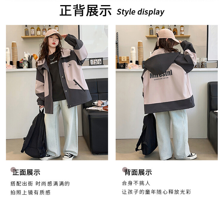 소녀 2024 겨울 코트 새 스타일 중대형 어린이 컬러 블록 방풍 충전 의류 소녀 후드 스포츠 탑