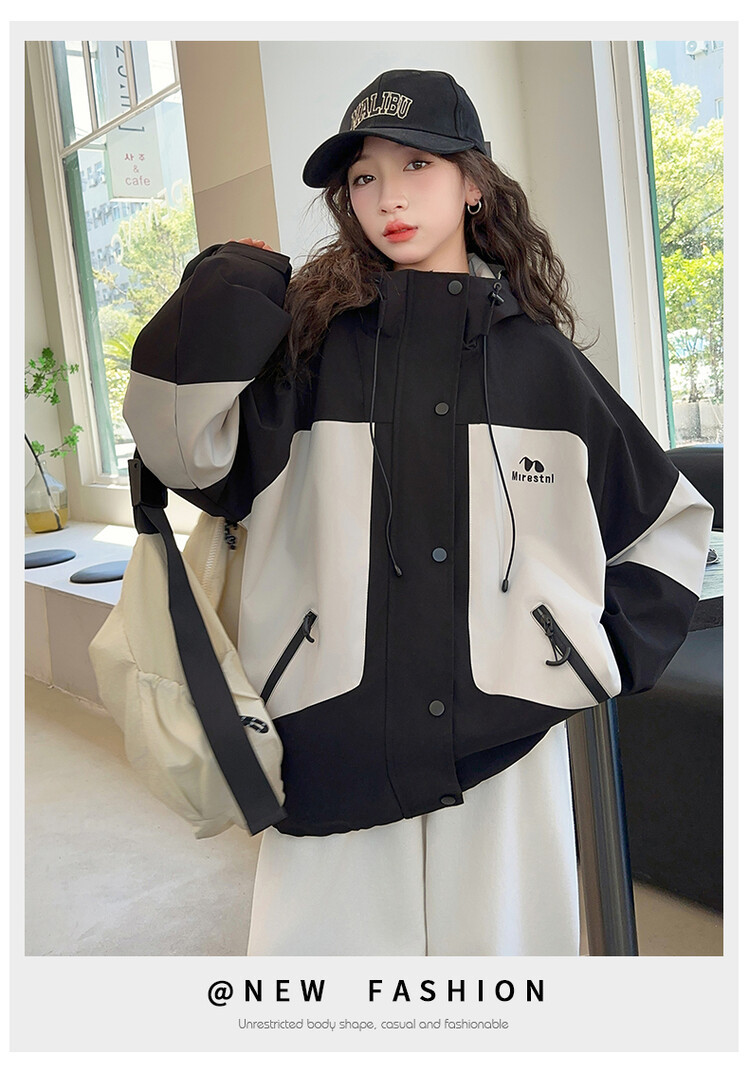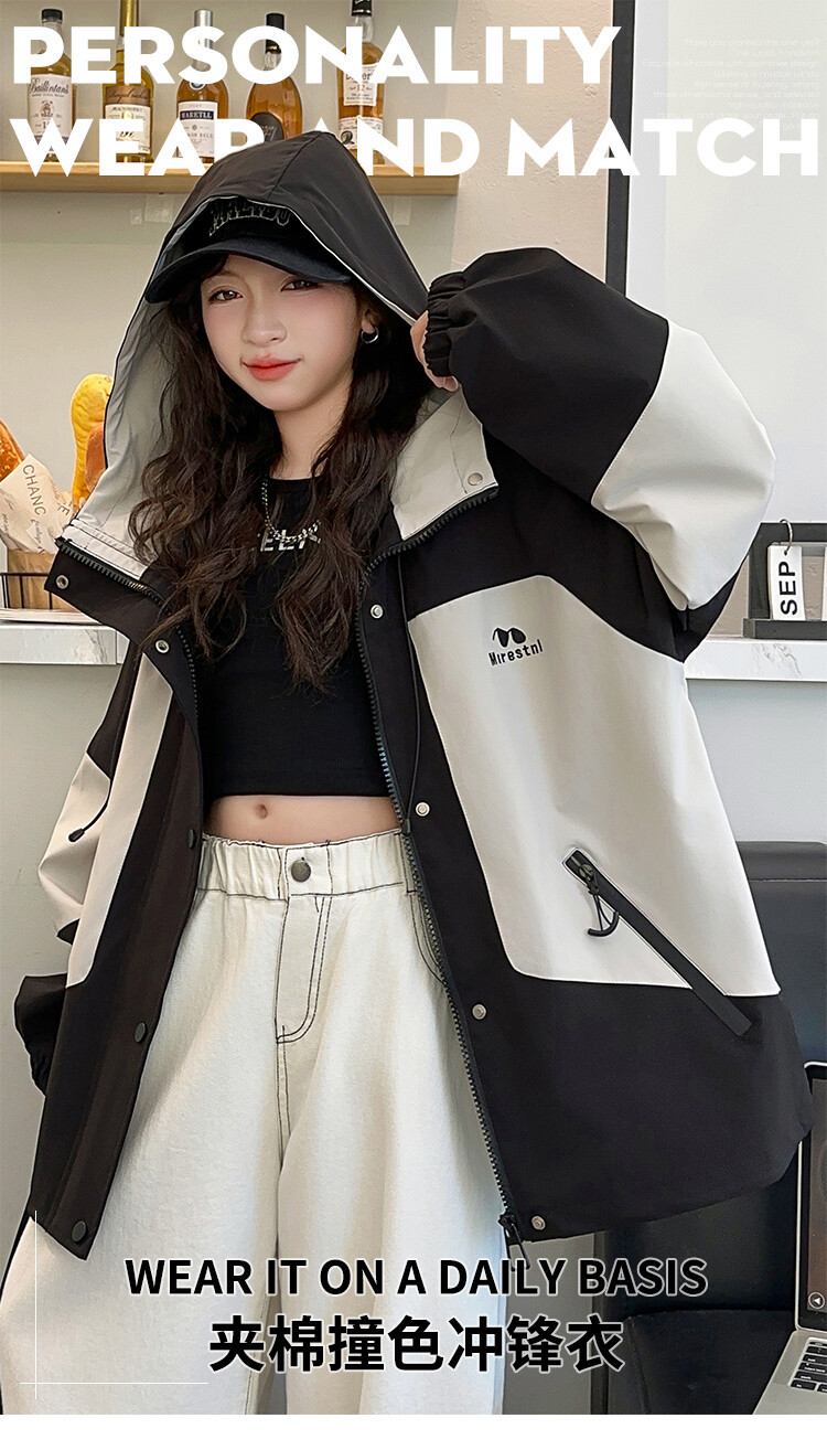 소녀 2024 겨울 코트 새 스타일 중대형 어린이 컬러 블록 방풍 충전 의류 소녀 후드 스포츠 탑스토어 가기