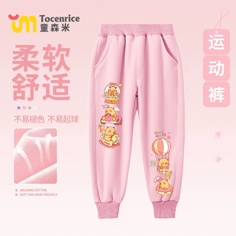 2024 가을 겨울 새로운 카피 발라 어린이 캐주얼 바지 올 매치 카피 바라 소년 소녀 운동복 기모 바지