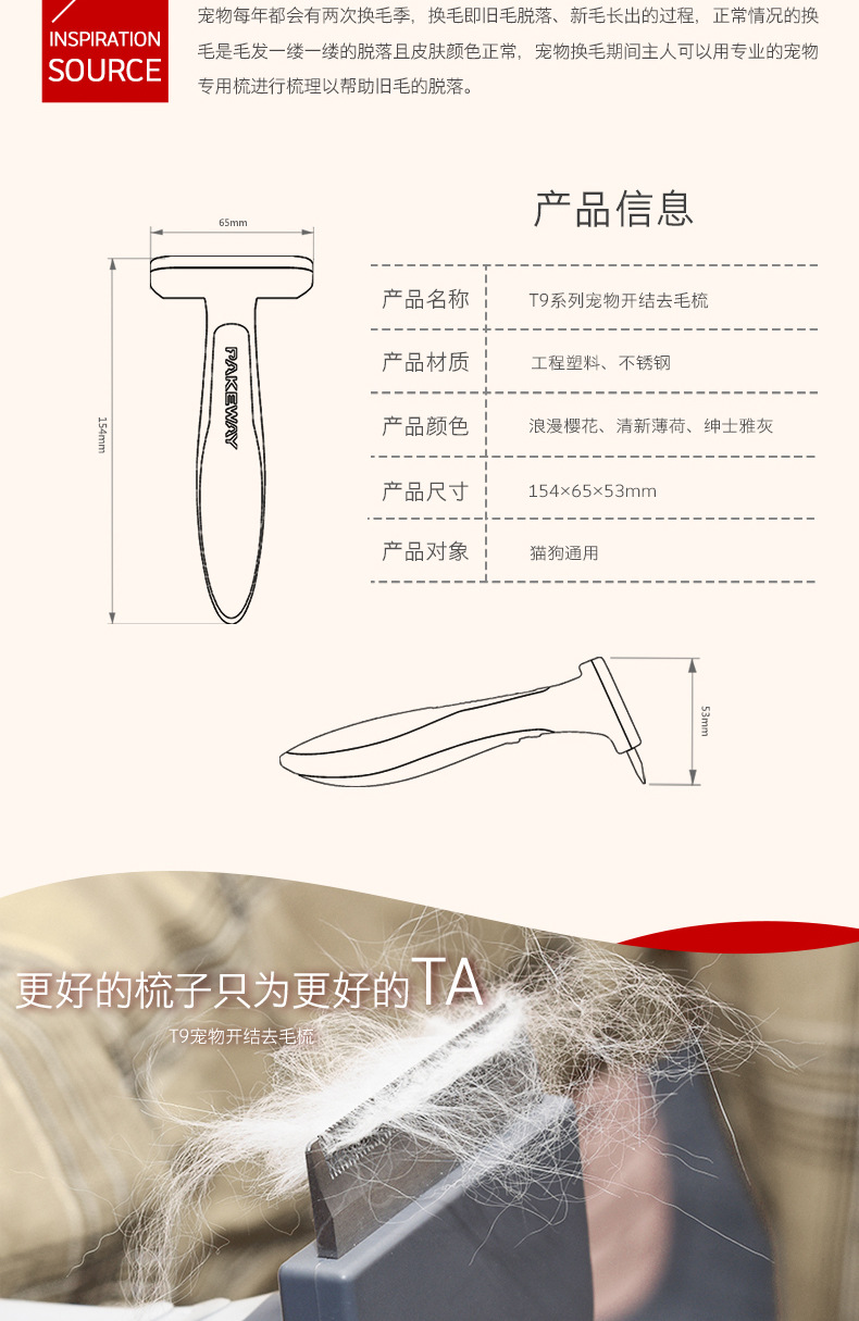 공장 직접 T9 애완 동물 머리 제거 빗 고양이 개 특별 마사지 오픈 매듭 머리 제거 머리 제거 청소 아름다움 브러시스토어 가기