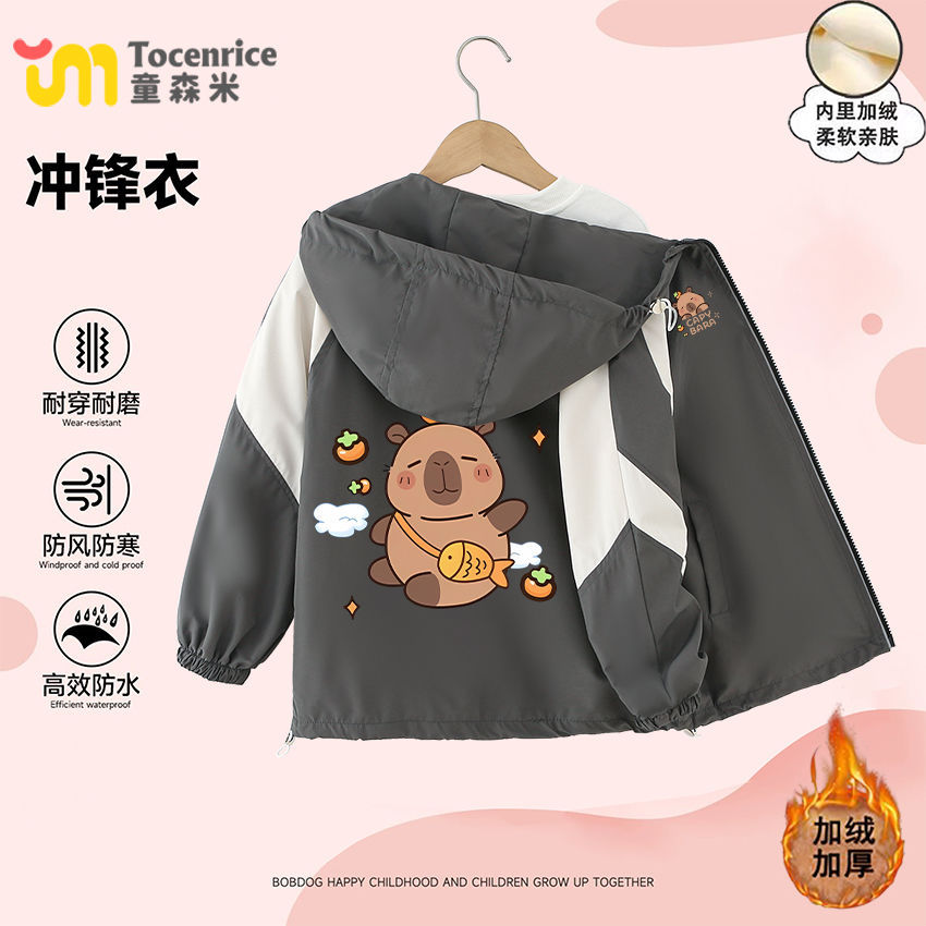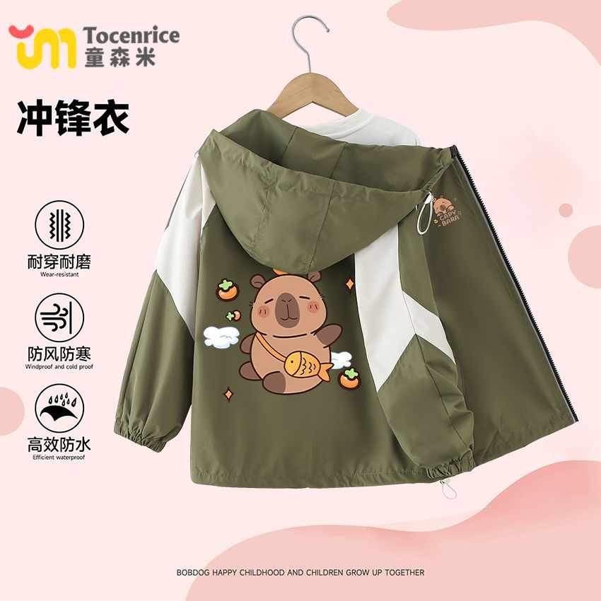 2025 폭발 Kapibalakatong 중 및 빅 키즈 유행 러시 옷 남녀 소년을위한 올 매치 코트 세련된 방수 옷